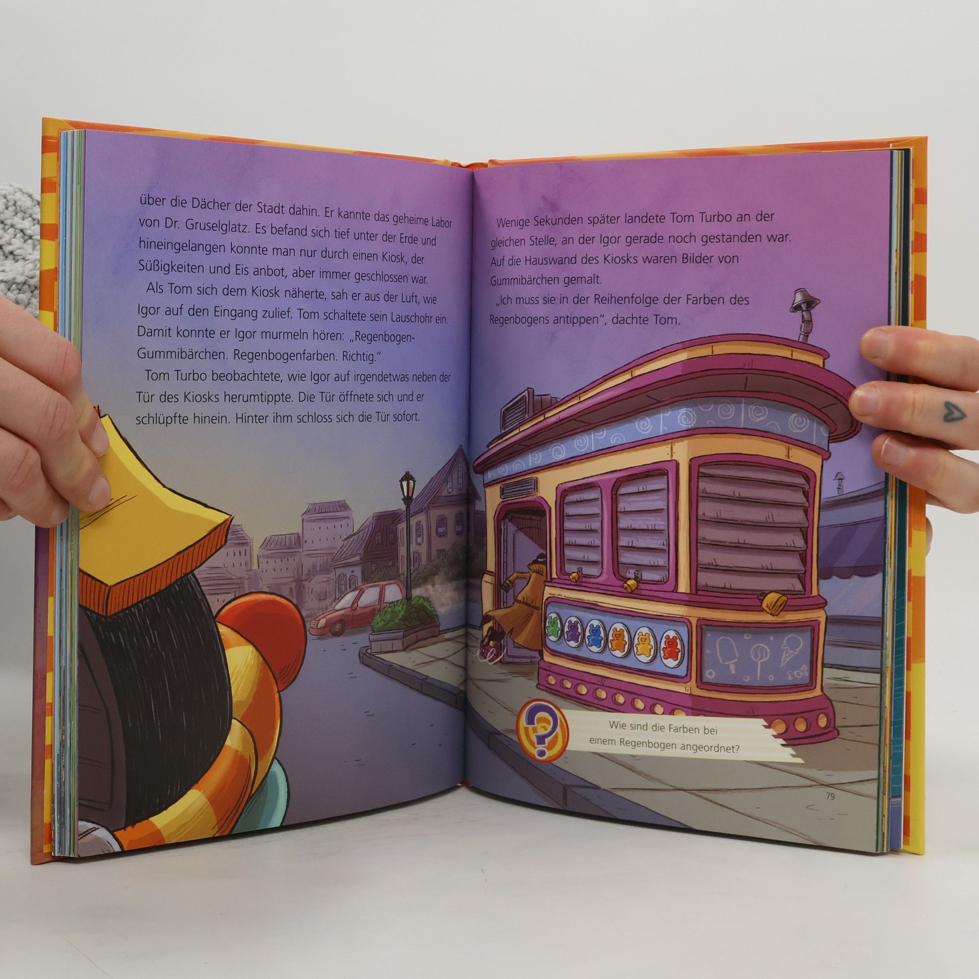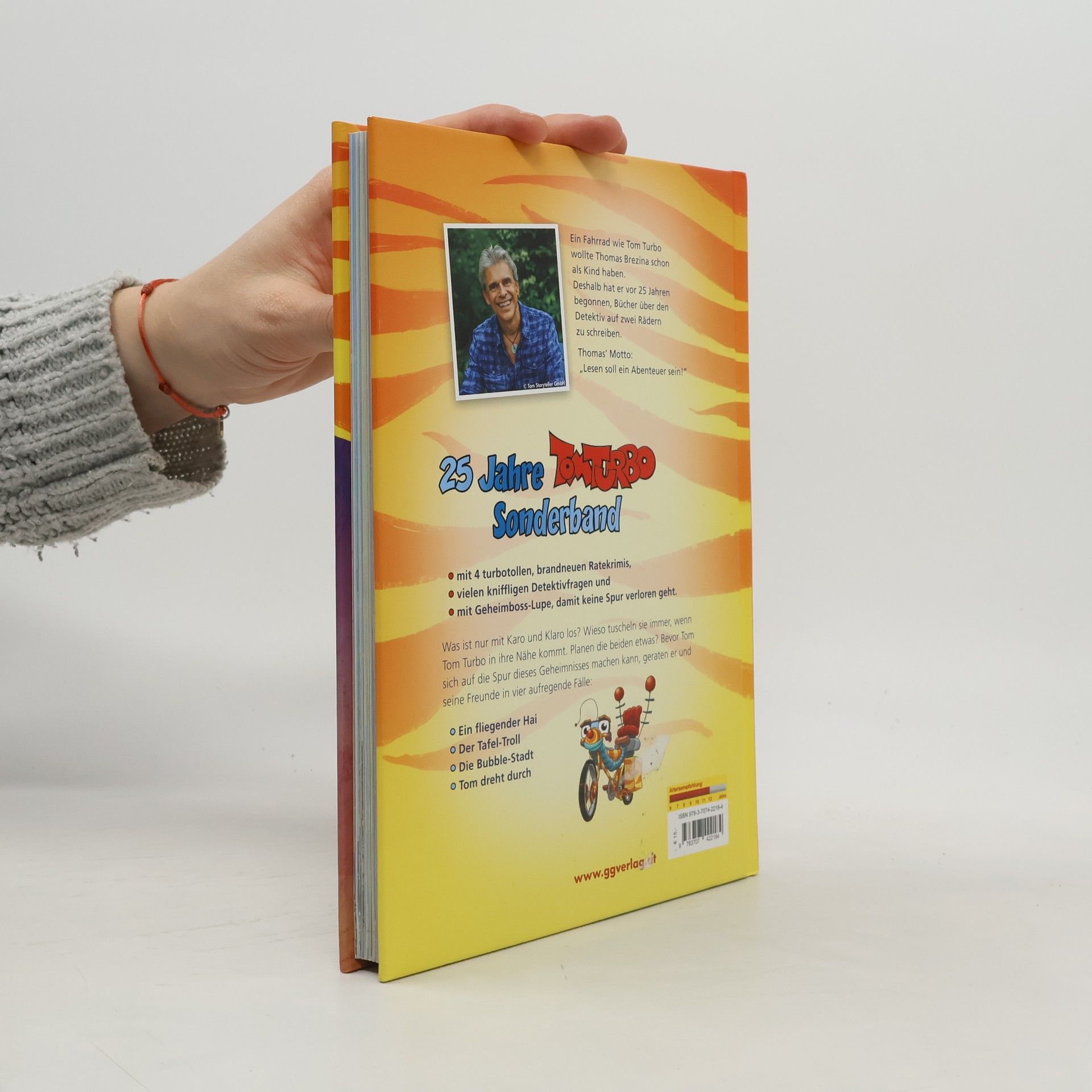4 turbo-tolle Abenteuer mit vielen Detektiv-Fragen! Tom Turbo ist traurig, denn Karo und Klaro, scheinen vor ihm Geheimnisse zu haben. Aber er lässt sich nicht unterkriegen und folgt den beiden heimlich, als sie ihr Baumhaus verlassen - hinein in den Fall FLIEGENDER HAI. Der Fall TAFEL-TROLL fängt harmlos an, aber so einfach ist das nicht ... BUBBLE-STADT ist der nächste Fall, der mit einer Autofahrt beginnt und in dem Unheimliches aufgedeckt wird. TOM DREHT DURCH ist der letzte Fall, den es zu lösen gibt. Ist Tom Turbo das Schmieröl in die Speichen gefahren? Eine knifflige Detektivgeschichte ...