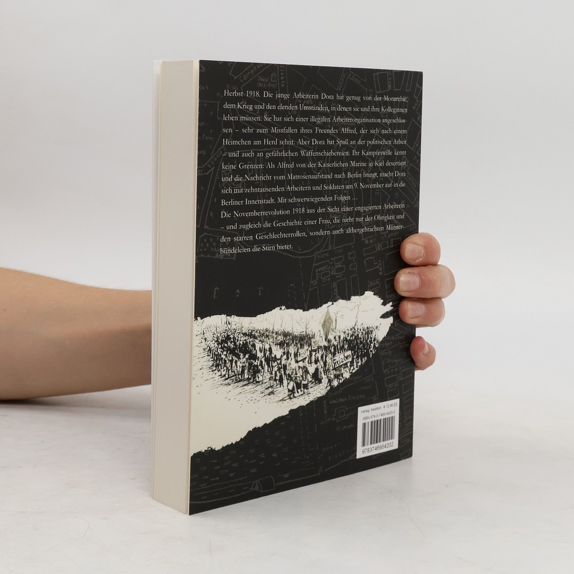 Wir kennen Karl Liebknecht und seinen Kampf um die sozialistische Revolution – kennen Sie auch Dora Weinstein aus Neukölln? Im Herbst 1918 hat die junge Arbeiterin Dora genug von der Monarchie, dem Krieg und den elenden Umständen, in denen sie und ihre Kolleginnen leben müssen. Sie hat sich einer illegalen Arbeiterorganisation angeschlossen und kämpft für die Revolution und den Umsturz der kaiserlich-adligen Ordnung. Als ihr Freund Alfred von der Kriegsflotte in Kiel desertiert und die Nachricht vom Matrosenaufstand nach Berlin bringt, macht Dora sich mit zehntausenden Arbeitern und Soldaten am 9. November auf in die Berliner Innenstadt. Mit schwerwiegenden Folgen … In ihrem Buch „Dora und die Revolution“ legt Anja Hinrichs einen Bericht über die Novemberrevolution 1918 aus der Sicht einer politisch aktiven Frau vor, die starren Geschlechterrollen und althergebrachten Männerbündeleien die Stirn bietet. Daneben zeichnet die Autorin einen lebendigen Mikrokosmos in den Neuköllner Hinterhöfen, in denen gegen Kriegsende 1918 die letzten Möbel verheizt und Kinder zu Waisen werden, weil ihre Eltern der Spanischen Grippe zum Opfer fallen. „Dora und die Revolution“: ein sorgfältig recherchierter historischer Roman in klarer, schnörkelloser Sprache.
