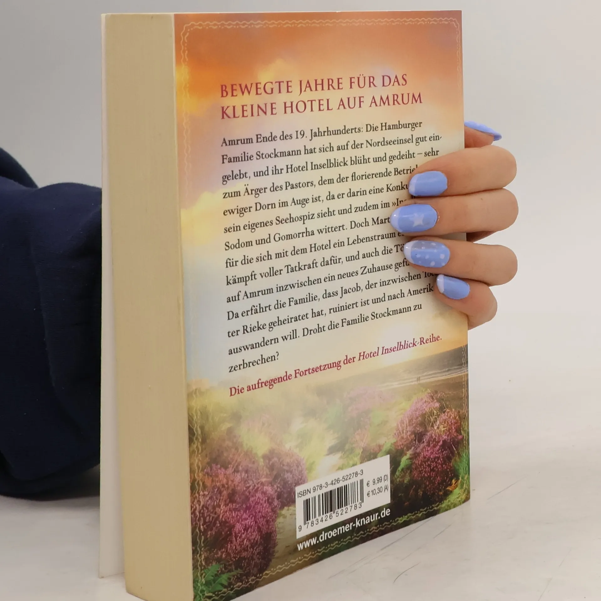 Der zweite Band der großen Familien-Saga von Anke Petersen um ein kleines Hotel auf Amrum Ende des 19./Anfang des 20. Jahrhunderts - mit viel Nordsee-Zauber und Nostalgie. Amrum Anfang des 20. Jahrhunderts: Die Familie Stockmann hat sich auf der Nordsee-Insel gut eingelebt, und ihr Hotel Inselblick blüht und gedeiht – sehr zum Ärger des Pastors, dem der florierende Betrieb ein ewiger Dorn im Auge ist, da er darin eine Konkurrenz zu seinem eigenen Seehospiz sieht und außerdem im „Inselblick“ Sodom und Gomorrha wittert. Doch Marta Stockmann, für die sich mit dem Hotel ein Lebenstraum erfüllt hat, kämpft voller Tatkraft dafür, und auch die Töchter haben auf Amrum inzwischen ein neues Zuhause gefunden. Dann erfährt die Familie, dass Jacob, der inzwischen Tochter Rieke geheiratet hat, ruiniert ist und nach Amerika auswandern will. Droht die Familie Stockmann zu zerbrechen? Band 1: Hotel Inselblick. Wolken über dem Meer Band 2: Hotel Inselblick. Wind der Gezeiten Band 3: Hotel Inselblick. Stürmische See