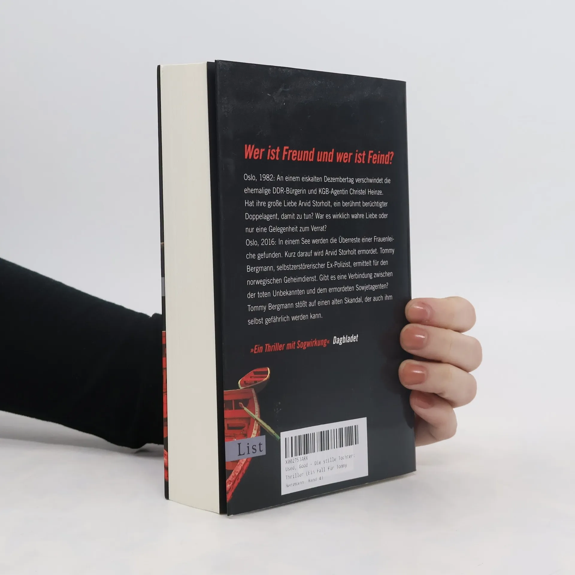 Wer ist Freund und wer ist Feind? Oslo, 1982: An einem eiskalten Dezembertag verschwindet die ehemalige DDR-Bürgerin und KGB-Agentin Christel Heinze. Hat ihre große Liebe Arvid Storholt, ein berühmt berüchtigter Doppelagent, damit zu tun? War es wirklich wahre Liebe oder nur eine Gelegenheit zum Verrat? Oslo, 2016: In einem See werden die Überreste einer Frauenleiche gefunden. Kurz darauf wird Arvid Storholt ermordet. Tommy Bergmann, selbstzerstörerischer Ex-Polizist, ermittelt für den norwegischen Geheimdienst. Gibt es eine Verbindung zwischen der toten Unbekannten und dem ermordeten Sowjetagenten? Tommy Bergmann stößt auf einen alten Skandal, der auch ihm selbst gefährlich werden kann. „Hochspannung aus Norwegen, meisterhaft geschrieben. Sehr lesenswert.“ Ruhr Nachrichten