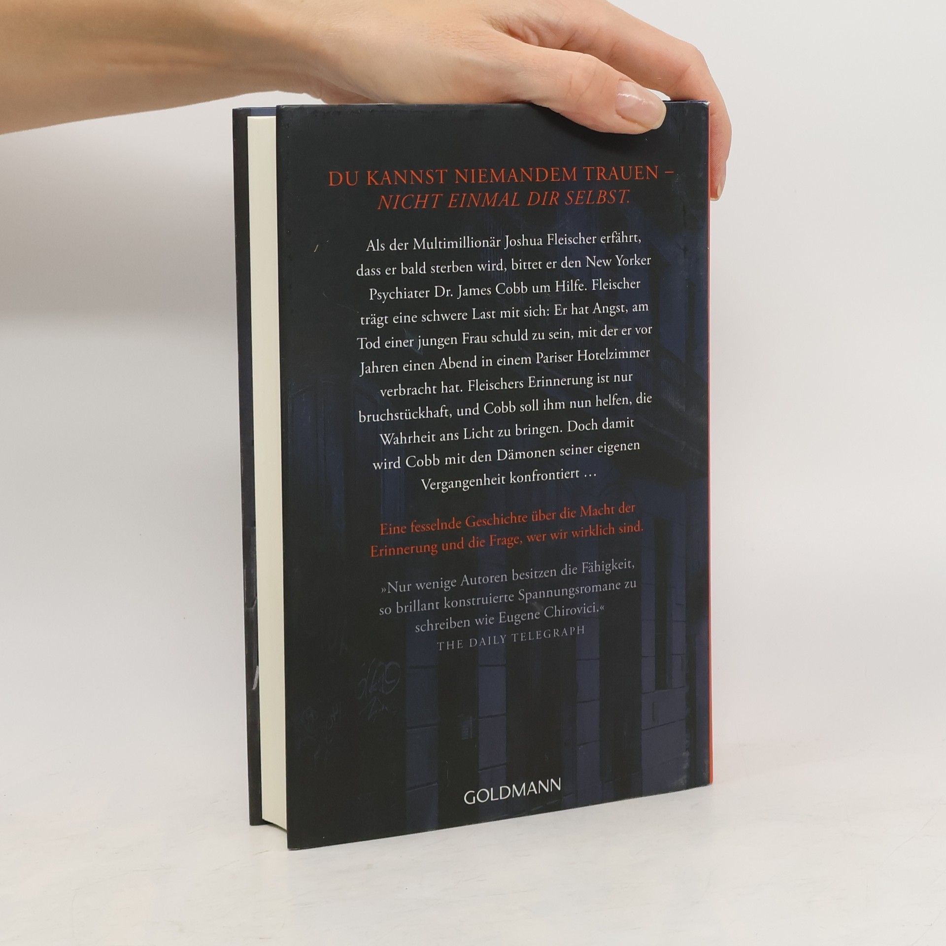 Eines Tages macht der New Yorker Psychiater Dr. James Cobb die unerwartete Bekanntschaft des Multimillionärs Joshua Fleischer. Fleischer leidet an einer unheilbaren Krankheit und bittet Cobb eindringlich, für einige Tage zu ihm nach Maine zu kommen. Als Cobb dort eintrifft, erfährt er, dass der vom Tod gezeichnete Mann eine schwere Last mit sich trägt: Er hat Angst, in den Mord an einer jungen Frau verwickelt zu sein, mit der er vor vielen Jahren einen Abend in einem Pariser Hotelzimmer verbracht hat. Seine Erinnerungen sind aber bruchstückhaft, und deshalb soll Cobb ihm helfen, endlich die Wahrheit ans Licht zu bringen. Noch kann Cobb allerdings nicht ahnen, dass damit die verdrängten Dämonen seiner eigenen Vergangenheit zum Leben wiedererwachen …