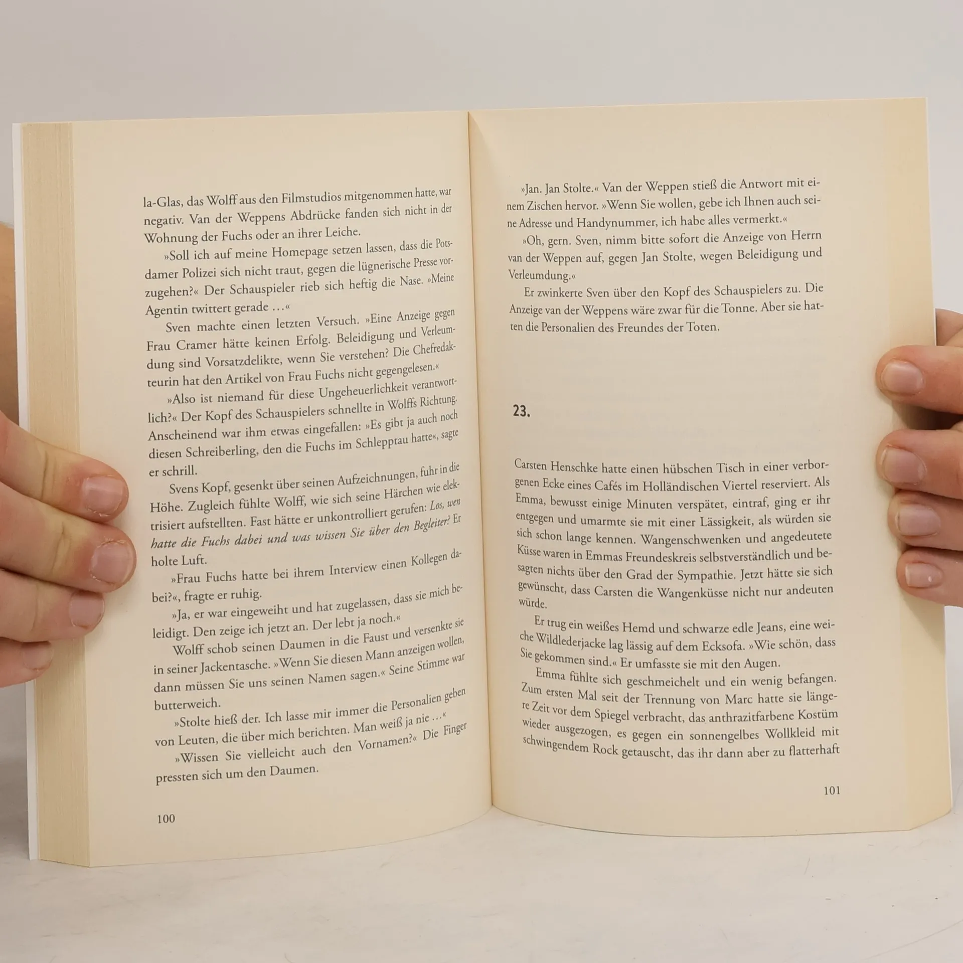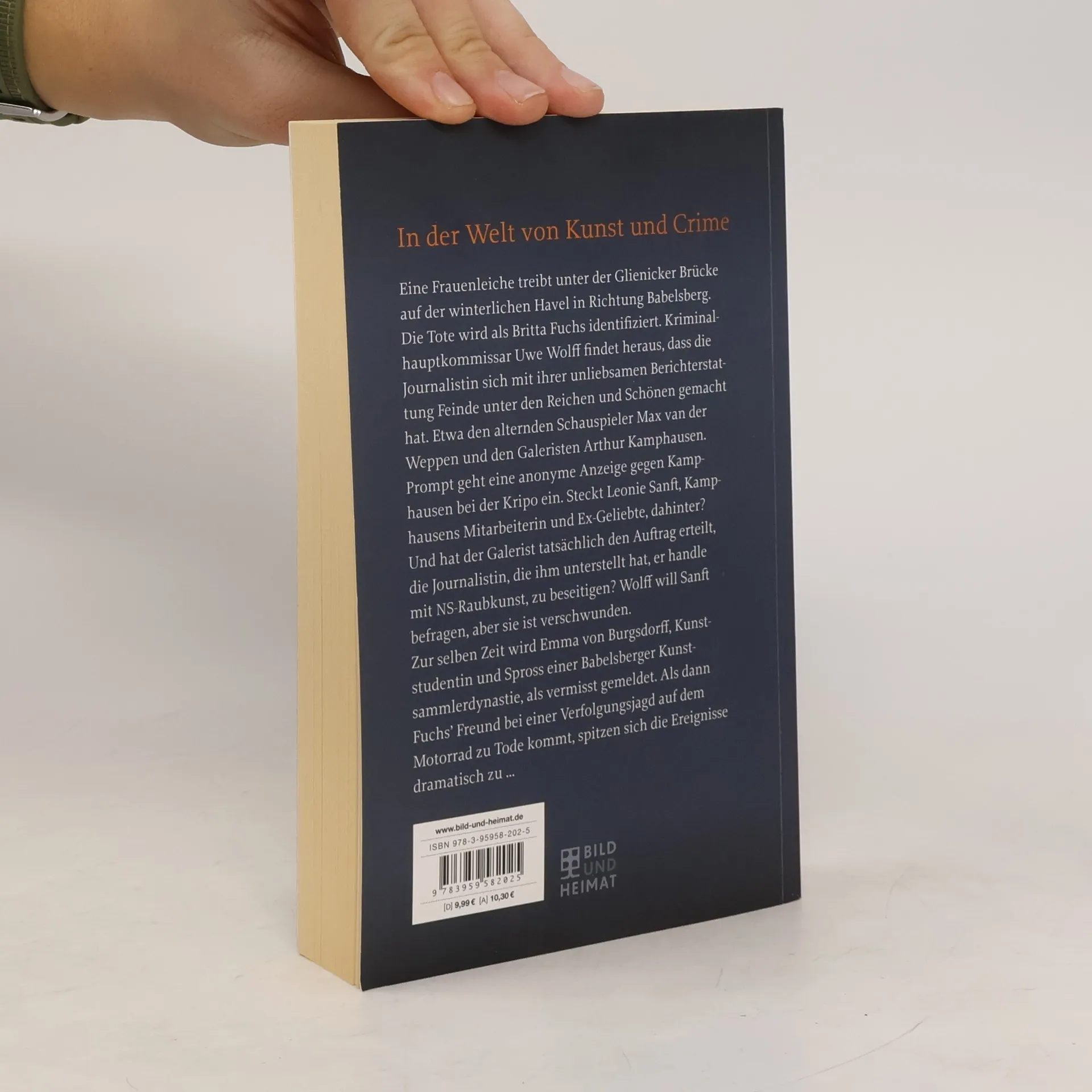 Eine Frauenleiche treibt unter der Glienicker Brücke auf der winterlichen Havel in Richtung Babelsberg. Die Tote wird als Britta Fuchs identifiziert. Die Promi-Reporterin wurde erwürgt und ins Wasser geworfen. Bei seinen Ermittlungen verirrt sich Kriminalhauptkommissar Uwe Wolff, der bereits bei der Volkspolizei tätig war, in die glamouröse Welt der Reichen und Schönen. Er findet heraus, dass Fuchs sich mit ihrer kritisch-ironischen Berichterstattung auch Feinde gemacht hat, etwa den alternden Schauspieler Max van der Weppen und den Galeristen Egbert Kamphausen. Auch Fuchs’ gekränkter Exfreund kommt als Mörder infrage. Prompt geht eine anonyme Anzeige gegen Kamphausen bei der Kripo ein. Dahinter steckt Leonie Sanft, seine Mitarbeiterin und abgehalfterte Geliebte. Bezichtigt sie ihren Chef aus Rache des Mordes an Fuchs? Oder hat der Galerist die Journalistin, die ihm unterstellt hat, er stelle NS-Raubkunst aus, beseitigen lassen? Wolff will Sanft befragen, aber sie ist verschwunden. Zur selben Zeit wird die Urenkelin eines bekannten Kunstsammlers entführt. Als ein zweiter Mord geschieht, spitzen sich die Ereignisse dramatisch zu …