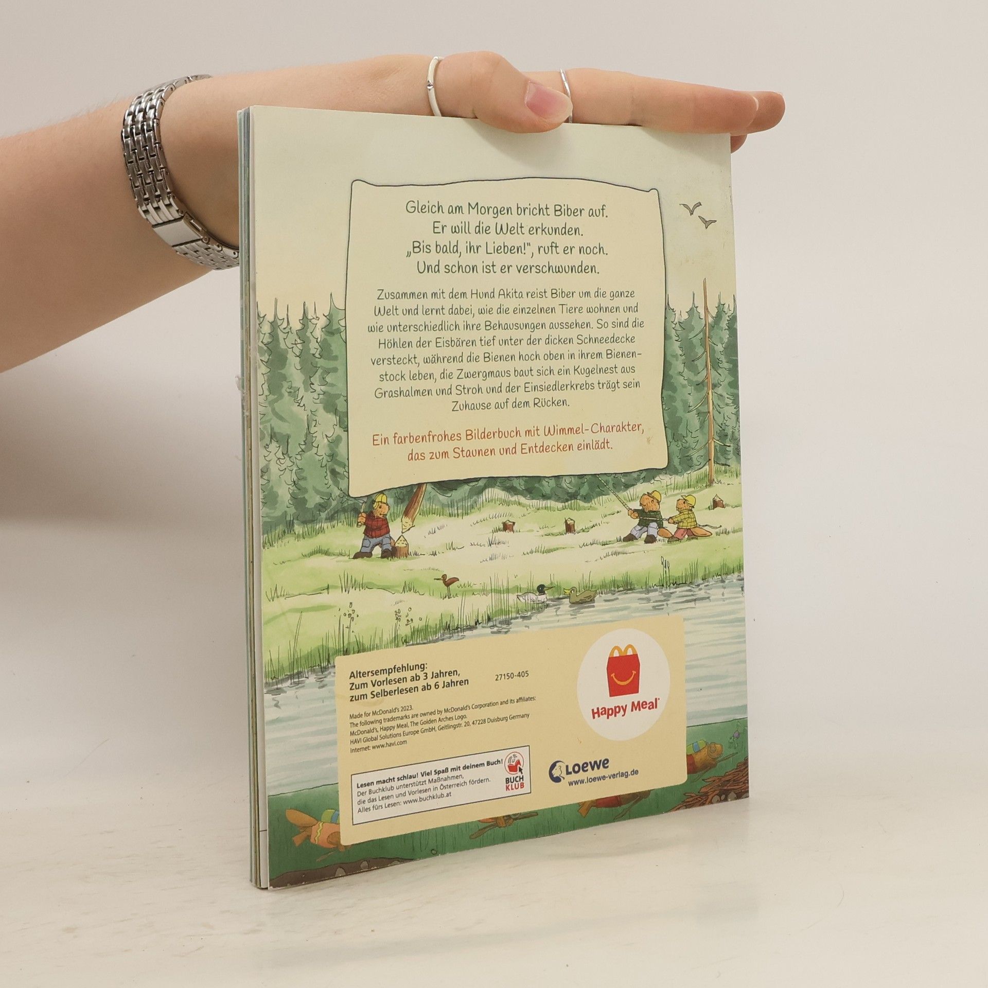 Das Buch ist bei deiner Buchhandlung vor Ort und bei vielen Online-Buchshops erhältlich! Zusammen mit dem Hund Akita reist Biber um die ganze Welt und lernt dabei, wie die einzelnen Tiere wohnen und wie unterschiedlich ihre Behausungen aussehen. So sind die Höhlen der Eisbären tief unter der dicken Schneedecke versteckt, während die Bienen hoch oben in ihrem Bienenstock leben, die Zwergmaus baut sich ein Kugelnest aus Grashalmen und Stroh und der Einsiedlerkrebs trägt sein Zuhause auf dem Rücken. Ein farbenfrohes Bilderbuch mit Wimmel-Charakter, das zum Staunen und Entdecken einlädt. Illustrator und Architekt Magnus Weightman nimmt kleine Tierfreunde ab 3 Jahren mit auf eine spannende Entdeckungsreise um die ganze Welt und zeigt, wie unterschiedlich die einzelnen Tiere leben und ihre Behausungen bauen. Mit animierenden Reimen und farbenfrohen, wimmeligen und detailverliebten Bildern! Unsere Bücher der Reihe Naturkind ... - werden in Europa hergestellt - enthalten Farben auf Pflanzenölbasis - bestehen bis zu 90% aus Recycling-Papier Mehr Infos zur Naturkind-Reihe: www.naturkind.org