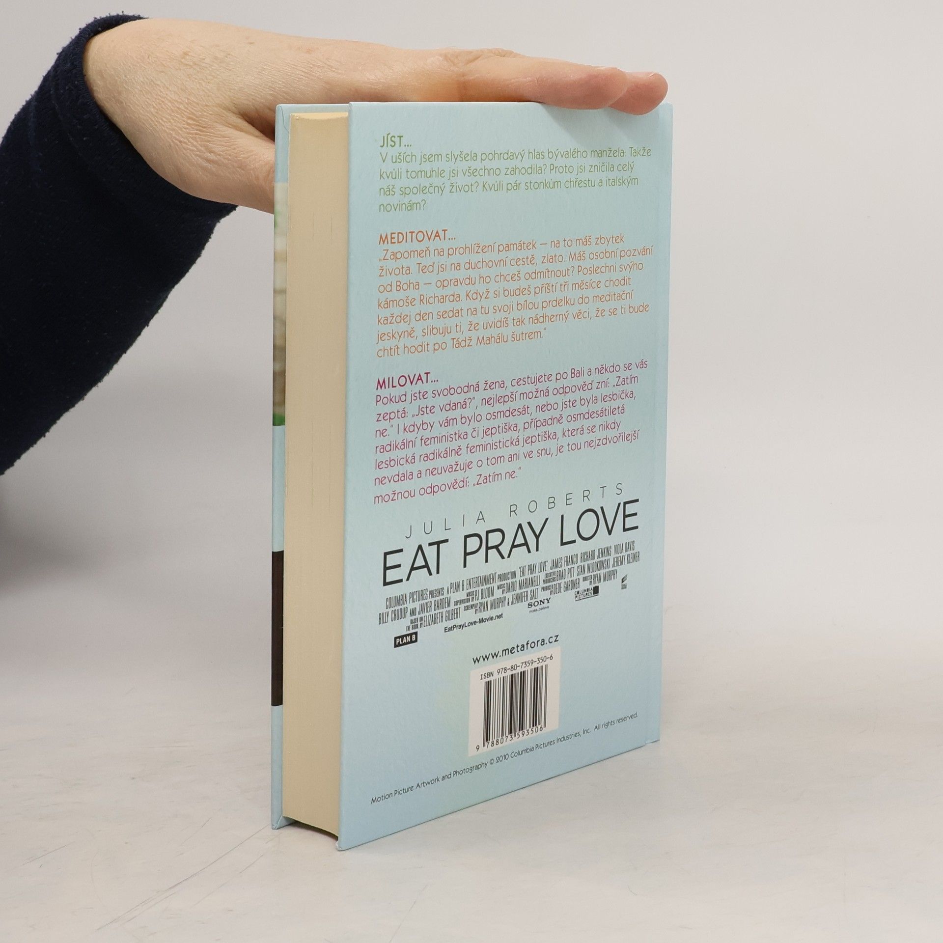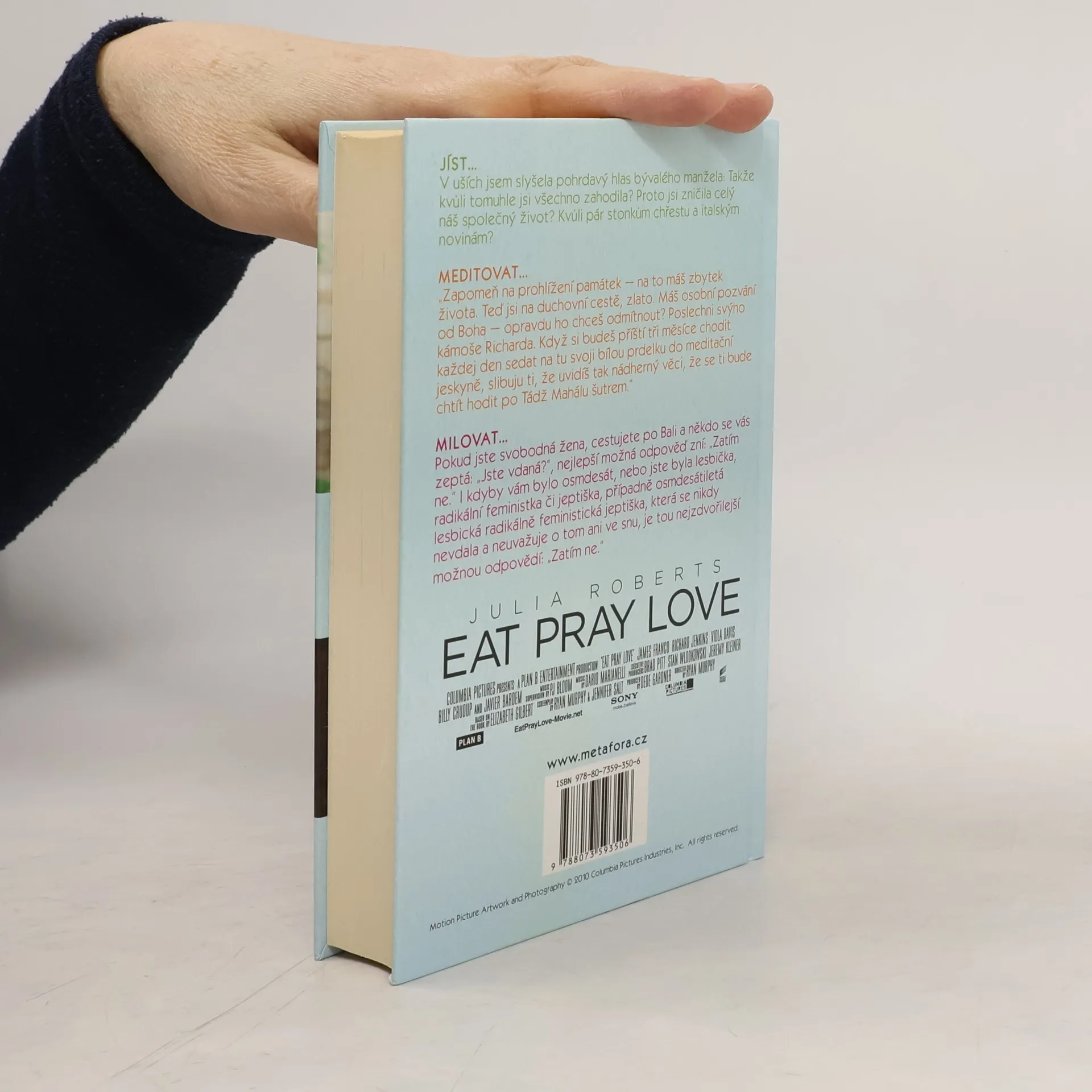 Neuvěřitelná kniha oceněné autorky. Pouť mladé dámy za pozemskými i duchovními rozkošemi napříč Itálií, Indií a Indonésií… Elizabeth Gilbertová má vše, co se od moderní ambiciózní Američanky očekává: manžela, dům a úspěšnou kariéru. Jenže místo aby se cítila šťastná a naplněná, ji pohlcuje panika, zoufalství a zmatek. Odhodlá se tedy k radikálnímu kroku a úplně sama se vydá na roční pouť kolem světa. V Itálii studuje umění rozkoše, učí se italsky, flirtuje, nezřízeně hoduje a přibere deset nejšťastnějších kilogramů svého života. V Indii absolvuje čtyřměsíční duchovní cestu do vlastního nitra, na níž nechybí ani tak zdánlivé protiklady jako je vztek, transendentální meditace, černý humor, mantry a vize. V Indonésii, kde se stane žačkou svérázného starého šamana, pak hledá svůj konečný cíl: rovnováhu, schopnost vybalancovat svůj život mezi světským potěšením a pravou zbožností. Pokud jste se i vy někdy vzbudili s naléhavou touhou změnit sebe i celý svůj život, je pro vás tahle kniha tou nejlepší inspirací.