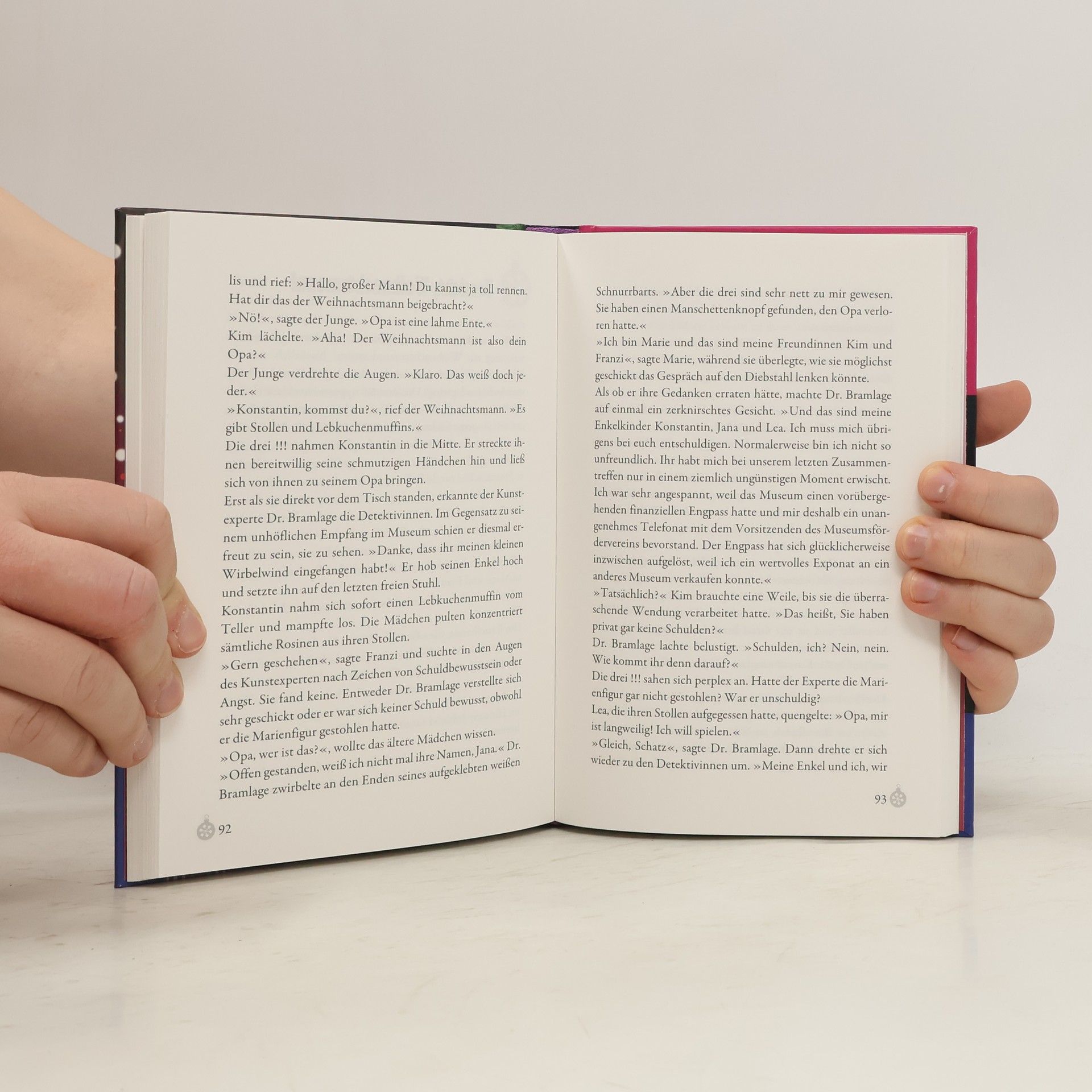 Kim, Franzi und Marie sind „Die drei !!!“. Mutig und clever ermitteln die drei Freundinnen und sind jedem Fall gewachsen. Die drei Detektivinnen genießen die Adventszeit: Bummel über den Weihnachtsmarkt, Plätzchen backen, Adventstee ... Doch plötzlich verschwindet die wertvolle Marienfigur aus der Weihnachtskrippe in der Kirche und der Täter taucht im Vorweihnachtstrubel unter. Eine spannende Suche mitten in der Weihnachtszeit beginnt …