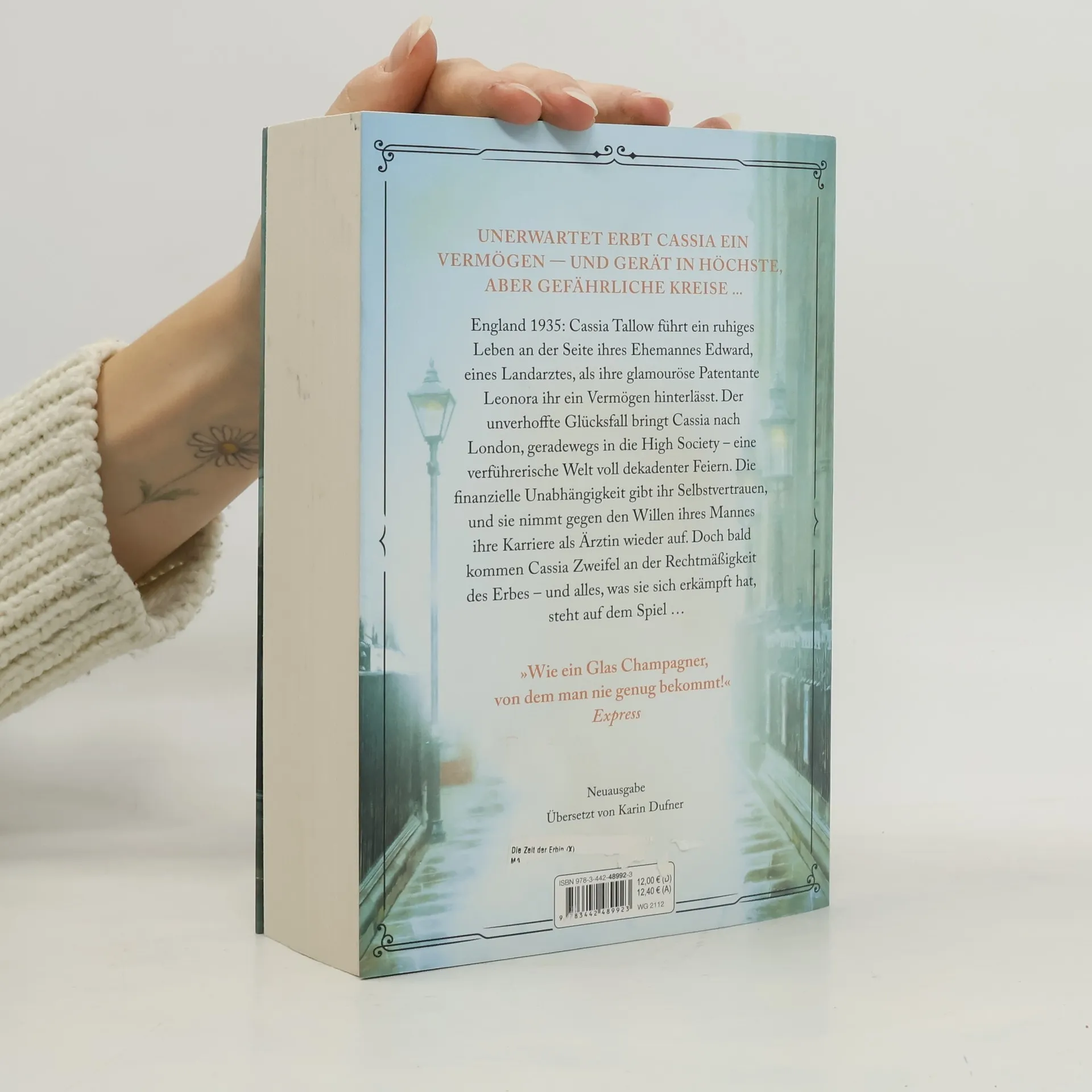 England 1935: Cassia Tallow führt ein ruhiges Leben an der Seite ihres Ehemannes Edward, eines Landarztes, als ihre glamouröse Patentante Leonora ihr ein Vermögen hinterlässt. Der unverhoffte Glücksfall bringt Cassia nach London, geradewegs in die High Society – eine verführerische Welt voll dekadenter Feiern und früherer Liebhaber. Die finanzielle Unabhängigkeit gibt ihr Selbstvertrauen, und sie nimmt gegen den Willen ihres Mannes ihre Karriere als Ärztin wieder auf. Doch bald kommen Cassia Zweifel an der Rechtmäßigkeit des Erbes – und alles, was sie sich erkämpft hat, steht auf dem Spiel …