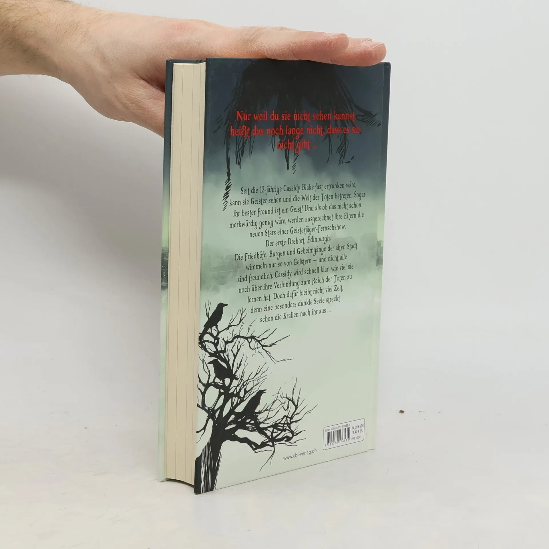 Nur weil du sie nicht sehen kannst, heißt das noch lange nicht, dass es sie nicht gibt ... Seit Cassidy Blake fast ertrunken wäre, kann sie Geister sehen und die Welt der Toten betreten. Sogar ihr bester Freund ist ein Geist! Und als ob das nicht schon merkwürdig genug wäre, werden ausgerechnet ihre Eltern die neuen Stars einer Geisterjäger-Fernsehshow. Der erste Drehort: Edinburgh. Die Friedhöfe, Burgen und Geheimgänge der alten Stadt wimmeln nur so vor Geistern – und nicht alle sind freundlich. An diesem unheimlichen Ort wird Cassidy langsam klar, wie viel sie noch über ihre Verbindung zum Reich der Toten zu lernen hat. Doch dafür bleibt ihr nicht viel Zeit, denn eine besonders dunkle Seele streckt schon die Krallen nach ihr aus ... Alle Bände der City-of-Ghosts-Reihe: Die Geister, die mich riefen Im Reich der vergessenen Geister Der Bote aus der Dunkelheit