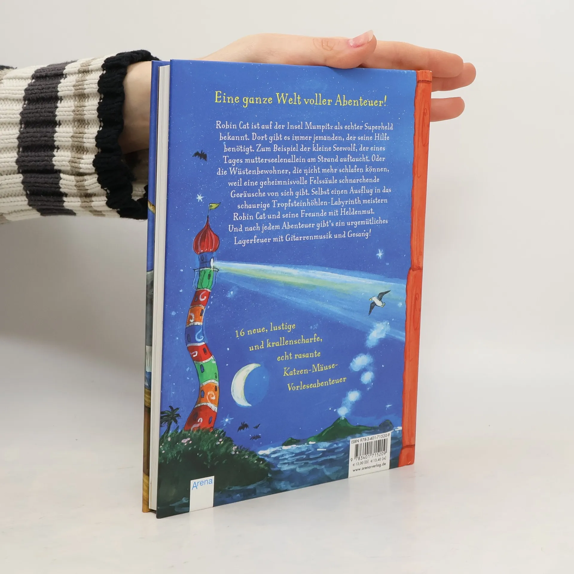 Wie gut, dass Robin Cat auf der Insel Mumpitz als echter Abenteurer und größter Superheld aller Zeiten bekannt ist. Denn dort gibt es immer jemanden, der Hilfe benötigt. Zum Beispiel der kleine Seewolf, der eines Tages mutterseelenallein am Strand auftaucht. Oder die Wüstenbewohner, die nicht mehr schlafen können, weil eine geheimnisvolle Felssäule schnarchende Geräusche von sich gibt. Und selbst einen Ausflug in das schaurige Tropfsteinhöhlen-Labyrinth meistern Robin Cat und seine Freunde mit unglaublichem Heldenmut. Zur Belohnung gibt’s nach jedem Abenteuer ein Lagerfeuer mit Gitarrenmusik und Gesang: katzenstark und urgemütlich!