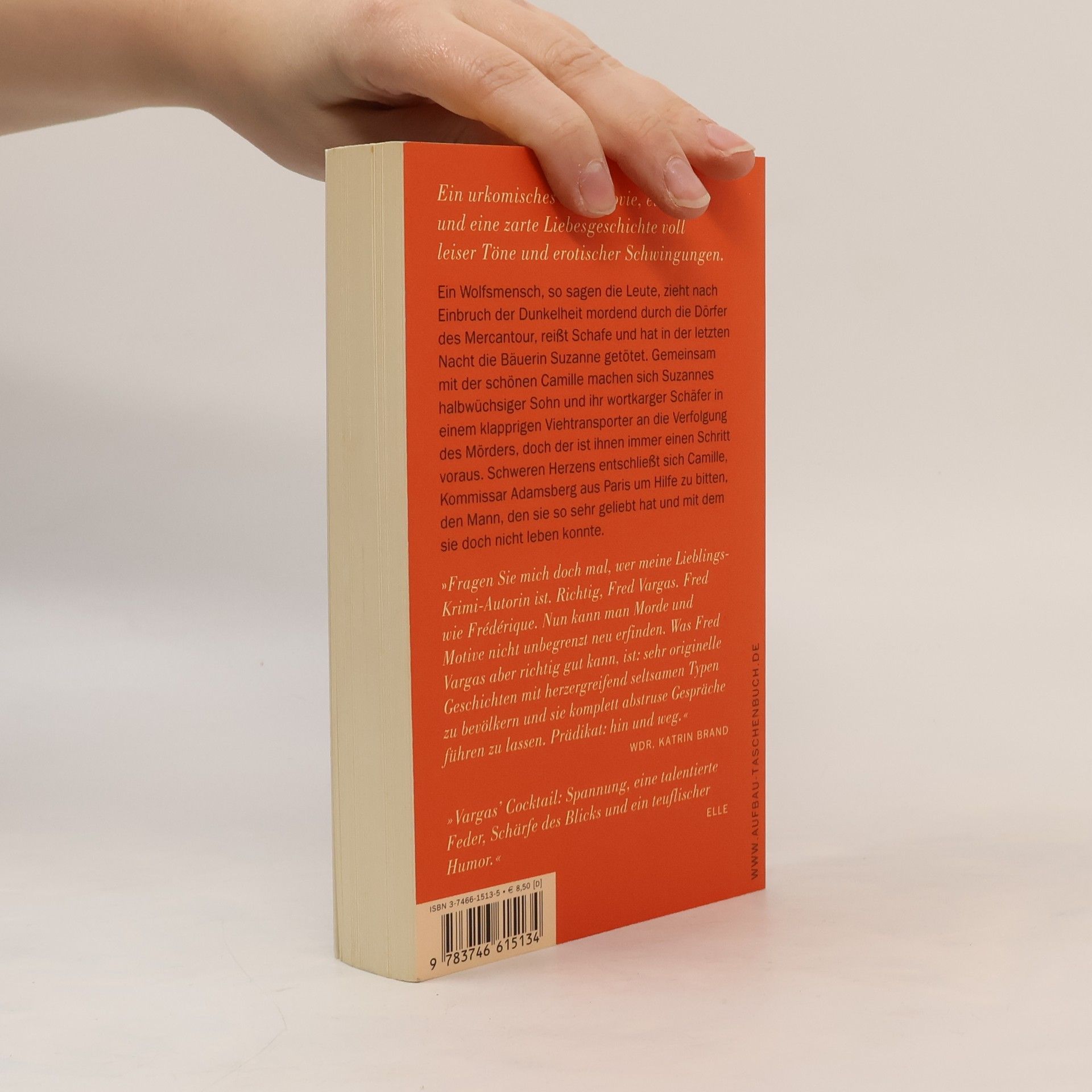 Ein urkomisches Roadmovie, ein Krimi und eine zarte Liebesgeschichte voll leiser Töne und erotischer Schwingungen. Ein Wolfsmensch, so sagen die Leute, zieht nach Einbruch der Dunkelheit mordend durch die Dörfer des Mercantour, reißt Schafe und hat in der letzten Nacht die Bäuerin Suzanne getötet. Gemeinsam mit der schönen Camille machen sich Suzannes halbwüchsiger Sohn und ihr wortkarger Schäfer in einem klapprigen Viehtransporter an die Verfolgung des Mörders, doch der ist ihnen immer einen Schritt voraus. Schweren Herzens entschließt sich Camille, Kommissar Adamsberg aus Paris um Hilfe zu bitten, den Mann, den sie so sehr geliebt hat und mit dem sie doch nicht leben konnte. „Fragen Sie mich doch mal, wer meine Lieblings-Krimi-Autorin ist. Richtig, Fred Vargas. Fred wie Frédérique. Nun kann man Morde und Motive nicht unbegrenzt neu erfinden. Was Fred Vargas aber richtig gut kann, ist: sehr originelle Geschichten mit herzergreifend seltsamen Typen zu bevölkern und sie komplett abstruse Gespräche führen zu lassen. Prädikat: hin und weg.“ WDR, Katrin Brand "Vargas' Cocktail: Spannung, eine talentierte Feder, Schärfe des Blicks und ein teuflischer Humor." ELLE