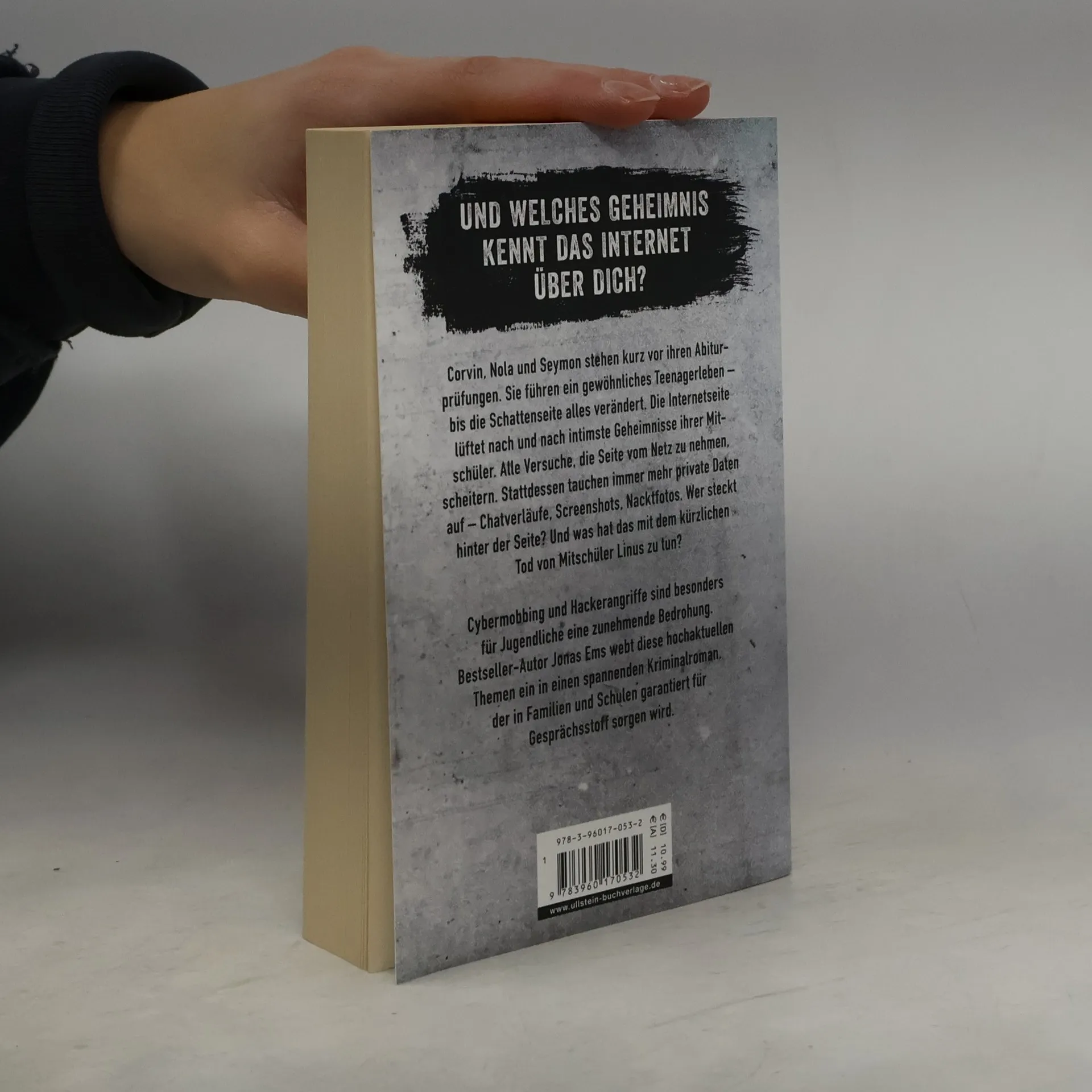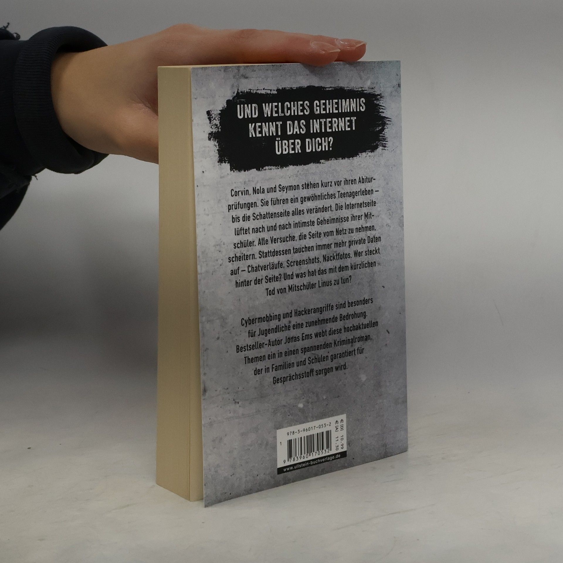Das neue Buch von SPIEGEL-Bestsellerautor Jonas Ems Und welches Geheimnis kennt das Internet über dich? Corvin, Nola und Seymon stehen kurz vor ihren Abiturprüfungen. Sie führen ein gewöhnliches Teenagerleben – bis die Schattenseite alles verändert. Die Internetseite lüftet nach und nach intimste Geheimnisse ihrer Mitschüler. Alle Versuche, die Seite vom Netz zu nehmen, scheitern. Stattdessen tauchen immer mehr private Daten auf – Chatverläufe, Screenshots, Nacktfotos. Wer steckt hinter der Seite? Und was hat das mit dem kürzlichen Tod von Mitschüler Linus zu tun? Cybermobbing und Hackerangriffe sind besonders für Jugendliche eine zunehmende Bedrohung. Bestseller-Autor Jonas Ems webt diese hochaktuellen Themen ein in einen spannenden Kriminalroman, der in Familien und Schulen garantiert für Gesprächsstoff sorgen wird.