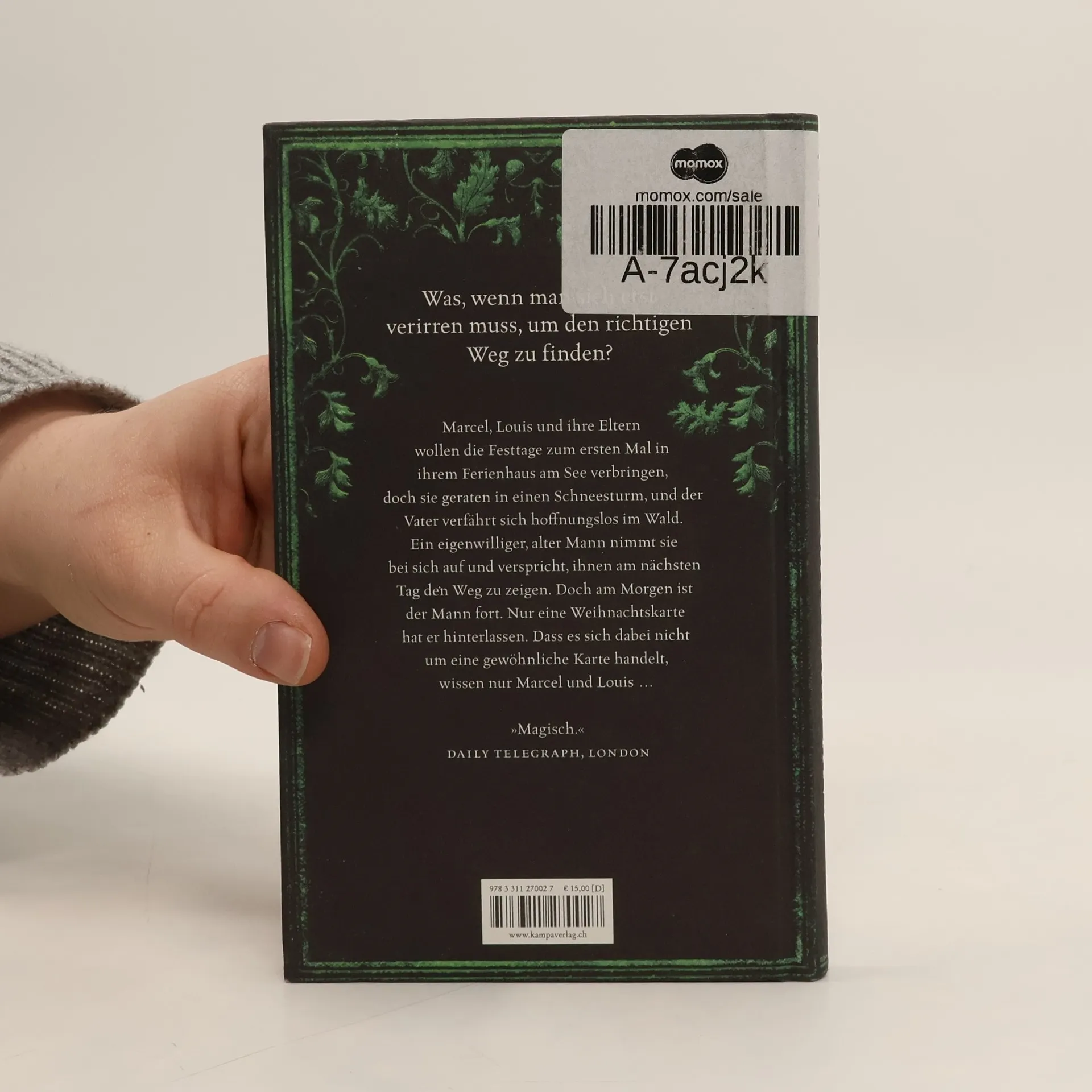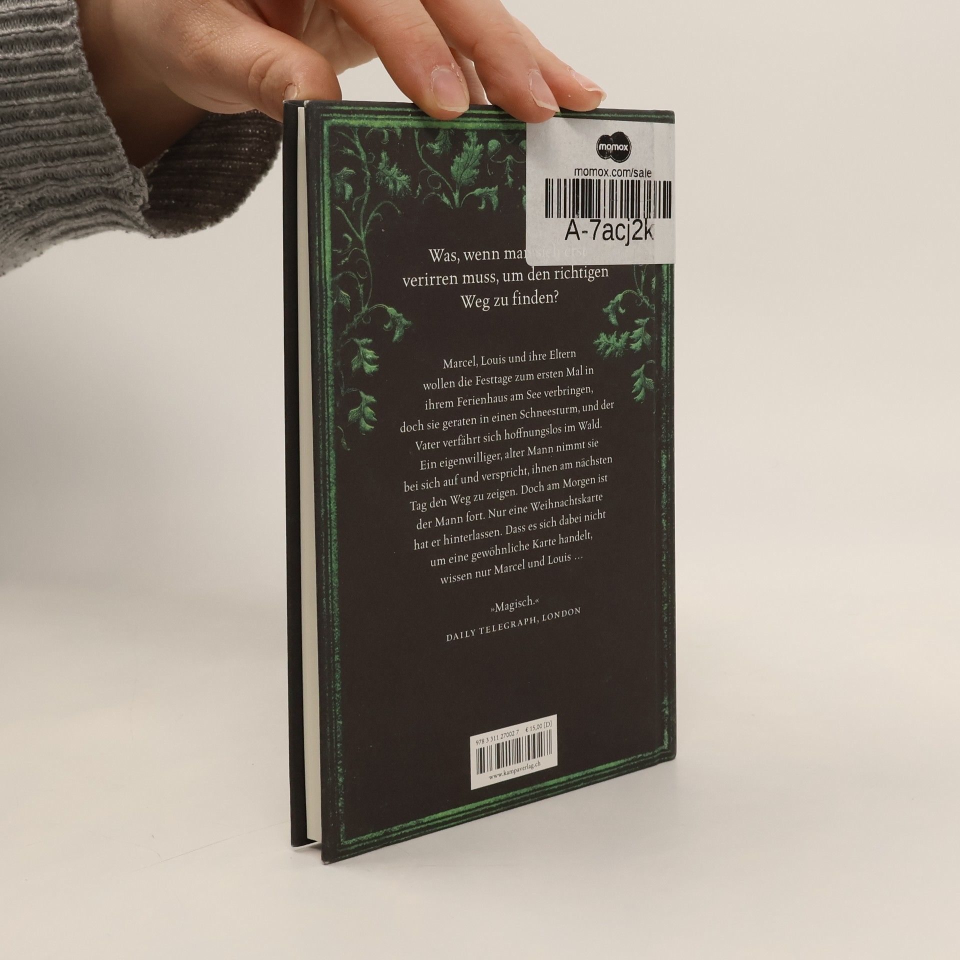 »Immer, wenn ich fedrig leichten Schnee langsam an einer Scheibe herunterrieseln sehe, der sich zu einem weißen Polster auf der Fensterbank türmt, und der Wind leise stöhnend durch eine Ritze in ein Zimmer drängt, wo Flammen im Kamin singen, muss ich an das Weihnachtsfest denken, an dem ich neun war, und an unser Haus in Indian Willows. Wir hatten uns verirrt.«Marcel, Louis und ihre Eltern wollen die Festtage zum ersten Mal in ihrem Ferienhaus am See verbringen, doch sie geraten in einen Schneesturm, und der Vater verfährt sich hoffnungslos im Wald. Endlich entdecken sie ein Haus, in dem noch Licht brennt. Ein eigenwilliger, alter Mann nimmt sie auf und verspricht, ihnen am nächsten Tag den Weg zu zeigen. Doch am Morgen ist der Mann fort. Aber er hat eine Weihnachtskarte hinterlassen, die sie zu ihrem Haus führen soll. Dass es sich dabei nicht um eine gewöhnliche Karte handelt, wissen nur Marcel …