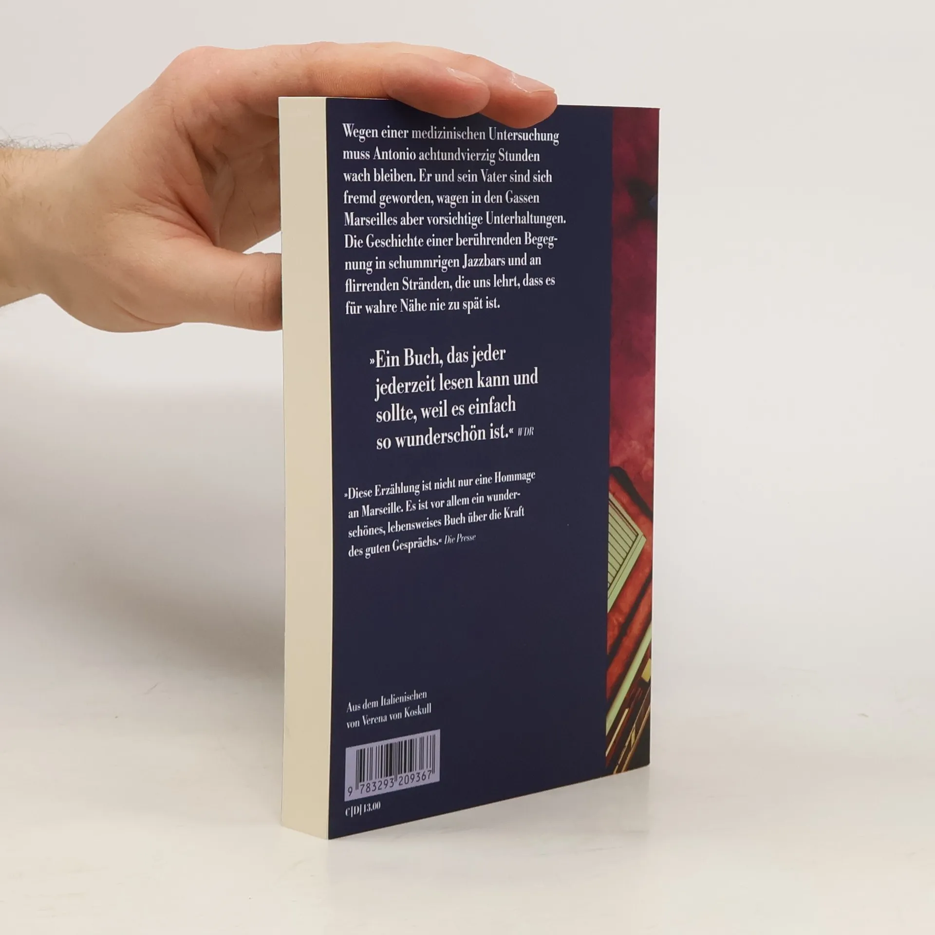 Zwei Tage und zwei Nächte ohne Schlaf. So lautet die ärztliche Anweisung, für die Antonio und sein Vater nach Marseille gereist sind. Bekommt Antonio keinen epileptischen Anfall, ist er geheilt, darf einfach wieder Teenager sein. Nun liegen achtundvierzig Stunden vor ihnen. Vater und Sohn, die sich fremd geworden sind, wagen in den Gassen der Stadt vorsichtige Unterhaltungen. Darüber, wie es früher war. Wie es jetzt ist. Wie man sich verliebt. Wie man Musik wirklich hört. Sie finden sich in schummrigen Jazzbars wieder, in freundlichen Küchen, an flimmernden Stränden. Und irgendwann, zwischen Kaffee, Wein und der nächsten Dämmerung, beginnen sie, einander zu verstehen. Eine leise, bewegende Begegnung zwischen Vater und Sohn, die uns lehrt, dass es für wahre Nähe nie zu spät ist.