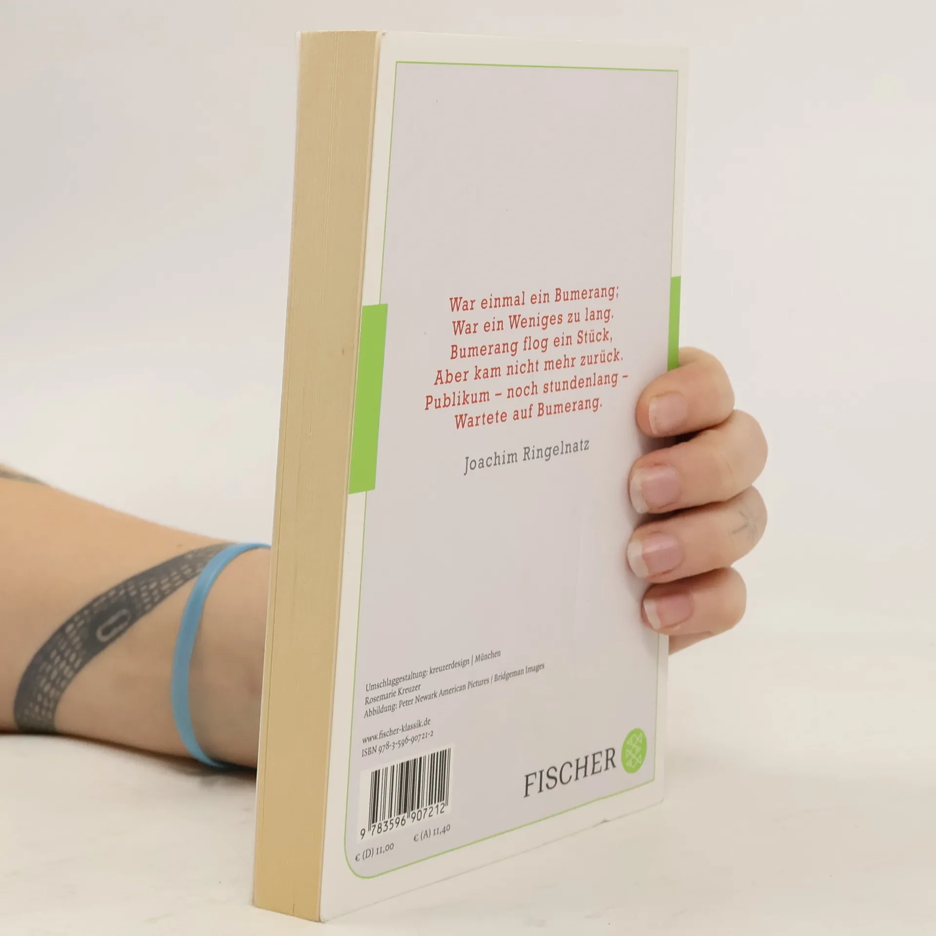 War einmal ein Bumerang; War ein Weniges zu lang. Bumerang flog ein Stück, Aber kam nicht mehr zurück. Publikum - noch stundenlang - Wartete auf Bumerang. Joachim Ringelnatz