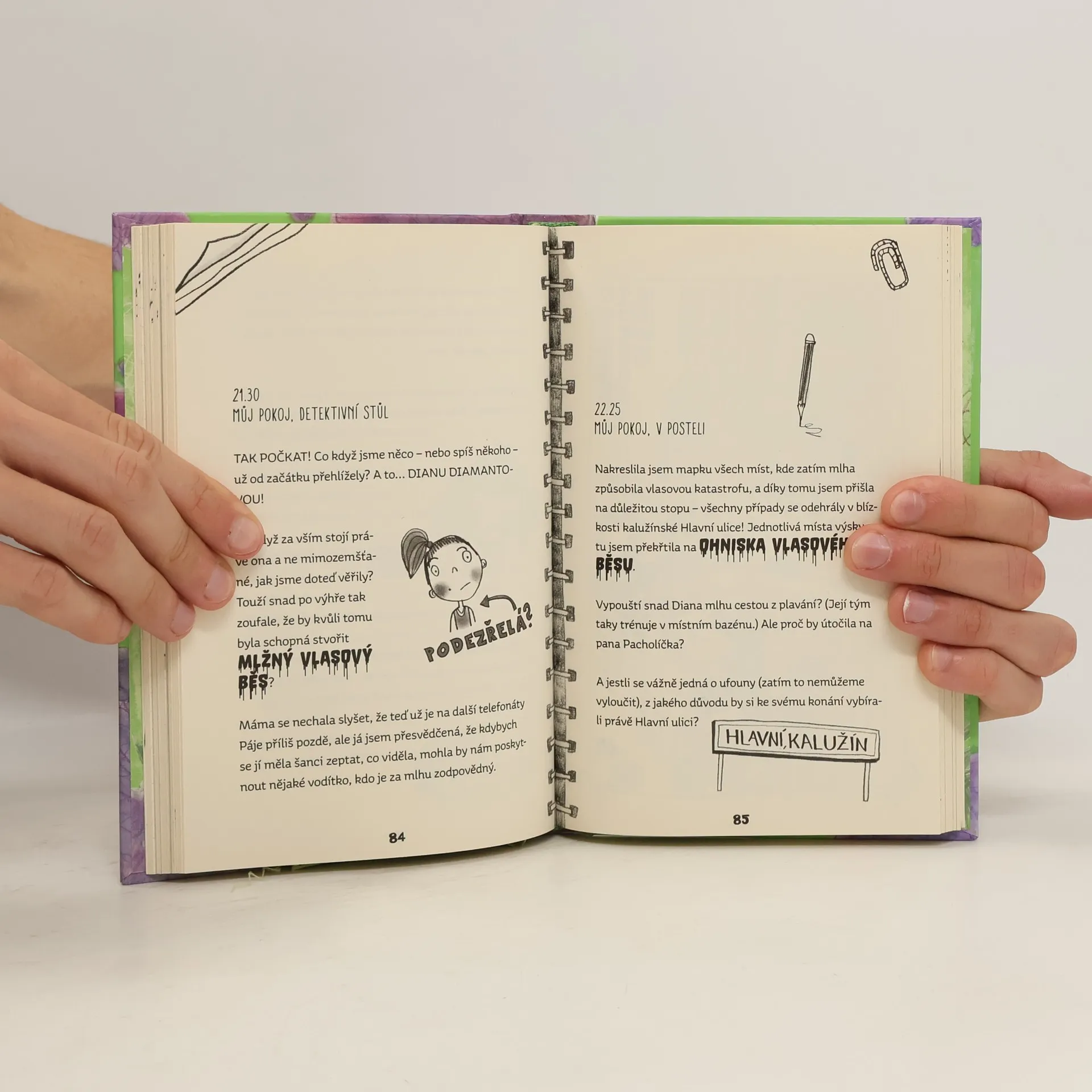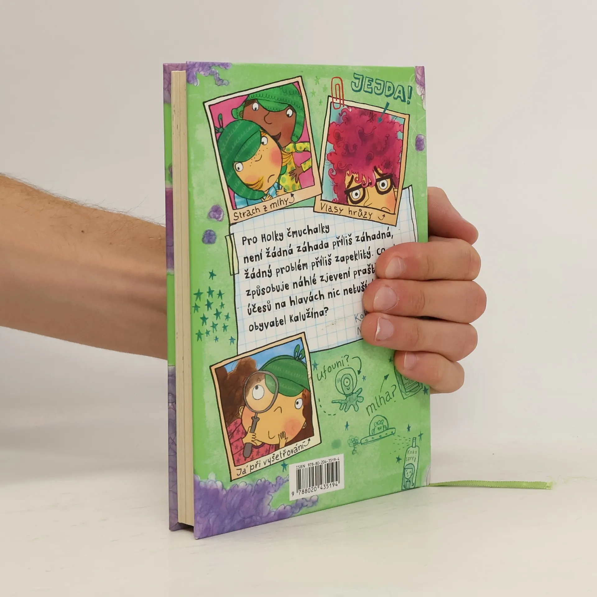 Devítiletá Majda Čmuchalová a její kolegyně z detektivní kanceláře Holky čmuchalky o sobě rády prohlašují, že pro ně není žádná záhada příliš záhadná a žádný problém příliš zapeklitý. Ale bude to platit i v případě děsivé fialové mlhy, která se ve městě zničehonic objevila a teď ve stínech číhá na ubohé obyvatele Kalužína, kterým na hlavách vytváří ty nejpodivnější a nejpraštěnější účesy? Jsou snad za strašidelný vlasový úkaz zodpovědní ufouni z vesmíru? A podaří se děvčatům případ rozřešit, dřív než celé město skončí s hlavou podobnou cukrové vatě?