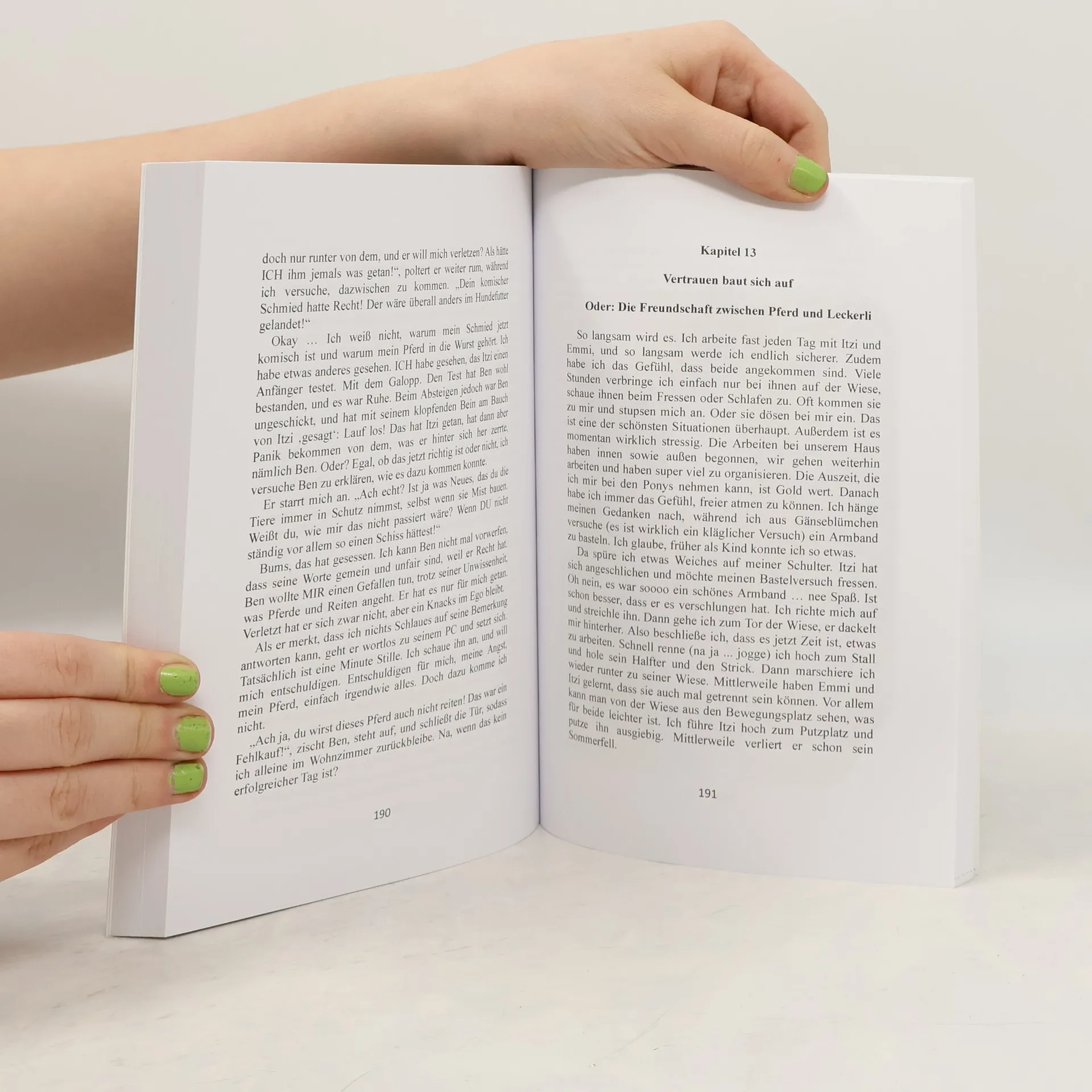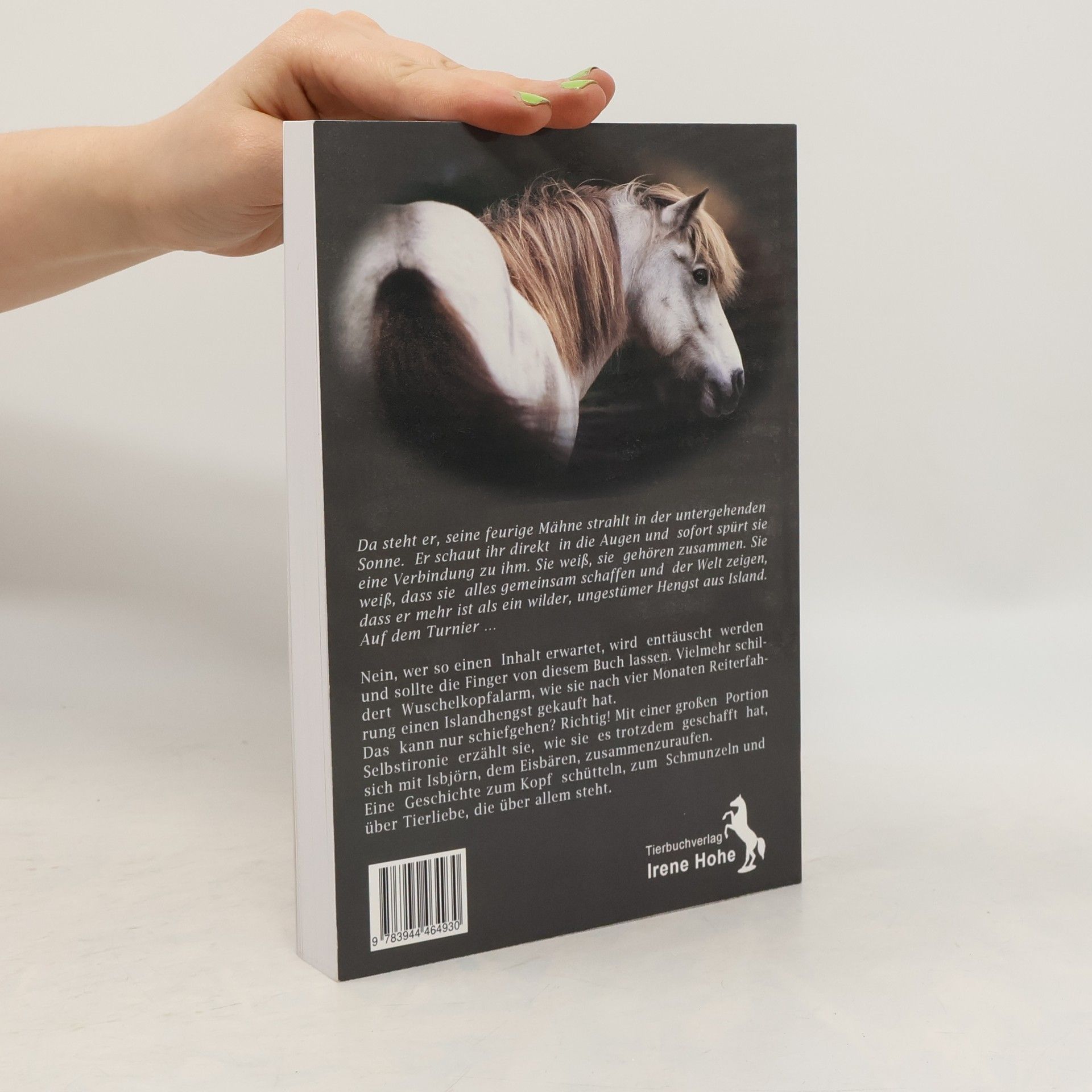 Da steht er, seine feurige Mähne strahlt in der untergehenden Sonne. Er schaut ihr direkt in die Augen und sofort spürt sie eine Verbindung zu ihm. Sie weiß, sie gehören zusammen. Sie weiß, dass sie alles gemeinsam schaffen und der Welt zeigen, dass er mehr ist als ein wilder, ungestümer Hengst aus Island. Auf dem Turnier … Nein, wer so einen Inhalt erwartet, wird enttäuscht werden und sollte die Finger von diesem Buch lassen. Vielmehr schildert Wuschelkopfalarm, wie sie nach vier Monaten Reiterfahrung einen Islandhengst gekauft hat. Das kann nur schiefgehen? Richtig! Mit einer großen Portion Selbstironie erzählt sie, wie sie es trotzdem geschafft hat, sich mit Isbjörn, dem Eisbären, zusammenzuraufen. Eine Geschichte zum Kopf schütteln, zum Schmunzeln und über Tierliebe, die über allem steht.