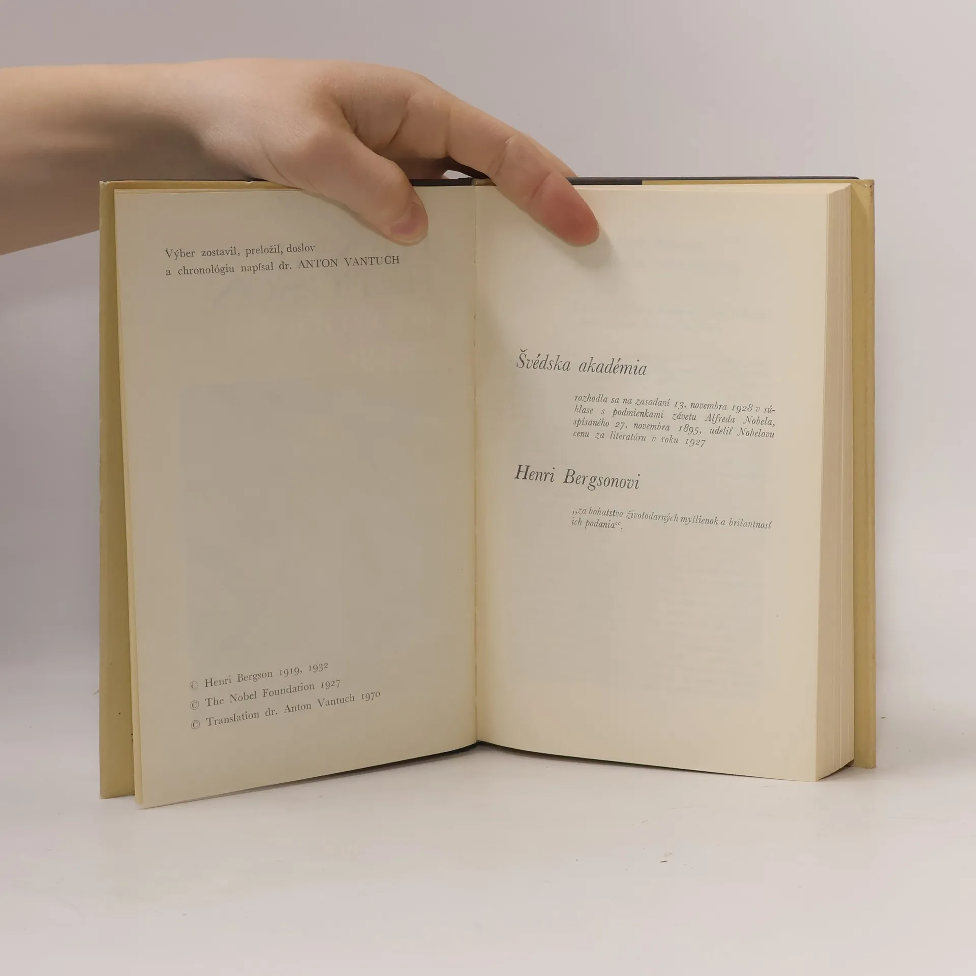 Filozofické dielo francúzskeho autora: Esej o bezprostredných danostiach vedomia, Dva pramene morálky a náboženstva, Vedomie a život. Obsahuje prejav H. Bergsona pri preberaní Nobelovej ceny za literatúru.