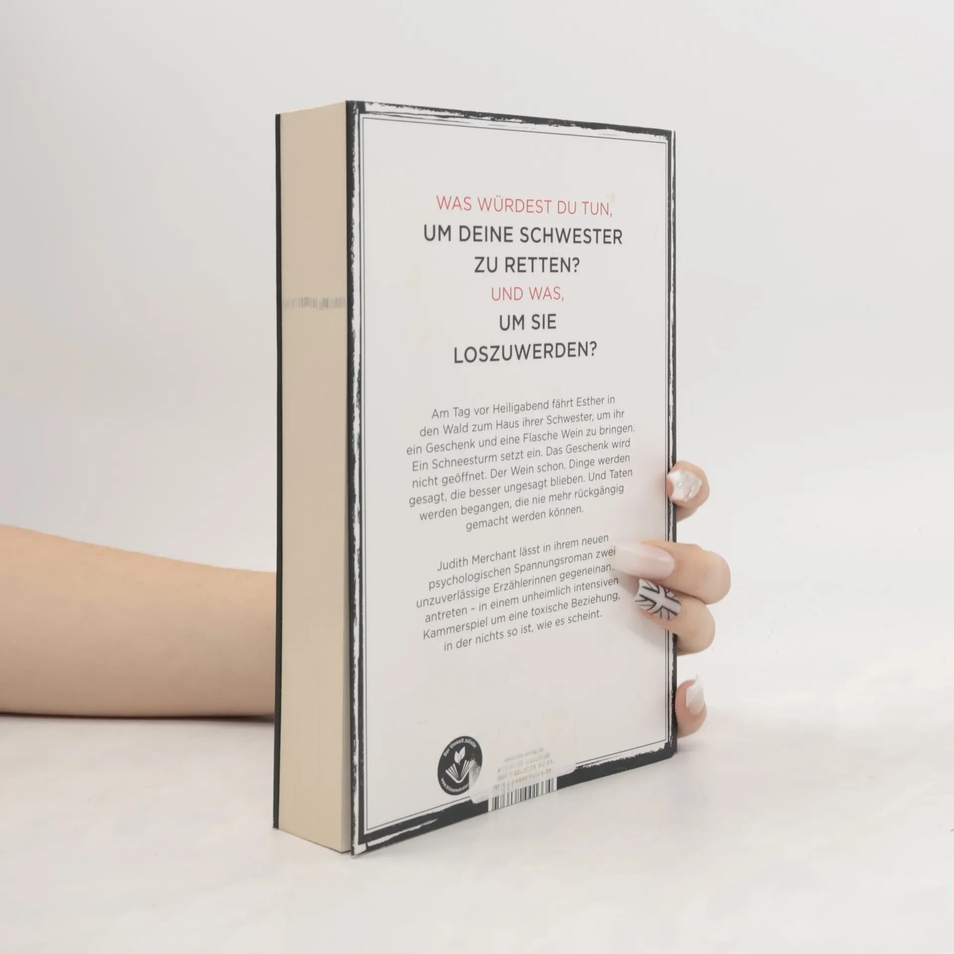 Was würdest du tun, um deine Schwester zu retten? Und was, um sie loszuwerden? Am Tag vor Heiligabend fährt Esther in den Wald zum Haus ihrer Schwester, um ihr ein Geschenk und eine Flasche Wein zu bringen. Ein Schneesturm setzt ein. Das Geschenk bleibt ungeöffnet, der Wein jedoch nicht. Unausgesprochene Dinge werden gesagt, und Taten geschehen, die nicht rückgängig gemacht werden können. Esther sollte eigentlich das Weihnachtsfest mit ihrem Ehemann und den Kindern in der Stadt vorbereiten, doch ihre Schwester Sue, die nach ihrer Scheidung allein in einem großen Haus im Wald lebt, lässt sie nicht los. Sie fährt los, um nach Sue zu sehen und sicherzustellen, dass sie ihre Tabletten nimmt. Eine Einladung in die Stadt kann sie nicht aussprechen, aus Angst, dass Sue erneut durchdreht, wie im letzten Jahr. Am Haus angekommen, merkt Esther, dass Sue sie loswerden will. Was verbirgt sie? Der Schneesturm wird stärker und zum ersten Mal seit ihrer Kindheit sprechen die Schwestern offen miteinander – bis eine von ihnen zum Messer greift. Während der Schnee alles verdeckt und die Geräusche erstickt, entfaltet sich ein intensives Kammerspiel um eine toxische Beziehung, in der nichts so ist, wie es scheint.