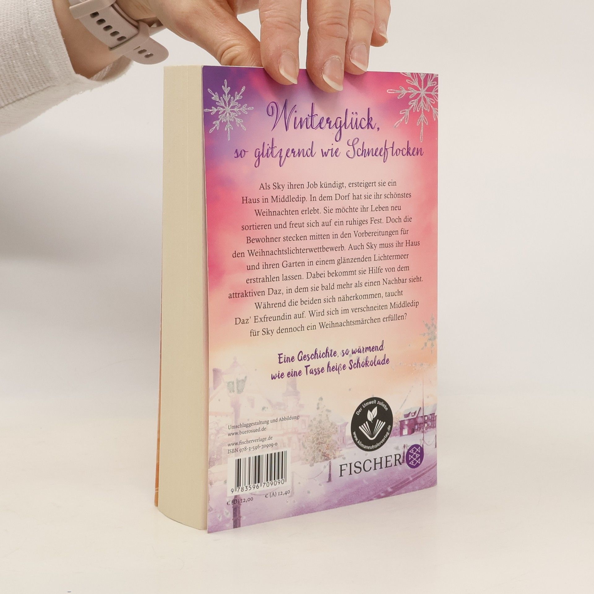So wärmend wie eine Tasse heiße Schokolade – der neue Roman der britischen Erfolgsautorin Eine Weihnachtsliebe, so glitzernd wie Schneeflocken Als Sky ihren Job kündigt, ersteigert sie ein Haus in dem kleinen Middledip. In dem Dorf hat sie ihr schönstes Weihnachten erlebt und verbindet mit ihm glückliche Kindheitserinnerungen. Sie möchte ihr Leben neu sortieren und freut sich auf ein ruhiges Fest. Doch die Bewohner stecken mitten in den Vorbereitungen für den Weihnachtslichterwettbewerb. Auch Sky muss ihr renovierungsbedürftiges Haus und ihren Garten in einem glänzenden Lichtermeer erstrahlen lassen. Dabei bekommt sie Hilfe von dem attraktiven Daz, in dem sie bald mehr als einen freundlichen Nachbar sieht. Während die beiden sich näherkommen, taucht plötzlich Daz‘ Exfreundin auf. Wird sich im verschneiten Middledip für Sky dennoch ein Weihnachtsmärchen erfüllen? »Ein Pageturner.« Woman’s Weekly Hier werden Weihnachtsträume wahr – Die WinterWeihnachtsZauber-Reihe: Band 1: Winterzauberküsse Band 2: Mistelzweigzauber Band 3: Wunderkerzenzauber Band 4: Schneeflockenglitzern Band 5: Zimtsternträume Band 6: Sternschnuppenfunkeln Band 7: Winterglücksträume Die Romane sind auch unabhängig voneinander ein großer Lesegenuss.