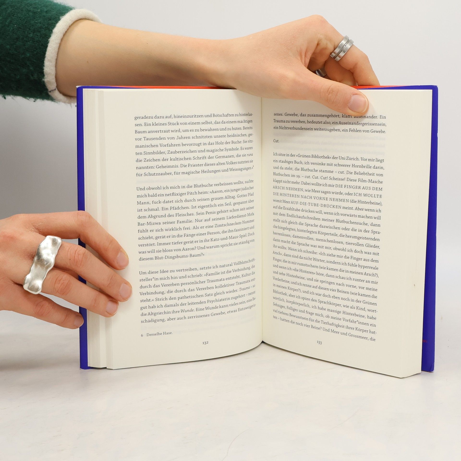 Die Erzählfigur in ›Blutbuch‹ identifiziert sich weder als Mann noch als Frau. Aufgewachsen in einem Schweizer Vorort, lebt sie nun in Zürich, ist den engen Strukturen der Herkunft entkommen und fühlt sich im nonbinären Körper und in der eigenen Sexualität wohl. Doch dann erkrankt die Großmutter an Demenz, und das Ich beginnt, sich mit der Vergangenheit auseinanderzusetzen: Warum sind da nur bruchstückhafte Erinnerungen an die eigene Kindheit? Wieso vermag sich die Großmutter kaum von ihrer früh verstorbenen Schwester abzugrenzen? Und was geschah mit der Großtante, die als junge Frau verschwand? Die Erzählfigur stemmt sich gegen die Schweigekultur der Mütter und forscht nach der nicht tradierten weiblichen Blutslinie. Dieser Roman ist ein stilistisch und formal einzigartiger Befreiungsakt von den Dingen, die wir ungefragt weitertragen: Geschlechter, Traumata, Klassenzugehörigkeiten. Kim de l’Horizon macht sich auf die Suche nach anderen Arten von Wissen und Überlieferung, Erzählen und Ichwerdung, unterspült dabei die linearen Formen der Familienerzählung und nähert sich einer flüssigen und strömenden Art des Schreibens, die nicht festlegt, sondern öffnet.