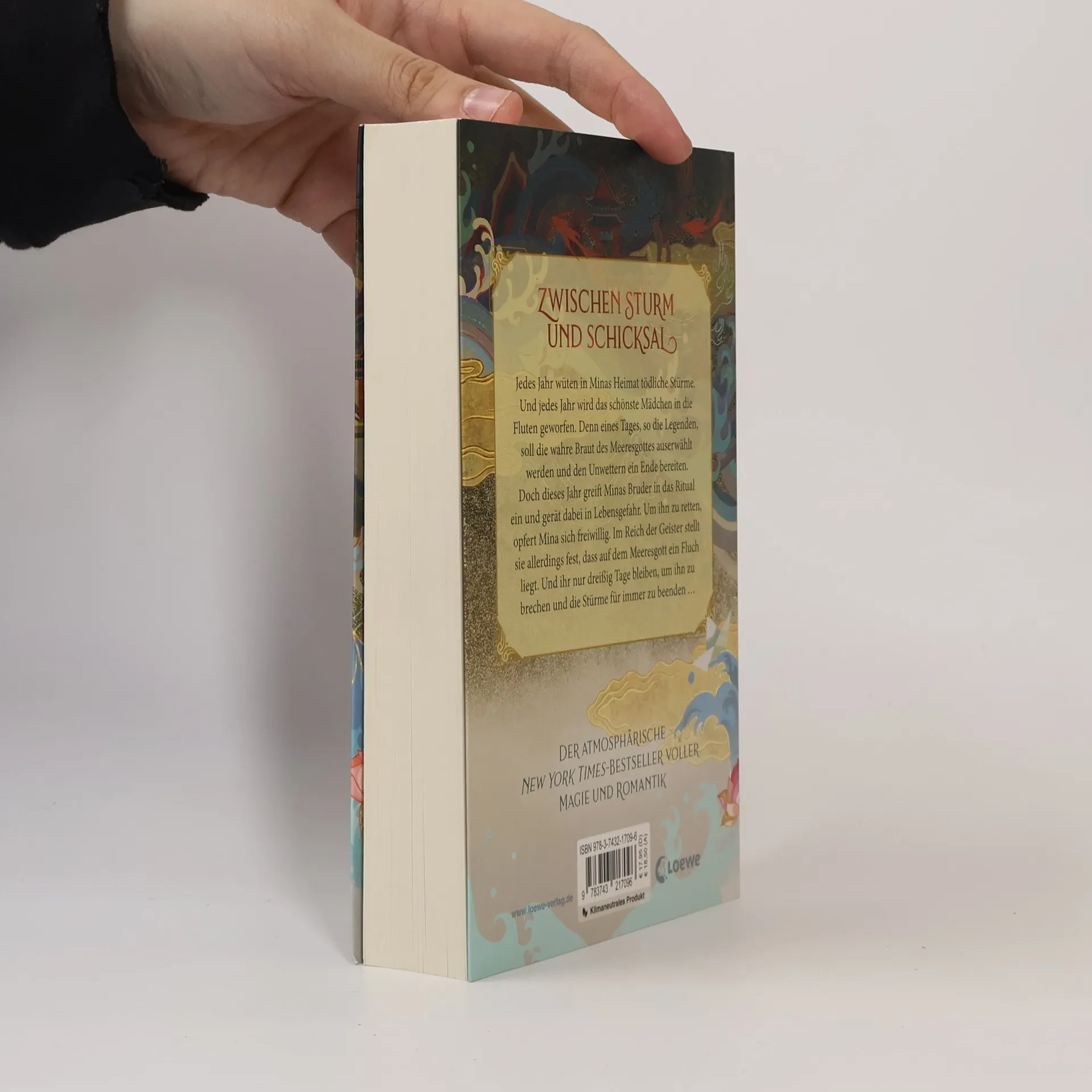 Das Buch ist bei deiner Buchhandlung vor Ort und bei vielen Online-Buchshops erhältlich! Zwischen Sturm und Schicksal Jedes Jahr wüten in Minas Heimat tödliche Stürme. Und jedes Jahr wird das schönste Mädchen in die Fluten geworfen. Denn eines Tages, so die Legenden, soll die wahre Braut des Meeresgottes auserwählt werden und den Unwettern ein Ende bereiten. Doch dieses Jahr greift Minas Bruder in das Ritual ein und gerät dabei in Lebensgefahr. Um ihn zu retten, opfert Mina sich freiwillig. Im Reich der Geister stellt sie allerdings fest, dass auf dem Meeresgott ein Fluch liegt. Und ihr nur dreißig Tage bleiben, um ihn zu brechen und die Stürme für immer zu beenden … Tauche ein in die atmosphärische Fantasywelt dieses New York Times -Bestsellers! Mit dieser fesselnden Geschichte entführt uns Axie Oh in die koreanische Mythologie und eine Welt voller Magie, Wunder und Romantik und erweckt dabei die Geisterwelt Koreas für ihre Leser*innen zum Leben. Ein bewegendes Retelling der Sage um Shim Cheong mit Female Empowerment, Abenteuer und ein Highlight für alle Fantasyfans ! Klimaneutrales Produkt – Wir unterstützen ausgewählte Klimaprojekte!
