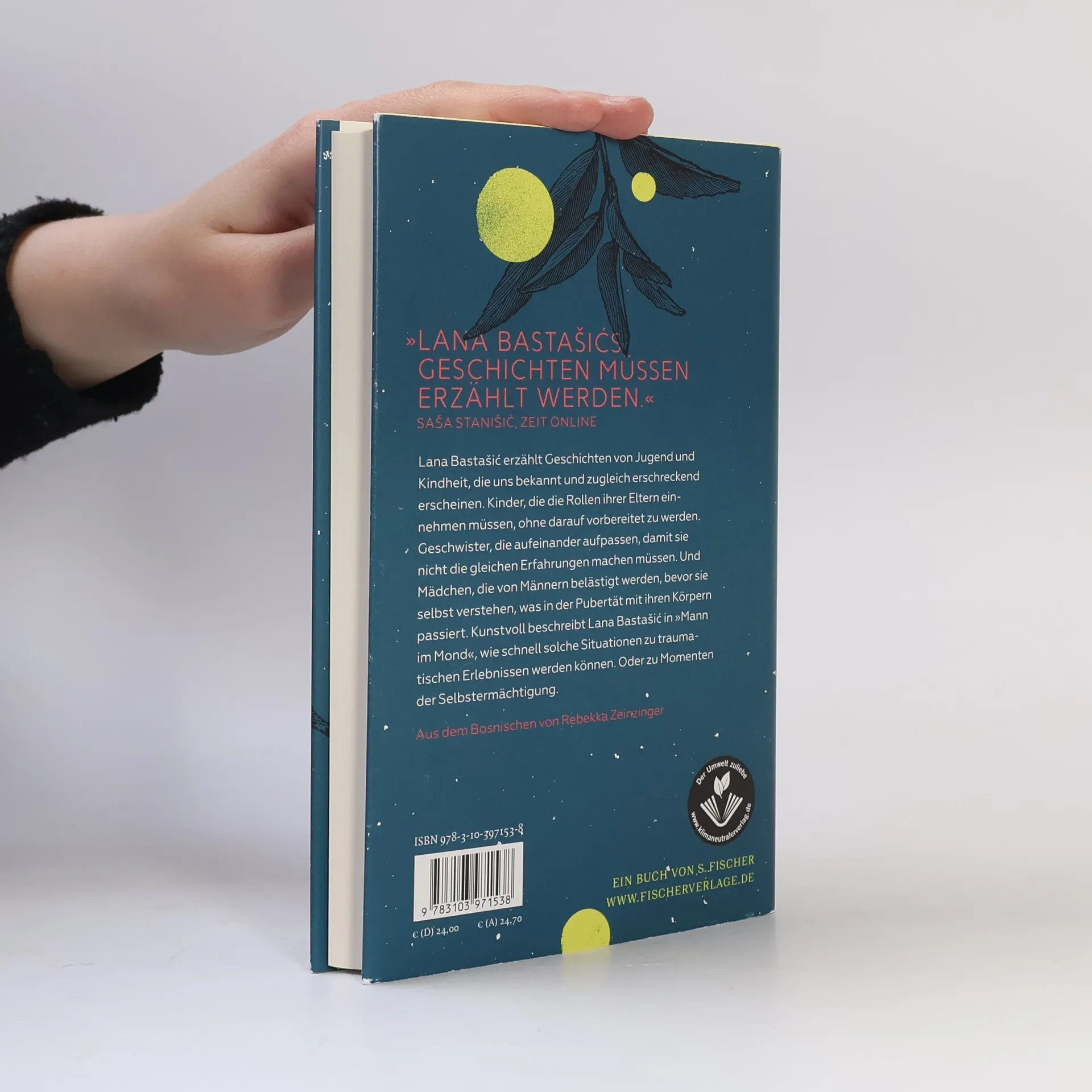 »Lana Bastašićs Geschichten müssen erzählt werden.« Saša Stanišić, Zeit Online Eine Mutter schickt ihre Tochter in den Supermarkt, um Alkohol zu kaufen. Und ist danach wütend, weil diese die Flasche alleine nicht kaufen konnte. Ein Mädchen bekommt mit, wie das ganze Dorf über den Vater lästert, der sich seit Längerem seltsam verhält. Und ein Sportlehrer schikaniert eine Schülerin, bis er plötzlich auf ihre Hilfe angewiesen ist. In »Mann im Mond« geraten Kinder immer wieder in Situationen, in denen sie schwerwiegende Entscheidungen selbst treffen müssen, weil die Erwachsenen ihren Rollen nicht gerecht werden. Kunstvoll zeigt Lana Bastašić in zwölf Geschichten, wie schnell aus solchen Situationen traumatische Erlebnissen werden können. Oder Momente der Selbstermächtigung. Und erzählt davon auf schonungslose Weise, mal düster und berührend, mal verstörend und poetisch.