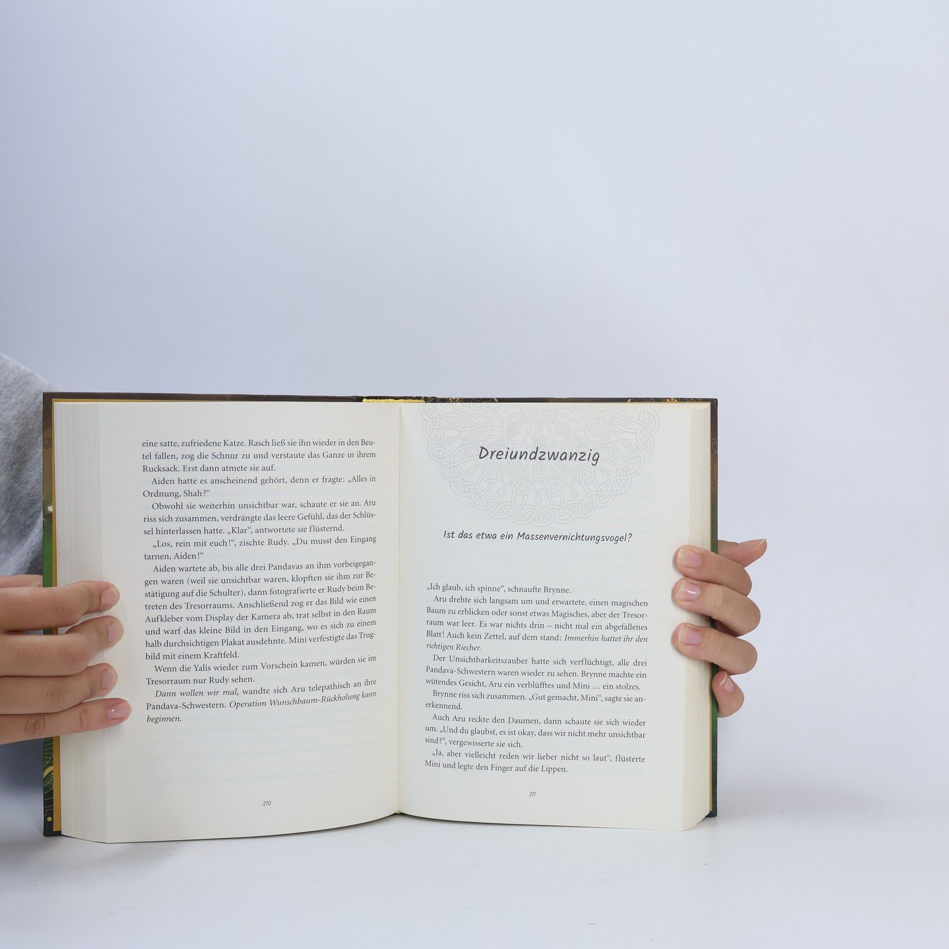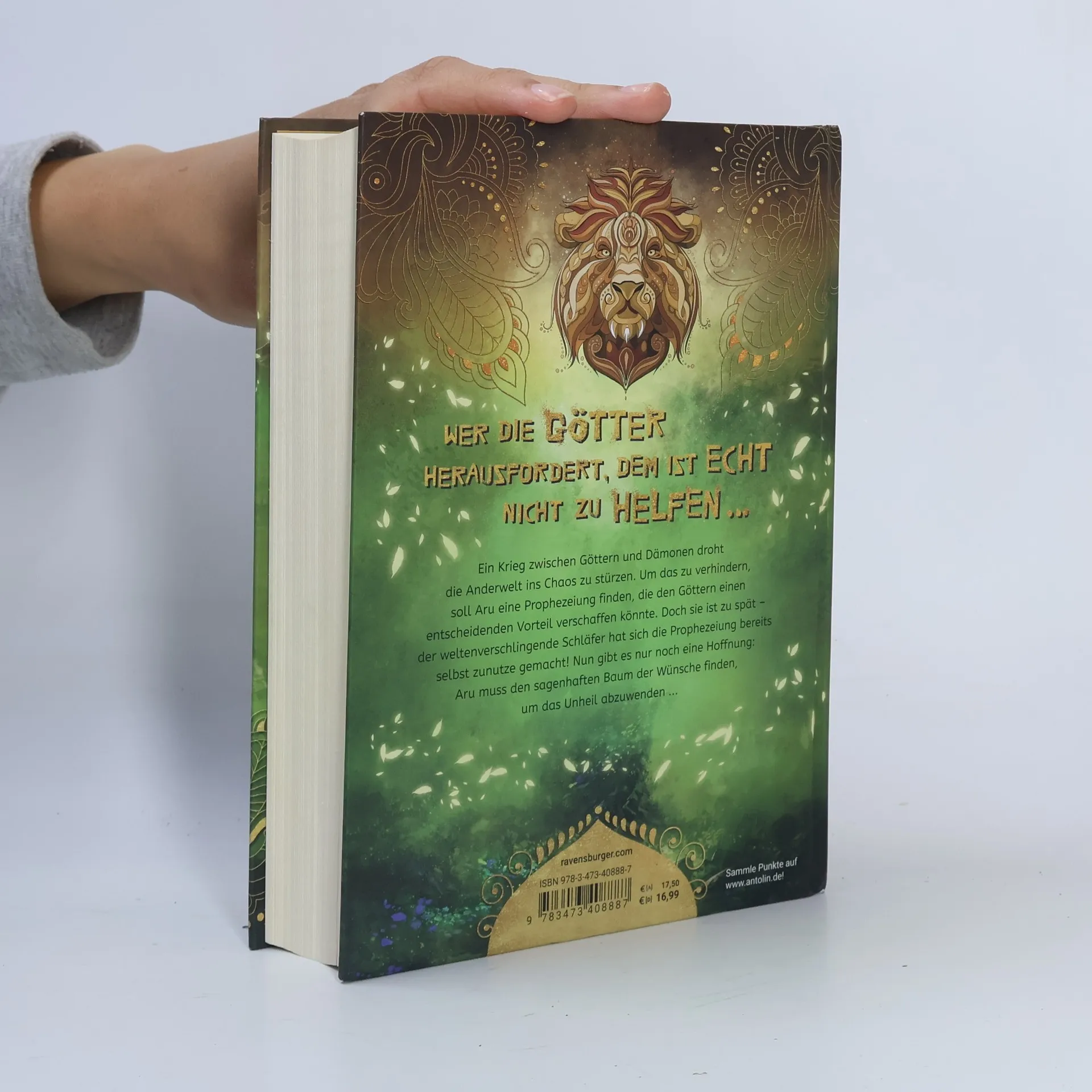 Wer die Götter herausfordert, dem ist echt nicht zu helfen ... Ein Krieg zwischen Göttern und Dämonen droht die Anderwelt ins Chaos zu stürzen. Um das zu verhindern, soll Aru eine Prophezeiung finden, die den Göttern einen entscheidenden Vorteil verschaffen könnte. Doch sie ist zu spät - der weltenverschlingende Schläfer hat sich die Prophezeiung bereits selbst zunutze gemacht! Nun gibt es nur noch eine Hoffnung: Aru muss den sagenhaften Baum der Wünsche finden, um das Unheil abzuwenden … Persönlich empfohlen von „Percy Jackson“-Autor Rick Riordan! Entdecke alle Abenteuer aus der Reihe „Rick Riordan Presents“: „Zane gegen die Götter“ von J. C. Cervantes Band 1: Sturmläufer Band 2: Feuerhüter Band 3: Schattenspringer „Ren gegen die Götter“ von J. C. Cervantes Band 1: Nachtkönigin Band 2: Jaguarmagie „Sikander gegen die Götter“ von Sarwat Chadda Band 1: Das Schwert des Schicksals Band 2: Der Zorn der Drachengöttin „Aru gegen die Götter“ von Roshani Chokshi Band 1: Die Wächter des Himmelspalasts Band 2: Im Reich des Meeresfürsten Band 3: Das Geheimnis des Wunschbaums Band 4: Die Magie der goldenen Stadt Band 5: Der Trank der Unsterblichkeit „Tristan gegen die Götter“ von Kwame Mbalia Band 1: Mythenweber