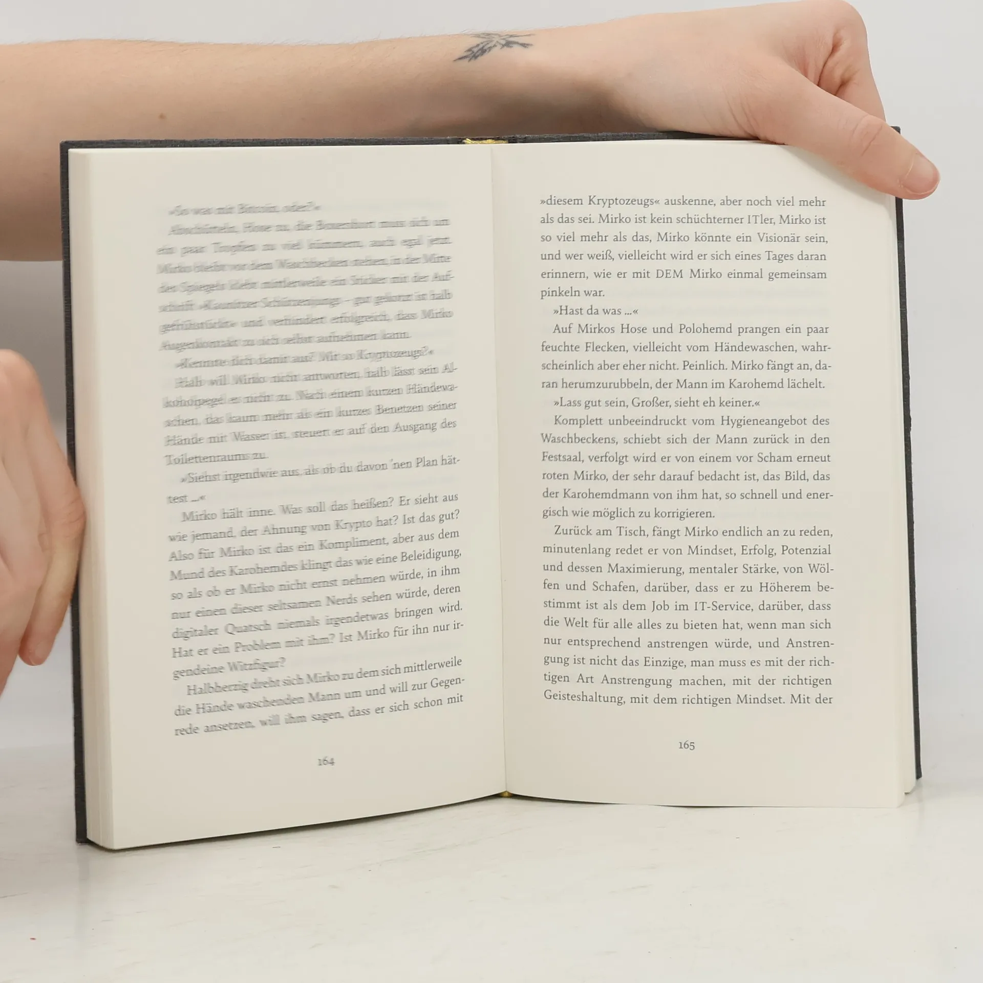 Maximilian Krach hat alles, was sich ein im Internet sozialisierter junger Mann im zweiten Jahrzehnt des 21. Jahrhunderts wünschen kann: teure Uhren, eine amtliche Anzahl Follower, eine so einfache wie geniale Geschäftsidee und einen unerschütterlichen Glauben an die eigene Einzigartigkeit. Da ihm daran gelegen ist, seine Erkenntnisse und Einsichten zu teilen, nimmt er sich alle paar Wochen die Zeit, um einem vollbesetzten Seminarraum in mittleren und kleinen deutschen Großstädten seine Ideen zuteilwerden zu lassen. Es geht um Wölfe und Schafe, um berühmte Einzelgänger und um den Schlüssel zum Erfolg, der nicht, wie so viele glauben, irgendwo da draußen liegt, sondern viel, viel näher: im richtigen Mindset. Doch wer deswegen glaubt, der Weg nach ganz oben sei nicht beschwerlich und fordernd, nicht gesäumt von dornigen Chancen und unbelehrbaren Bedenkenträger*innen, hat natürlich nichts verstanden. Es sind Lektionen, die auch Mirko noch bevorstehen, der sich aufmacht, mit Maximilians Hilfe aus seinem trostlosen Alltag auszubrechen. Und so werden Präsentationen gestrickt und Postings geplant, Sportwagen gemietet und NFTs gemintet, bis eine arglos abgesetzte Pizzabestellung in einer Gütersloher Winternacht Erkenntnisse bereithält, die sich nur sehr schwer in wichtige Learnings übersetzen lassen. Ein Roman über Männer, die keine Zeit und keine Lust haben, an ihrer