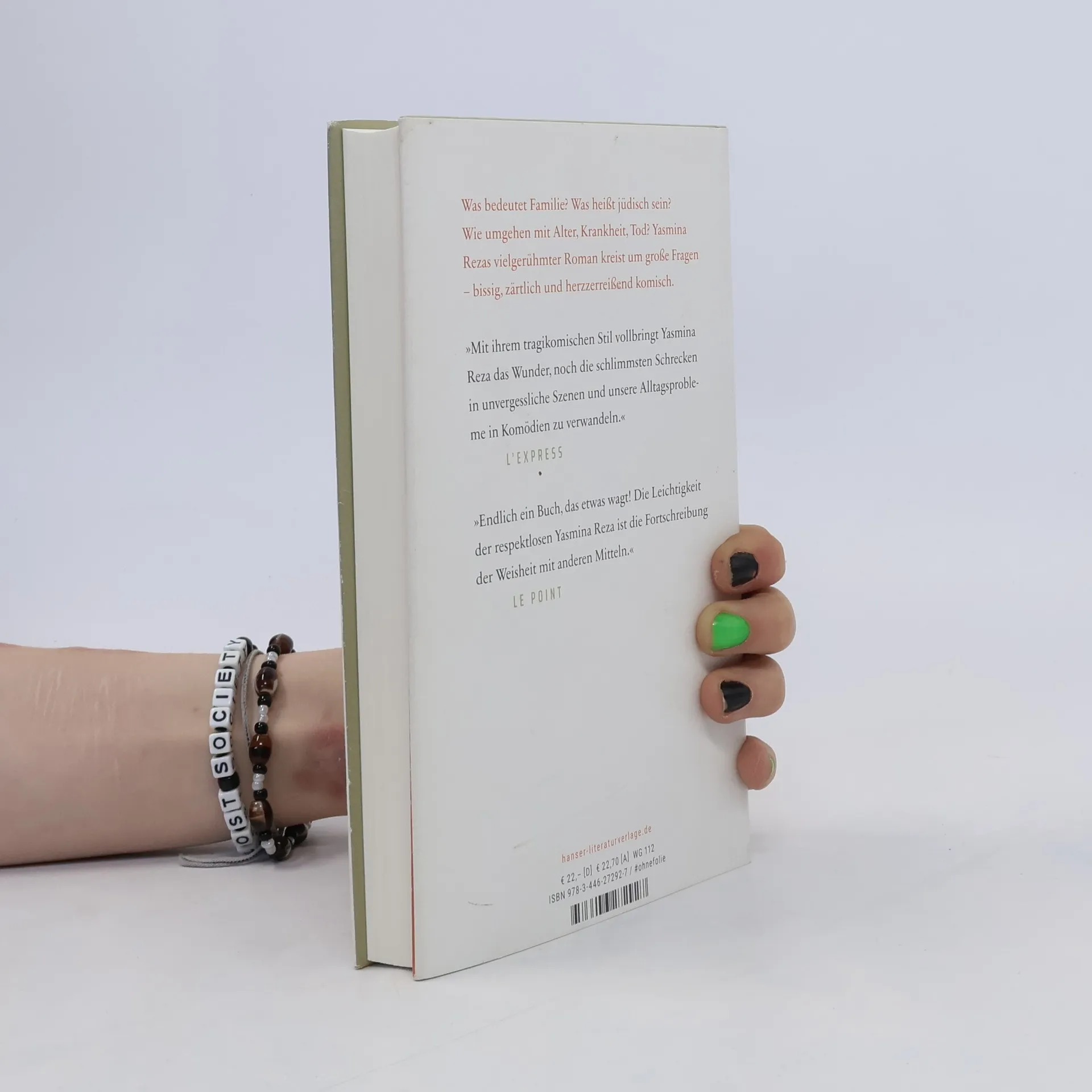 Der neue Roman von Yasmina Reza: „Dieses meisterliche Buch gehört zum Besten, was es derzeit zu lesen gibt.“ Nils Minkmar, Süddeutsche Zeitung Die Geschwister Popper: Serge, verkrachtes Genie und homme à femmes, Jean, der Vermittler und Ich-Erzähler, und Nana, die verwöhnte Jüngste mit dem unpassenden spanischen Mann. Eine jüdische Familie. Nach dem Tod der Mutter entfremdet man sich immer mehr. Zu ihren Lebzeiten hat keiner die alte Frau nach der Shoah und ihren ungarischen Vorfahren gefragt. Jetzt schlägt Serges Tochter Joséphine einen Besuch in Auschwitz vor. Virtuos hält Reza das Gleichgewicht zwischen Komik und Tragik, wenn bei der touristischen Besichtigung die Temperamente aufeinanderprallen. Hinter den messerscharfen Dialogen ist es gerade die existentielle Hilflosigkeit dieser Menschen, die berührt.