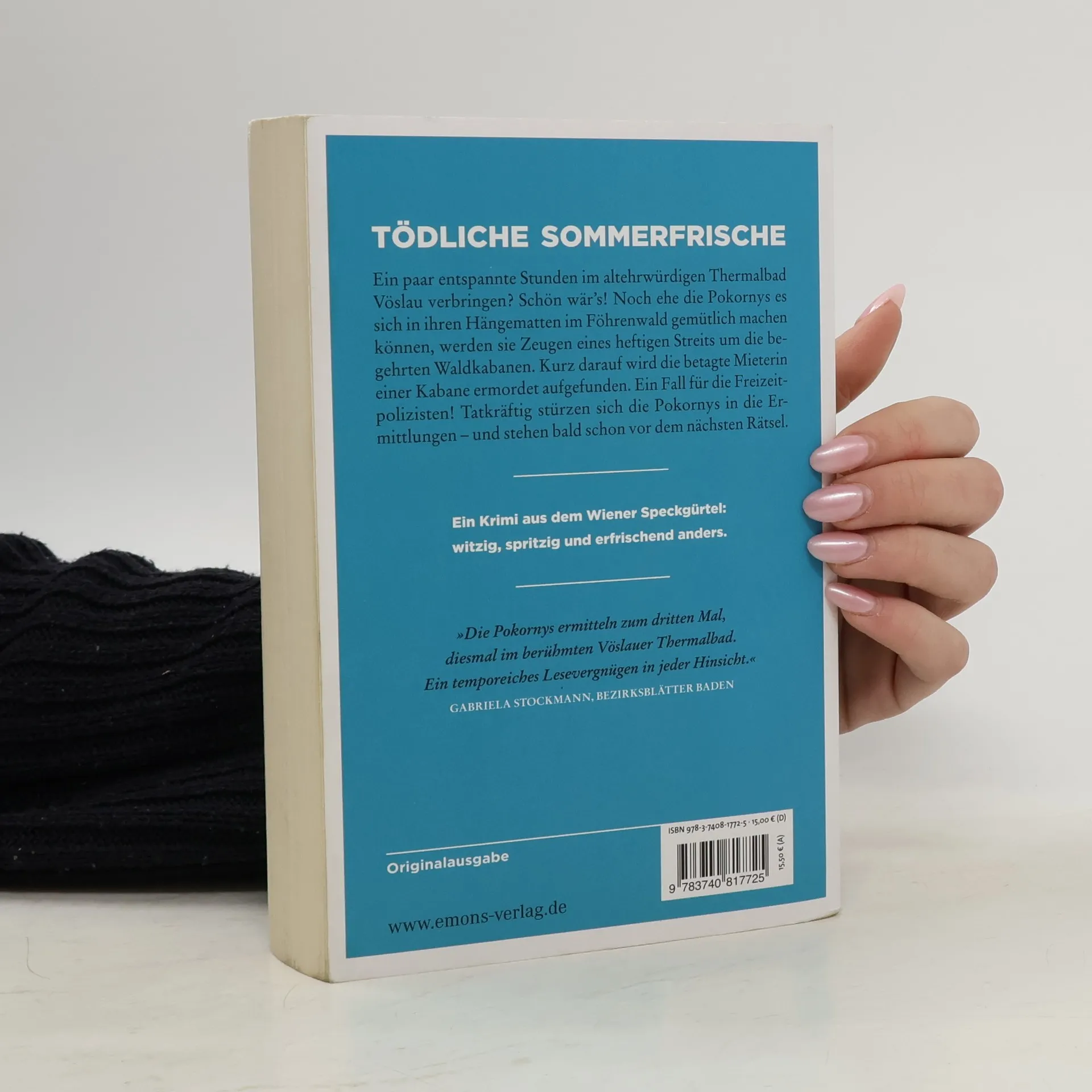 Ein Krimi aus dem Wiener Speckgürtel – witzig, spritzig und erfrischend anders. Ein paar entspannte Stunden im altehrwürdigen Thermalbad Vöslau verbringen? Schön wär’s! Noch bevor die Pokornys es sich in ihren Hängematten im Föhrenwald gemütlich machen können, werden sie Zeugen eines heftigen Streits um die begehrten Waldkabanen. Am nächsten Tag ist die schwer kranke Mieterin einer der Kabanen spurlos verschwunden. Ein Fall für die Freizeitpolizisten! Tatkräftig stürzen sich die Pokornys in die Ermittlungen – und stehen bald schon vor dem nächsten Rätsel.