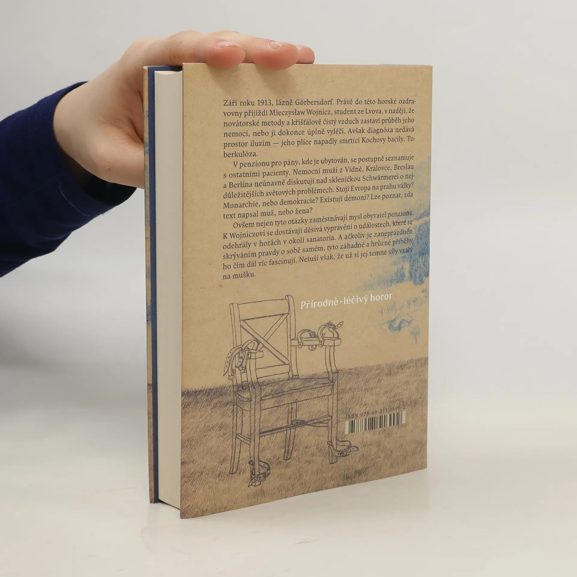 Přírodní léčivý horor. Září roku 1913, léčebné lázně Görbersdorf. Mieczysław Wojnicz, student ze Lvova, přijíždí do lázní v naději, že nejmodernější metody a křišťálově čistý vzduch zastaví průběh jeho nemoci, nebo ji možná úplně vyléčí. Avšak diagnóza nedává prostor iluzím. Mieczysław totiž trpí tuberkulózou. Ubytuje se v penzionu, kde poznává některé z pacientů. Nad likérem Schwärmerei nemocní muži z Vídně, Královce a Vratislavi neúnavně diskutují o nejpalčivějších světových problémech. Stojí Evropa na prahu války? Je lepší monarchie, nebo demokracie? Existuje zlo? Je možné určit, zda nějaký text psal muž, nebo žena? Mieczysław zároveň naslouchá šokujícím příběhům o tragických událostech, které se odehrály na vrchovině v okolí sanatoria. Ačkoli je zaneprázdněn hledáním pravdy v sobě samém, záhadné hrůzné události ho čím dál tím víc fascinují. Netuší však, že už si ho zlověstné síly vybraly za svůj další terč.