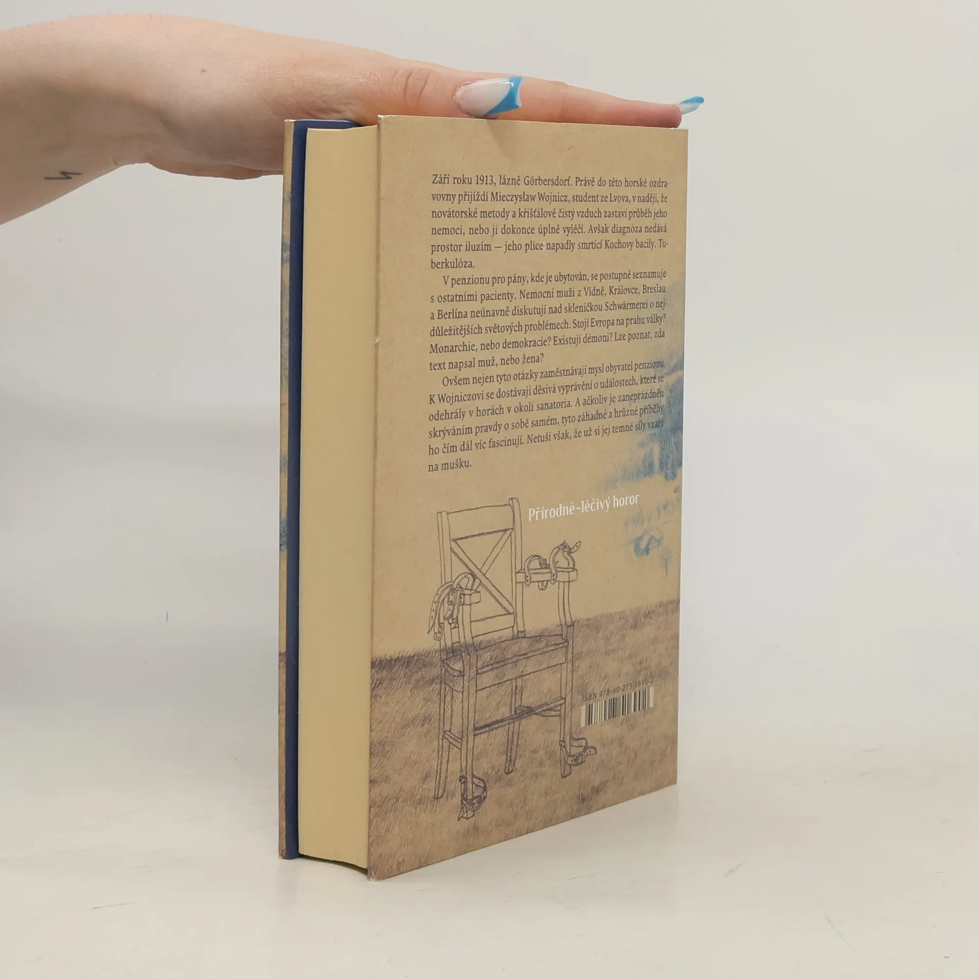 Přírodní léčivý horor. Září roku 1913, léčebné lázně Görbersdorf. Mieczysław Wojnicz, student ze Lvova, přijíždí do lázní v naději, že nejmodernější metody a křišťálově čistý vzduch zastaví průběh jeho nemoci, nebo ji možná úplně vyléčí. Avšak diagnóza nedává prostor iluzím. Mieczysław totiž trpí tuberkulózou. Ubytuje se v penzionu, kde poznává některé z pacientů. Nad likérem Schwärmerei nemocní muži z Vídně, Královce a Vratislavi neúnavně diskutují o nejpalčivějších světových problémech. Stojí Evropa na prahu války? Je lepší monarchie, nebo demokracie? Existuje zlo? Je možné určit, zda nějaký text psal muž, nebo žena? Mieczysław zároveň naslouchá šokujícím příběhům o tragických událostech, které se odehrály na vrchovině v okolí sanatoria. Ačkoli je zaneprázdněn hledáním pravdy v sobě samém, záhadné hrůzné události ho čím dál tím víc fascinují. Netuší však, že už si ho zlověstné síly vybraly za svůj další terč.