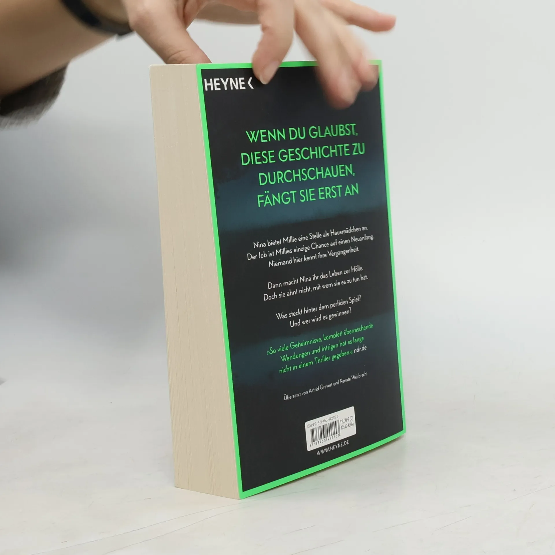 Wenn du glaubst, diese Geschichte zu durchschauen, fängt sie erst an Millie kann ihr Glück kaum fassen, als die elegante Nina ihr die Stelle als Haushaltshilfe inklusive Kost und Logis bei ihrer Familie auf Long Island anbietet. Schließlich hat sie eine Vergangenheit, von der niemand etwas wissen soll. Doch kaum ist Millie eingezogen, zeigt Nina ihr wahres Gesicht: Sie verwüstet das Haus und unterstellt ihr Dinge, die sie nicht getan hat. Ihre verwöhnte Tochter behandelt Millie ohne jeden Respekt. Nur Ninas attraktiver Mann Andrew ist nett zu ihr. Wäre da nur nicht Ninas wachsende Eifersucht. Hat sie Millie nur eingestellt, um ihr das Leben zur Hölle zu machen? Oder hat auch sie ein dunkles Geheimnis, von dem niemand etwas erfahren darf?