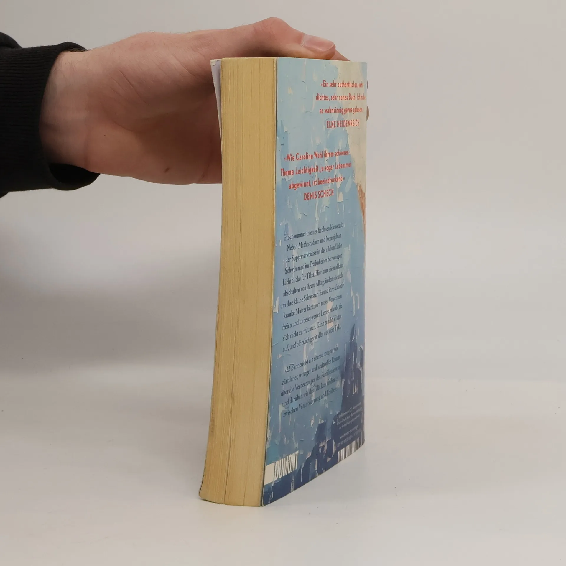 Tildas Tage sind strikt durchgetaktet: studieren, an der Supermarktkasse sitzen, sich um ihre kleine Schwester Ida kümmern und an schlechten Tagen auch um die Mutter. Zu dritt wohnen sie im traurigsten Haus der Fröhlichstraße in einer Kleinstadt, die Tilda hasst. Ihre Freunde sind längst weg, leben in Amsterdam oder Berlin, nur Tilda ist geblieben. Denn irgendjemand muss für Ida da sein, Geld verdienen, die Verantwortung tragen. Nennenswerte Väter gibt es keine, die Mutter ist alkoholabhängig. Eines Tages aber geraten die Dinge in Bewegung: Tilda bekommt eine Promotion in Berlin in Aussicht gestellt, und es blitzt eine Zukunft auf, die Freiheit verspricht. Und Viktor taucht auf, der große Bruder von Ivan, mit dem Tilda früher befreundet war. Viktor, der genau wie sie immer 22 Bahnen schwimmt. Doch als Tilda schon beinahe glaubt, es könnte alles gut werden, gerät die Situation zu Hause vollends außer Kontrolle. ›22 Bahnen‹ ist eine raue und gleichzeitig zärtliche Geschichte über die Verheerungen des Familienlebens und darüber, wie das Glück zu finden ist zwischen Verantwortung und Freiheit. »Caroline Wahl findet das Besondere im Alltäglichen und das Tröstliche im Schmerzvollen. Ein berührendes und feinsinniges Buch, mit dem man gern befreundet wäre.« BENEDICT WELLS »Ich bin durch ›22 Bahnen‹ gerauscht und hellauf begeistert. Herzerwärmend, fein, gnadenlos und richtig schön zugleich.« ALINA BRONSKY