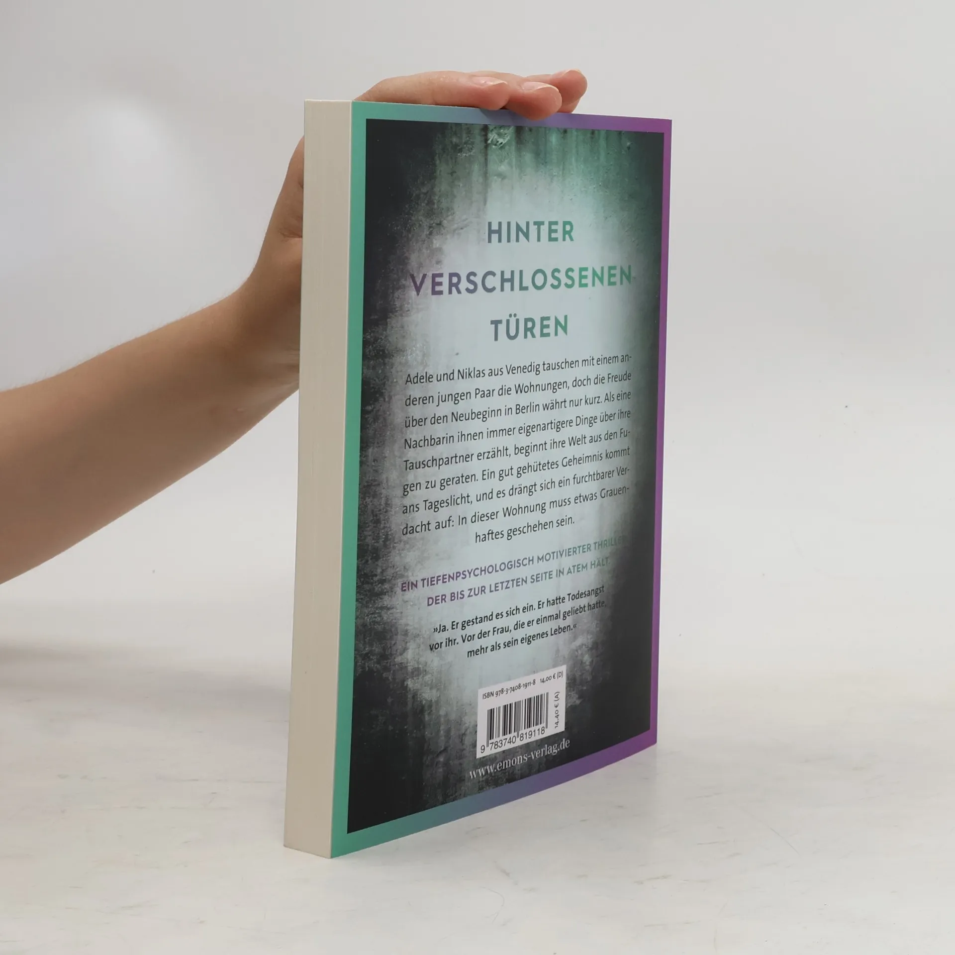 Ein tiefenpsychologisch motivierter Thriller, der bis zur letzten Seite in Atem hält. Adele und Niklas aus Venedig tauschen mit einem anderen jungen Paar die Wohnungen, doch die Freude über den Neubeginn in Berlin währt nur kurz. Als eine Nachbarin ihnen immer eigenartigere Dinge über ihre Tauschpartner erzählt, beginnt ihre Welt aus den Fugen zu geraten. Ein gut gehütetes Geheimnis kommt ans Tageslicht, und es drängt sich ein furchtbarer Verdacht auf: In dieser Wohnung muss etwas Grauenhaftes geschehen sein.