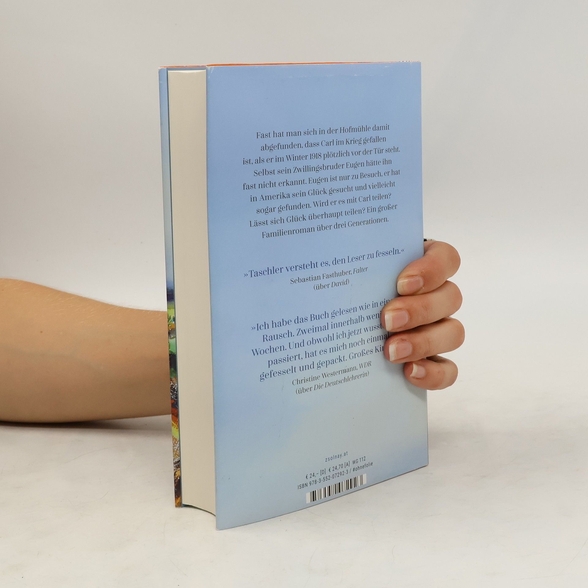 „Judith W. Taschler versteht es, den Leser zu fesseln.“ (Sebastian Fasthuber, Falter) – Nach „Die Deutschlehrerin“ ihr neuer großer Familienroman über drei Generationen Fast hat man sich in der Hofmühle damit abgefunden, dass Carl im Krieg gefallen ist, als er im Winter 1918 plötzlich vor der Tür steht. Selbst sein Zwillingsbruder Eugen hätte ihn fast nicht erkannt. Eugen ist nur zu Besuch, er hat in Amerika sein Glück gesucht und vielleicht sogar gefunden. Wird er es mit Carl teilen? Lässt sich Glück überhaupt teilen? Judith W. Taschler hat einen großen Familienroman geschrieben. Über drei Generationen verfolgen wir gebannt das Schicksal der Familie Brugger, deren Leben in der Mühle vor allem die Frauen prägen. Das einfühlsame Porträt eines Dorfes, ein Buch über Abschiede und die Liebe unter schwierigen Vorzeichen, über den Krieg und die unstillbare Sehnsucht nach vergangenem Glück.