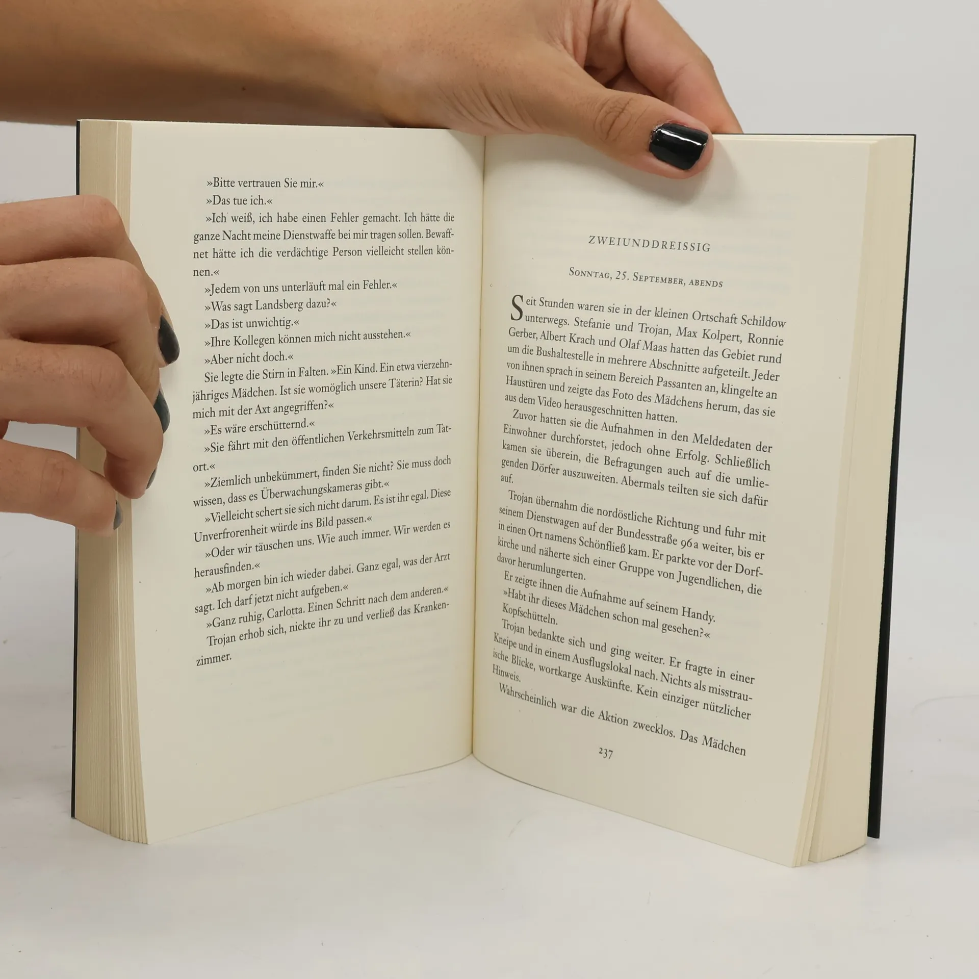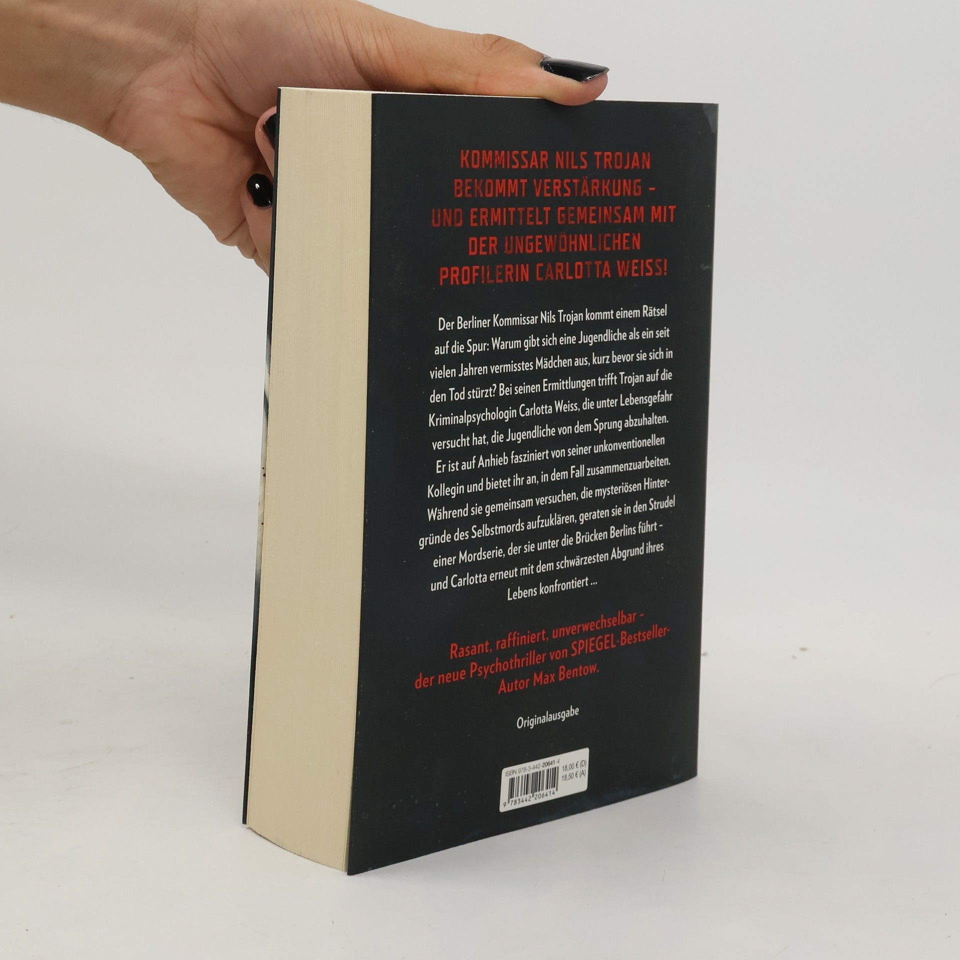 Der Berliner Kommissar Nils Trojan kommt einem Rätsel auf die Spur: Warum gibt sich eine Jugendliche fälschlicherweise als ein seit vielen Jahren vermisstes Mädchen aus, kurz bevor sie in den Tod springt? Bei seinen Ermittlungen trifft er auf die Kriminalpsychologin Carlotta Weiss, die unter Lebensgefahr versucht hat, die Jugendliche von dem Sprung abzuhalten. Trojan ist auf Anhieb fasziniert von seiner unkonventionellen Kollegin und bietet ihr an, in dem Fall zusammenzuarbeiten. Während sie gemeinsam versuchen, die mysteriösen Hintergründe des Selbstmords aufzuklären, geraten sie in den Strudel einer Mordserie, der sie unter die Brücken Berlins führt – und Carlotta erneut mit dem schwärzesten Abgrund ihres Lebens konfrontiert …