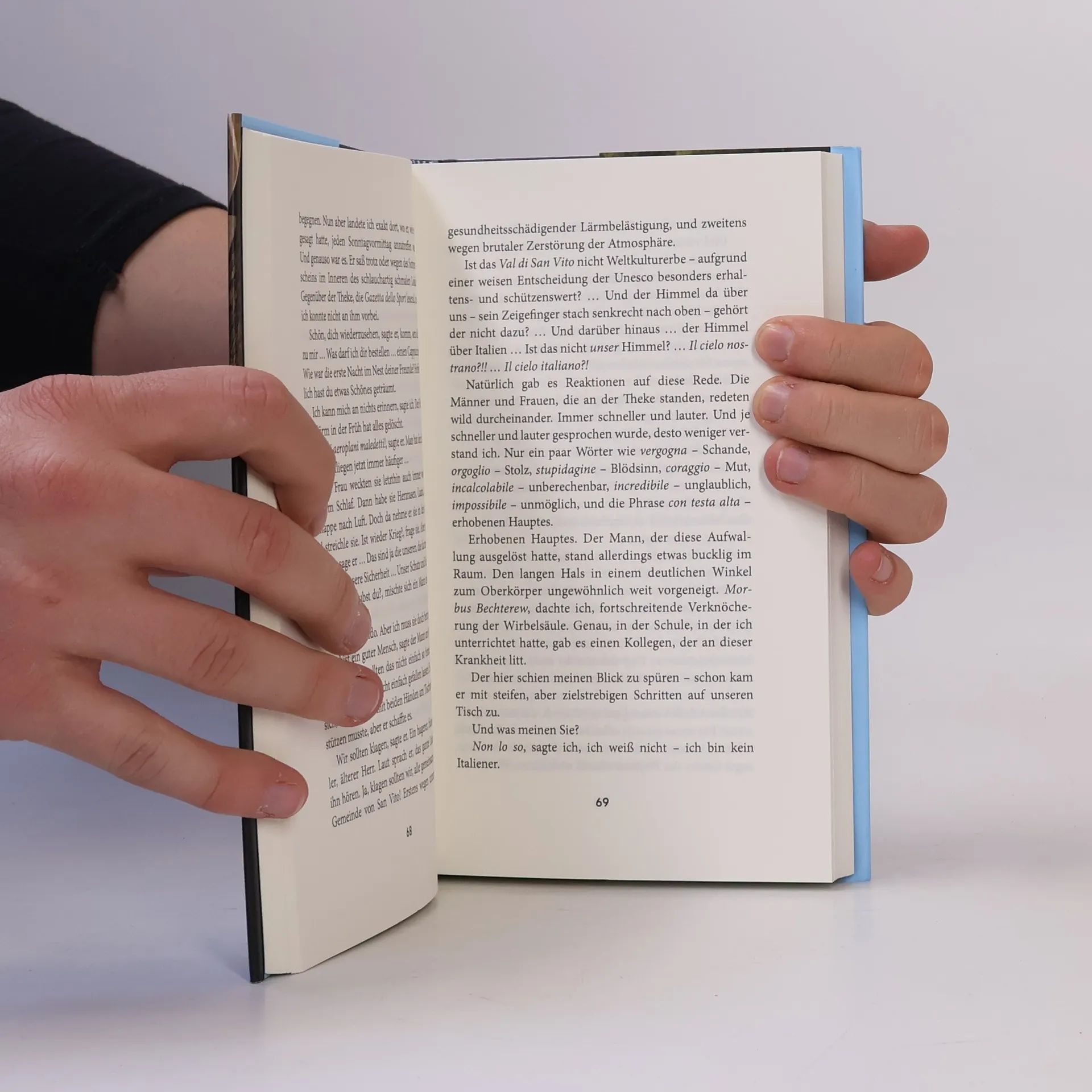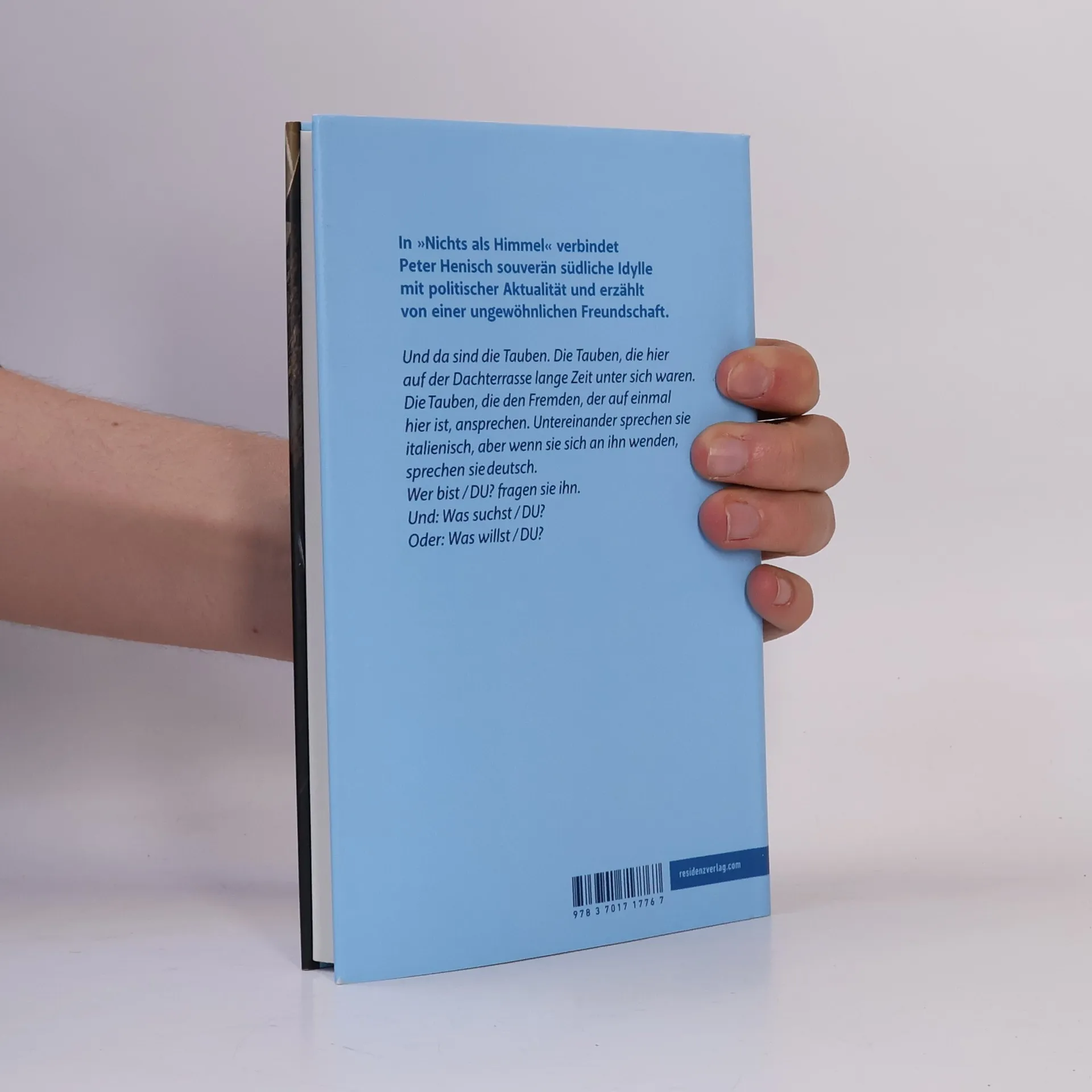 Mit „Nichts als Himmel“ kehrt Peter Henisch an seinen Sehnsuchtsort San Vito zurück, in die versteckte Wohnung unter den Dächern der italienischen Kleinstadt. Für den Musiker Paul Spielmann, der vor Pandemie und Lebenskrise aus Wien flüchtet, wird sie zum Refugium. Abends auf seiner Terrasse kommt Paul zur Ruhe, er beginnt Wolkenmetamorphosen und Vogelschwarmflüge zu fotografieren, bis plötzlich ein Mann über die Dächer kommt, einer der Clandestini, der Flüchtlinge aus Afrika, gegen die die rechte Hetze in Italien immer lauter wird. „Gimme shelter“, fleht der Mann, und Paul nimmt ihn auf und hilft ihm. Und schon wird er hineingezogen in einen Strudel aus zwiespältigen Gefühlen, politischer Stimmungsmache – und in die wachsende Freundschaft mit Abdallah …