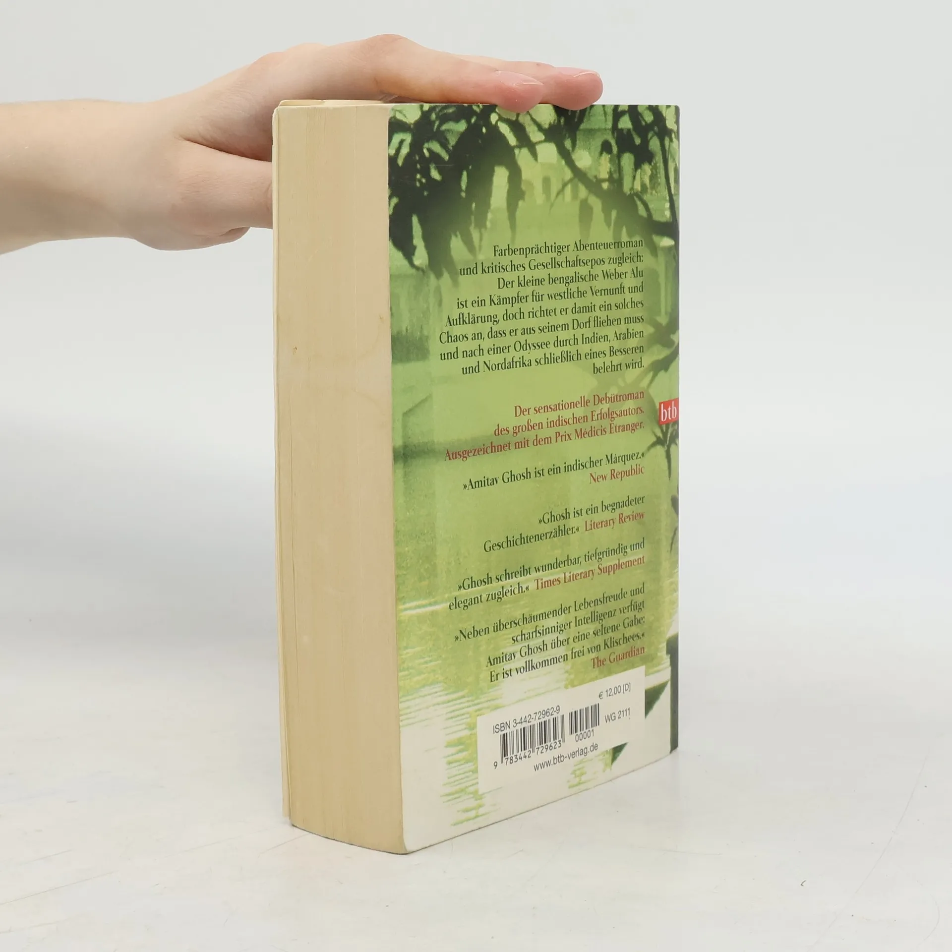 Dass der heute in New York lebende indische Schriftsteller Amitav Ghosh „ein begnadeter Geschichtenerzähler“ (Literary Review) ist, hat er zuletzt mit seinem internationalen Bestseller ‚Der Glaspalast' unter Beweis gestellt. Aber schon sein Debüt, die märchenhafte Geschichte um den indischen Weber Alu, seine füllige Geliebte Zindi sowie den melancholischen Geheimagenten und Vogelliebhaber Jyoti Das, enthält alle Ingredienzen seiner Fabulierkunst, für die er mittlerweile vielfach preisgekrönt ist. Ghosh schildert in seinem farbenprächtigen Abenteuerroman die Odyssee des indischen Webers Alu quer durch Indien, Arabien und Afrika - eine tragikomische Traumreise durch mythische Kulturen im Zwiegespräch mit der westlichen Zivilisation. „Manche Schriftsteller würden mit dem Material, das Amitav Ghosh in seinem ersten Roman verarbeitet hat, ein Lebenswerk bestreiten.“ The Guardian
