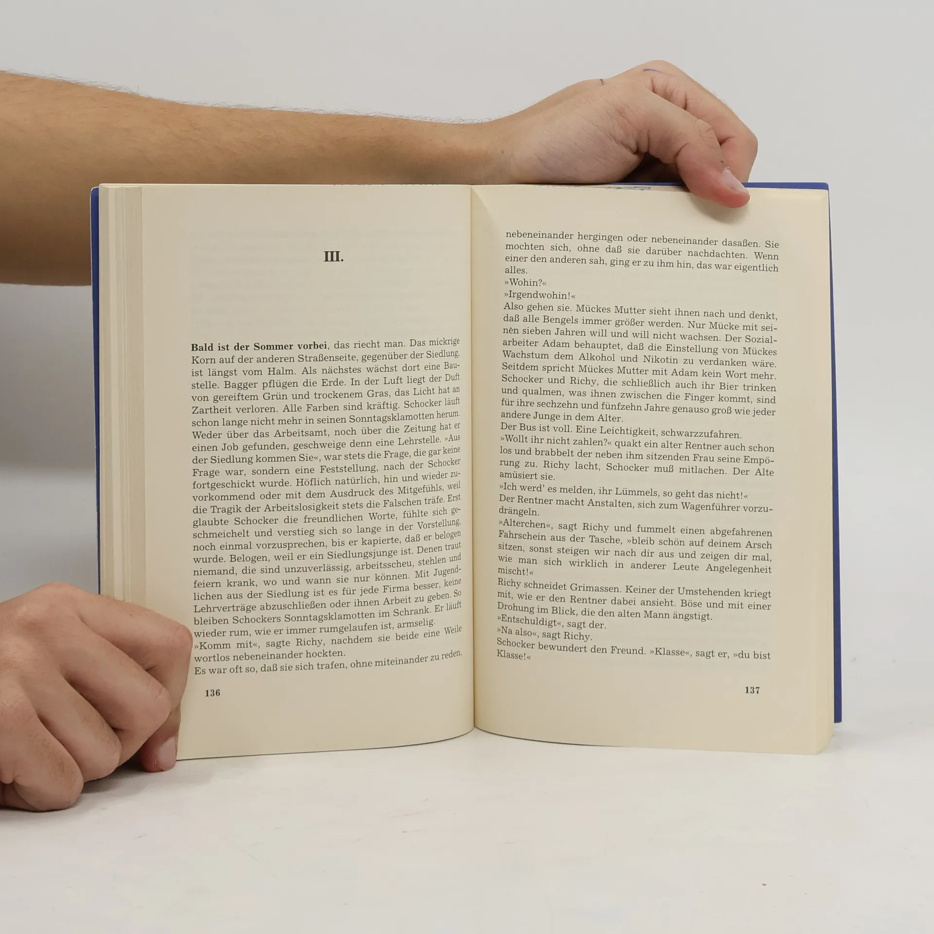 Was aus der Siedlung kommt, sagen die Leute, kann ja nichts Gutes sein, deshalb möchte jeder abhauen, die große Flatter machen. Auch Schocker und Richy, die beiden Jungen aus den Baracken der Obdachlosensiedlung, wollen weg. Doch alles geht schief. Am Ende steht das Gefängnis und Richys trotzige Wut: »Eines Tages werde ich alle fertigmachen.« Nur für Schocker zeigt sich ein Funken von Hoffnung.