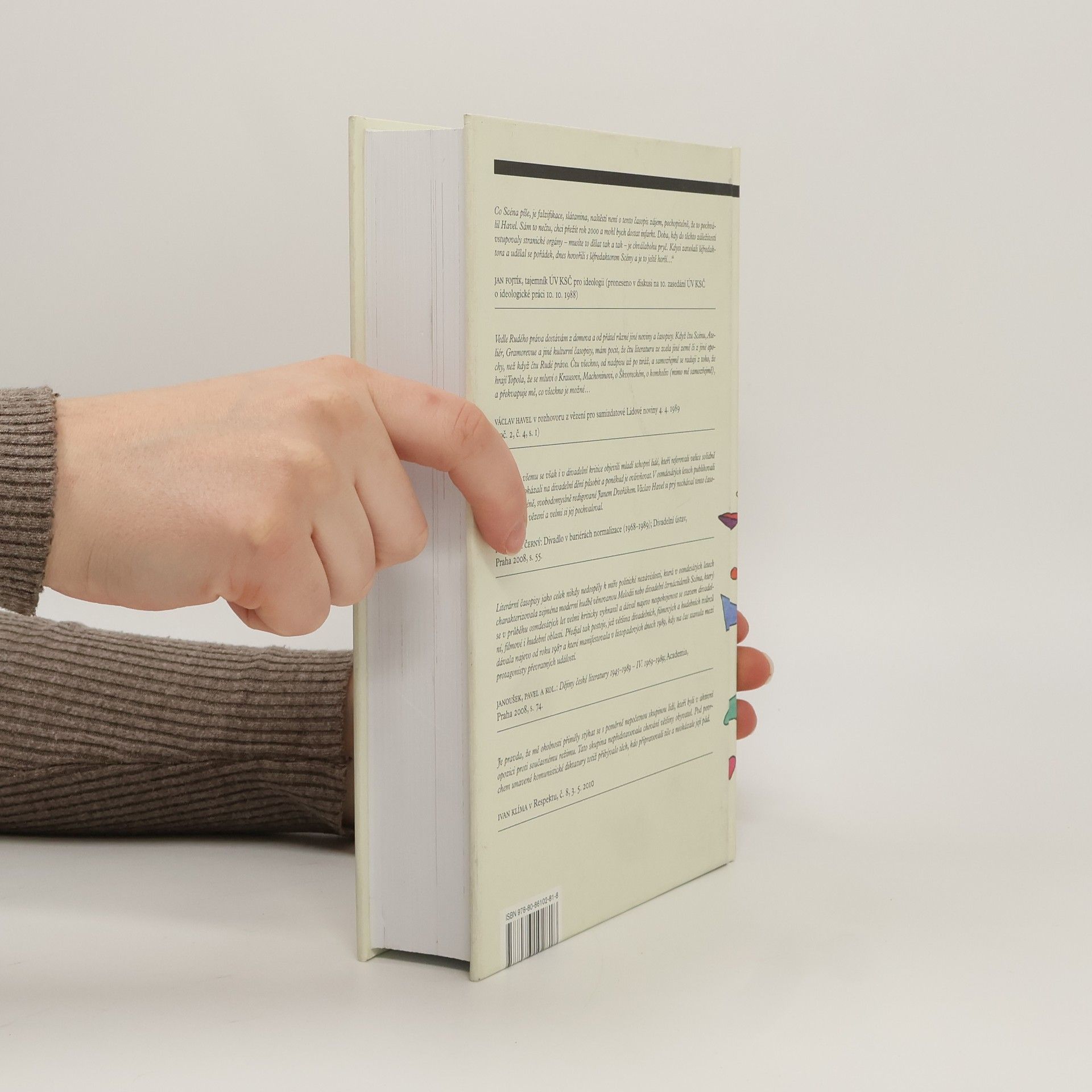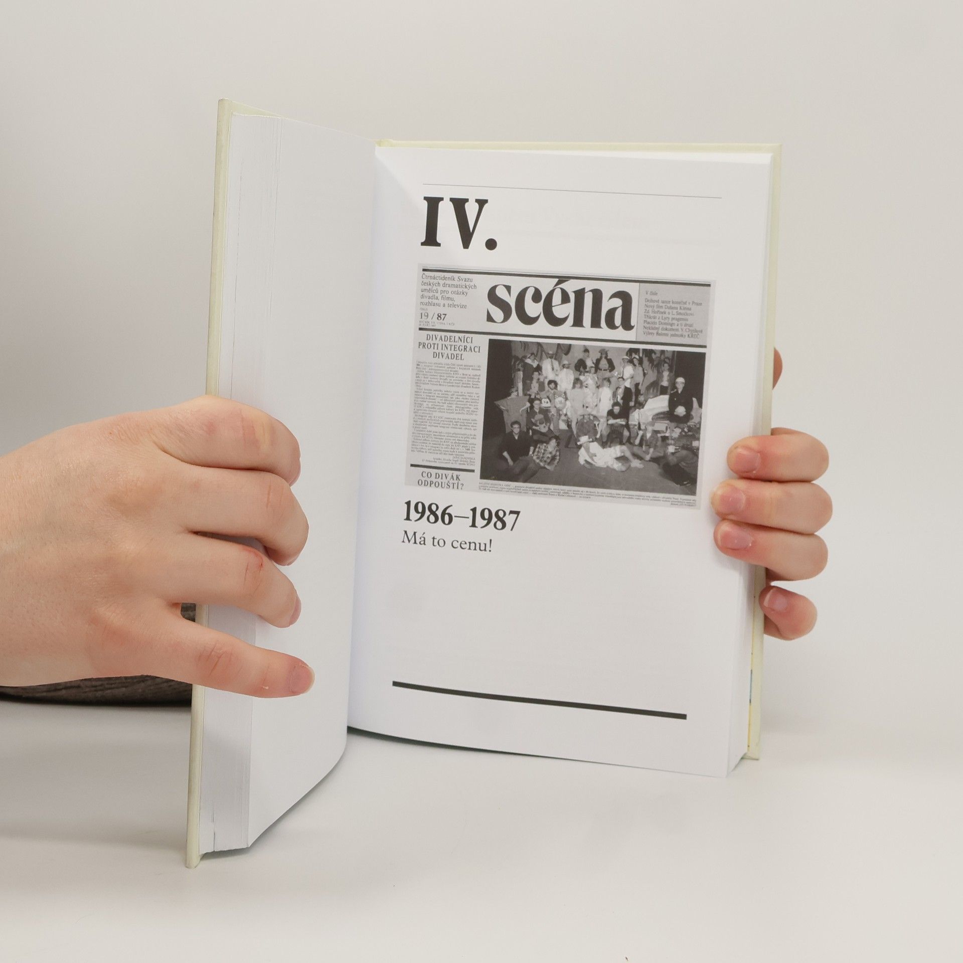 Příspěvek k pochopení skutečnosti, proč v listopadu 1989 byli nejpřipravenější a nejodvážnější profesní skupinou divadelníci, kteří okamžitě dali k dispozici nejen sebe (a osud svých blízkých), ale i svá pracoviště: divadla, včetně divadelní školy. Divadelní a další dramatičtí umělci totiž měli do listopadového mezníku – což dosud unikalo pozornosti – své profesní periodikum, jímž se napájeli: byl jím čtrnáctideník Scéna, vycházející tehdy v nákladu 10 000 výtisků. Ke Scéně se z vězení pro samizdatové Lidové noviny vyjádřil i Václav Havel: „Když čtu Scénu… mám pocit, že čtu literaturu ze zcela jiné země či z jiné epochy, než když čtu Rudé právo… překvapuje mě, co všechno je možné…“ Antologii autorů Scény, našich nejpřednějších divadelních a filmových kritiků, sestavil Jan Dvořák ve spolupráci s Milošem Petanou. Stati J. Folla, Z. Hořínka, V. Justa, J. Koláře, V. Königsmarka, K. Krále, P. Melounka, B. Nusky, P. Oslzlého, V. Ptáčkové, J. Rejžka, M. Reslové, O. Roubínka, E. Šormové, P. Taussiga a mnoha dalších doplňují i osobité názory zpovídaných K. Lhotáka, B. Hrabala, V. Jiránka, J. Kačera, O. Krejči, A. Máši, P. Nárožného, B. Polívky, Z. Svěráka, V. Šaška, J. Vodňanského ad., jakož i odlehčující příspěvky Kaisera-Lábuse, Buriana-Dědečka, Lumíra Tučka apod.