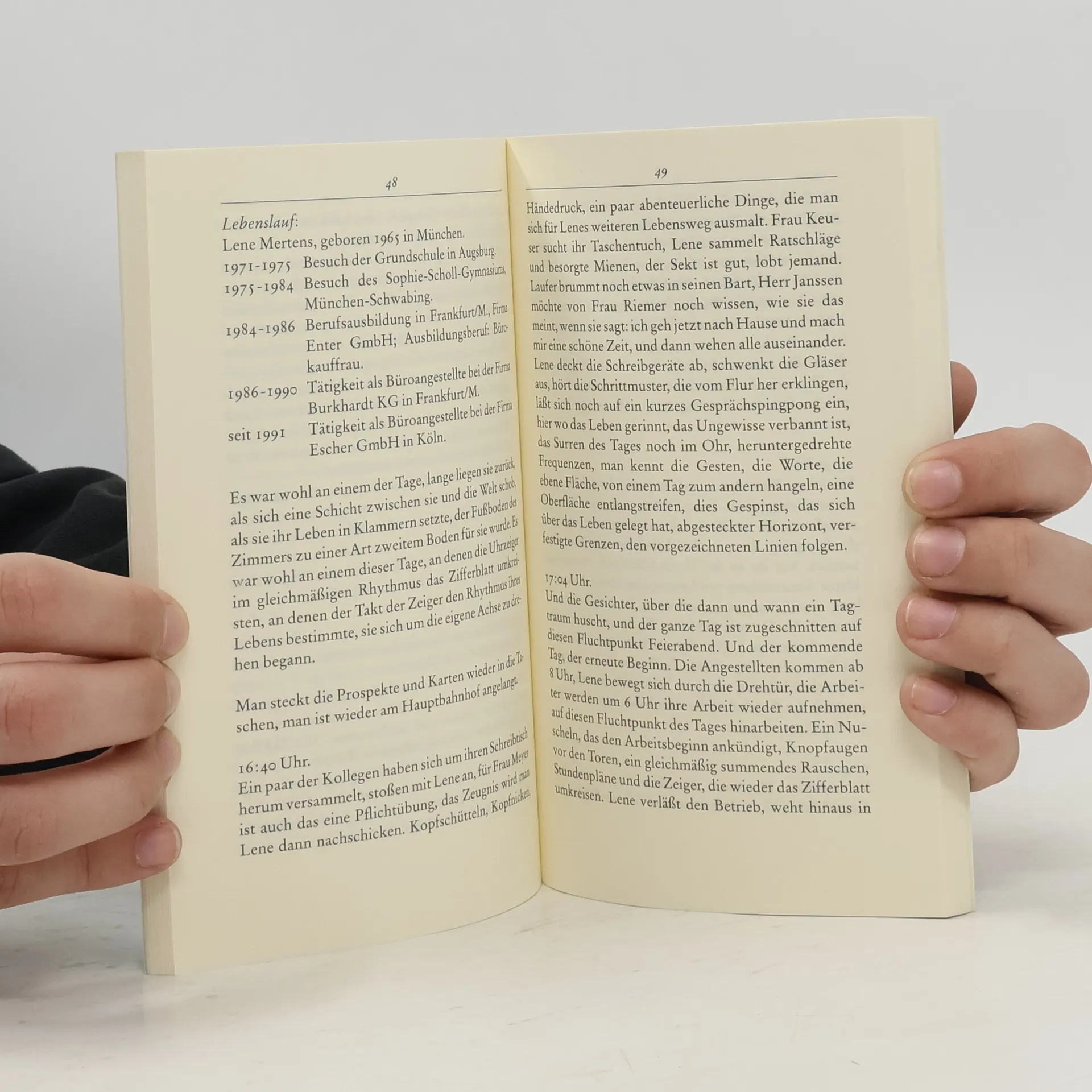 »Orientierungspunkt Greenwich: Der Nullmeridian geht durch Greenwich, von dort zählt man 180 Grad nach Osten und 180 Grad nach Westen.« Ute-Christine Krupp leiht als »Augen- und Ohrenzeuge« ihre Stimme einer jungen Frau namens Lene Mertens. Die ist Bürokauffrau, in der Gegenwartsliteratur gewöhnlich keine tragende Rolle. Wir lesen ein poetisches 24-Stunden-Protokoll - einer in die helle und die dunkle Seite gespaltenen Zeit. In einer Sprache, in der das Klappern der Tastatur und der Stundentakt nachhallen, beschreibt Ute-Christine Krupp einen ritualisierten und beispielhaften Alltagszyklus, in dem das Leben nur noch tabellarisch vorkommt. Aber - Lene Mertens kündigt. Auf der Suche nach einer anderen als der mechanischen Zeit. Stilistisch glanzvoll und streng komponiert, gelingt es Ute-Christine Krupp, unsere Wahrnehmung von Zeit sprachlich abzubilden.