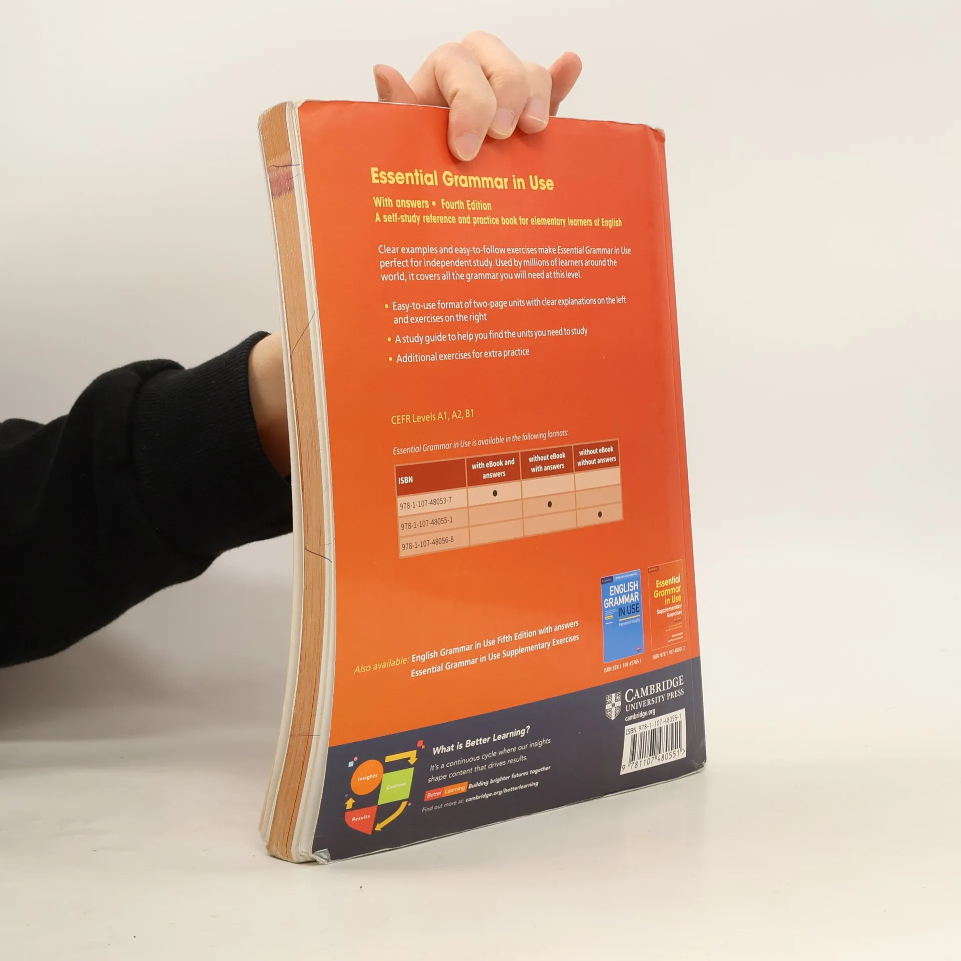 The world's best-selling grammar series for learners of English. Essential Grammar in Use is a self-study reference and practice book for elementary-level learners (A1-B1), used by millions of people around the world. With clear examples, easy-to-follow exercises and answer key, the Fourth edition is perfect for independent study, covering all the areas of grammar that you will need at this level. The book has an easy-to-use format of two-page units with clear explanations of grammar points on the left-hand page, and practice exercises on the right. It also includes plenty of additional exercises and a Study Guide to help you find the grammar units you need to study.