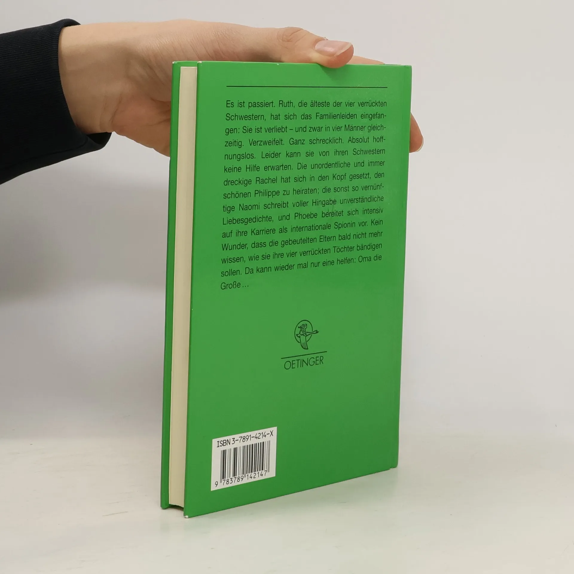 Es ist passiert. Ruth, die älteste der vier verrückten Schwestern, hat sich das Familienleiden eingefangen: Sie ist verliebt - und zwar in vier Männer gleichzeitig. Verzweifelt. Ganz schrecklich. Absolut hoffnungslos. Leider kann sie von ihren Schwestern keine Hilfe erwarten. Die unordentliche und immer dreckige Rachel hat sich in den Kopf gesetzt, den schönen Philippe zu heiraten; die sonst so vernünftige Naomi schreibt voller Hingabe unverständliche Liebesgedichte; und Phoebe bereitet sich intensiv auf ihre Karriere als internationale Spionin vor. Kein Wunder, dass die gebeutelten Eltern bald nicht mehr wissen, wie sie ihre vier verrückten Töchter bändigen sollen. Da kann wieder mal nur eine helfen: Oma die Große. Sie kennt sich nämlich bestens aus mit den Ursachen und Wirkungen der Familienkrankheit und schlägt zur Gesundung einen Erholungsurlaub in Frankreich vor.