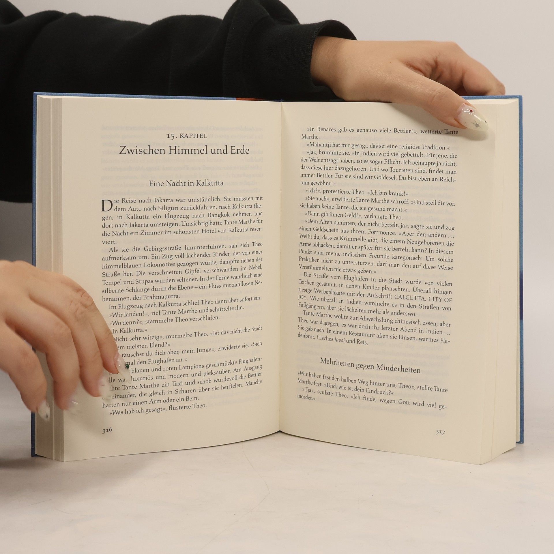 Theo ist vierzehn Jahre alt. Seine größte Leidenschaft sind Bücher über alte Mythologien und Computerspiele. Als Theo erfährt, dass er schwer krank ist, nimmt ihn seine Tante Marthe mit auf eine große Reise. Er soll die Weltreligionen und ihre heiligen Stätten kennen lernen: Jerusalem, Ägypten, Rom, Istanbul, Moskau – Theo ist fasziniert und beeindruckt. Und überall trifft er auf kundige Religionsführer, die ihm die verschiedensten Glaubensrichtungen – vom Judentum über den Islam bis hin zum Buddhismus anschaulich nahe bringen. »Abenteuerroman und Enzyklpopädie, Entwicklungsroman und ein Stück farbenprächtige Reiseliteratur …amüsant, spannend und leicht zu lesen.« FOCUS