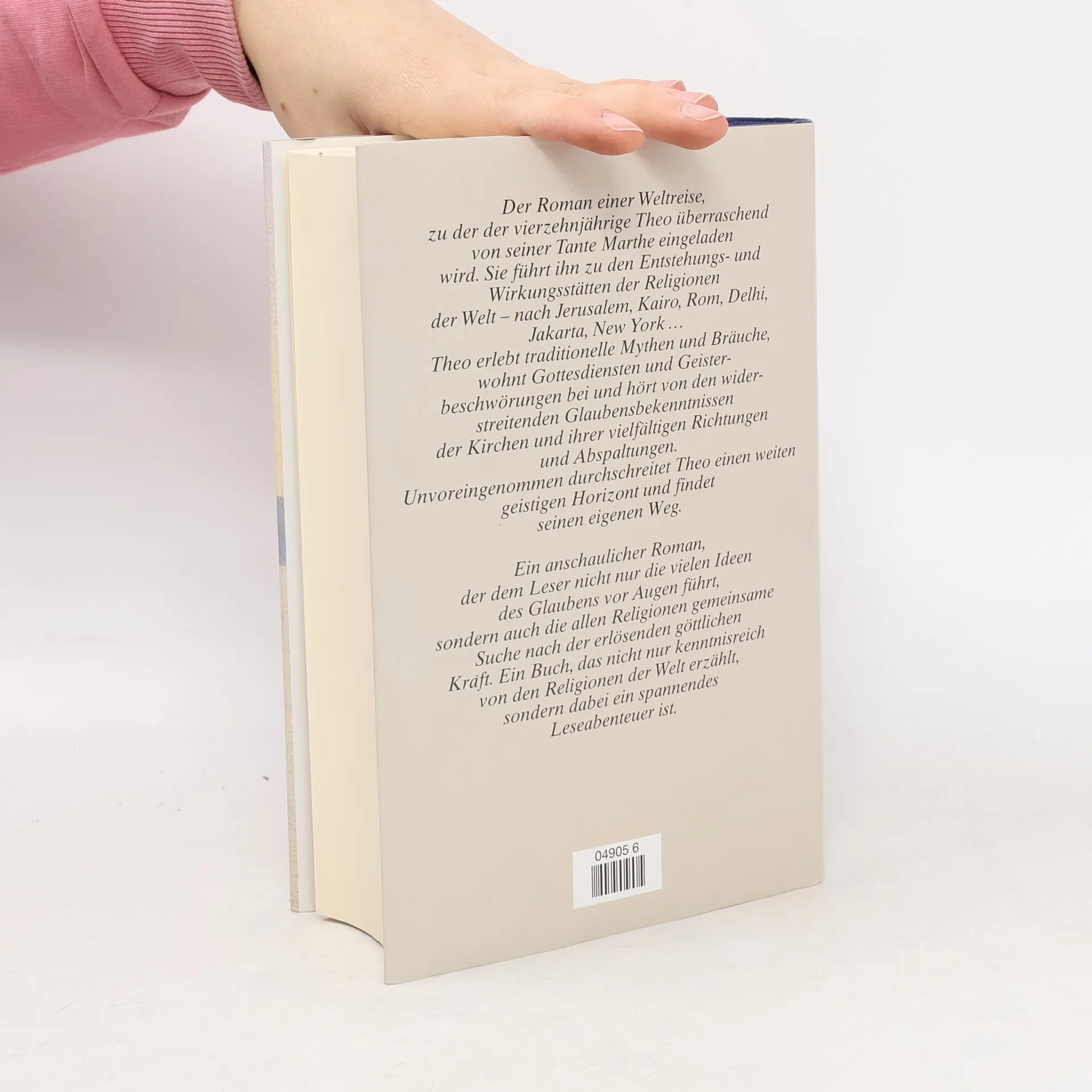 Theo ist vierzehn Jahre alt. Seine größte Leidenschaft sind Bücher über alte Mythologien und Computerspiele. Als Theo erfährt, dass er schwer krank ist, nimmt ihn seine Tante Marthe mit auf eine große Reise. Er soll die Weltreligionen und ihre heiligen Stätten kennen lernen: Jerusalem, Ägypten, Rom, Istanbul, Moskau – Theo ist fasziniert und beeindruckt. Und überall trifft er auf kundige Religionsführer, die ihm die verschiedensten Glaubensrichtungen – vom Judentum über den Islam bis hin zum Buddhismus anschaulich nahe bringen. »Abenteuerroman und Enzyklpopädie, Entwicklungsroman und ein Stück farbenprächtige Reiseliteratur …amüsant, spannend und leicht zu lesen.« FOCUS