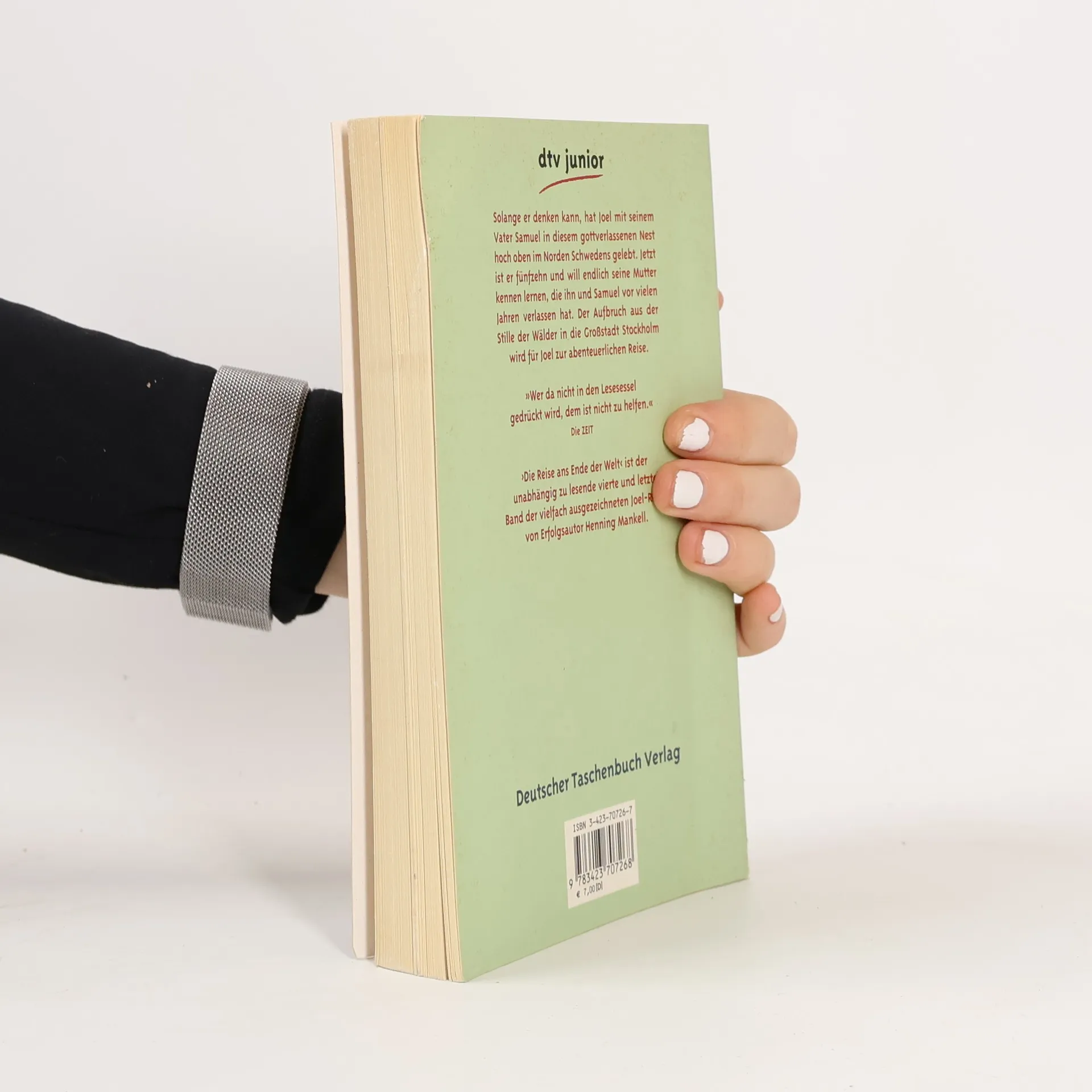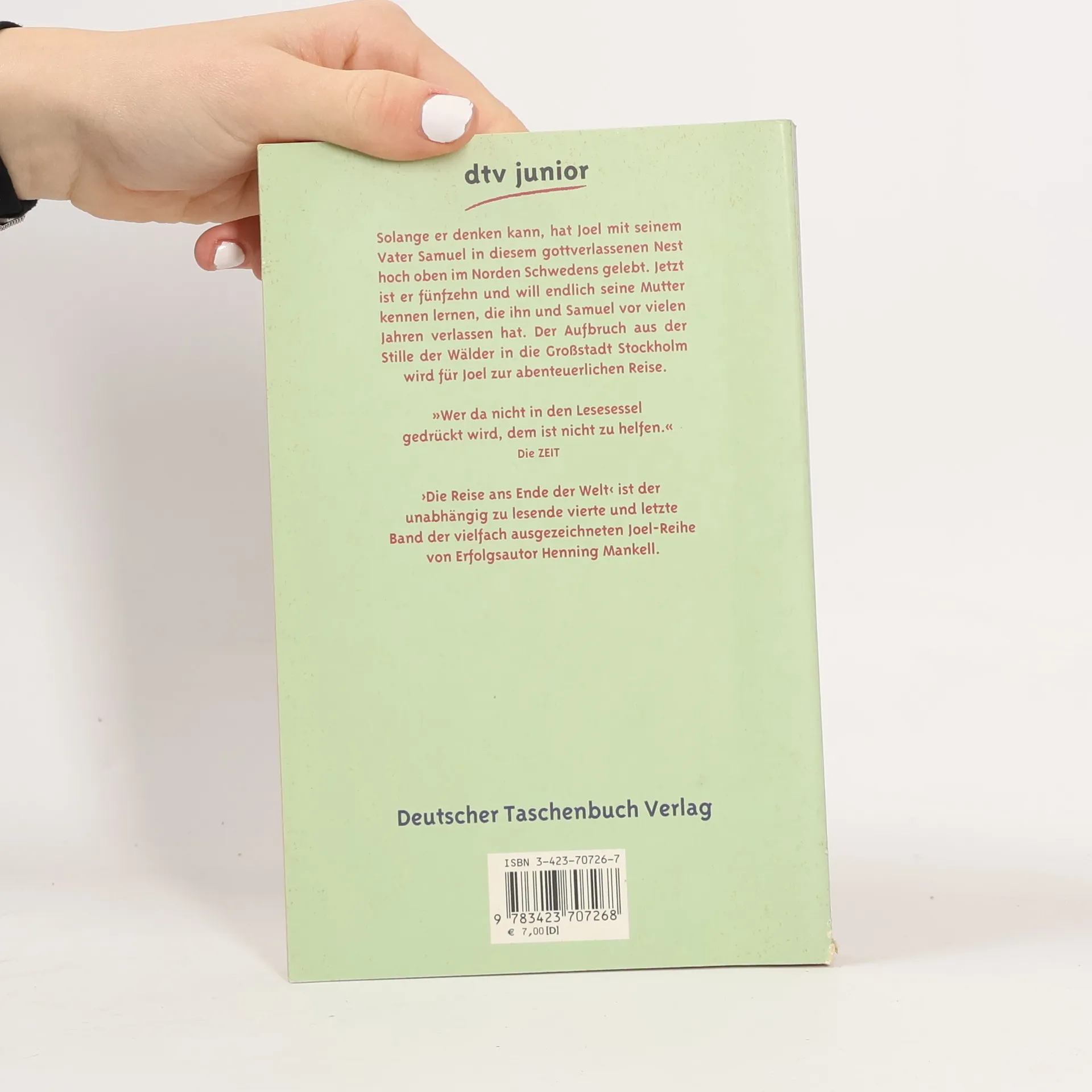 Solange er denken kann, hat Joel mit seinem Vater Samuel, einem wortkargen Holzfäller, in diesem gottverlassenen Nest hoch oben im Norden Schwedens gelebt. Jetzt ist er fünfzehn und will endlich seine Mutter kennen lernen, die ihn und Samuel verlassen hat, als er noch ganz klein war. Früher, wenn Joel nach seiner Mutter gefragt hat, hat Samuel immer nur den Kopf geschüttelt und gesagt, er wüsste nicht, wo sie sei. Doch plötzlich gibt es einen Brief und mit ihm eine Adresse von seiner Mutter Jenny. Joel und sein Vater machen sich auf, sie in Stockholm zu besuchen. Der Aufbruch aus der Stille der Wälder in den Lärm und die Hektik der Großstadt wird für Joel zur inneren Reise in ein neues, selbstbestimmtes Leben. Warum ist Jenny damals einfach fortgegangen? Was geschieht, wenn er sie nach all den Jahren endlich wieder trifft? Und was wird aus ihm, jetzt, wo er die Schule beendet hat? Wird Samuel wieder zu See fahren und ihn mitnehmen? Als sein Vater das Zusammentreffen mit Jenny hinauszögert, will Joel nicht länger warten. Wie ein Detektiv sucht und findet er seine Mutter und kann ihr endlich die vielen Fragen stellen, die ihn schon so lange beschäftigen ... ›Die Reise ans Ende der Welt‹ ist der unabhängig zu lesende vierte und letzte Band der vielfach ausgezeichneten Joel-Reihe von Erfolgsautor Henning Mankell.