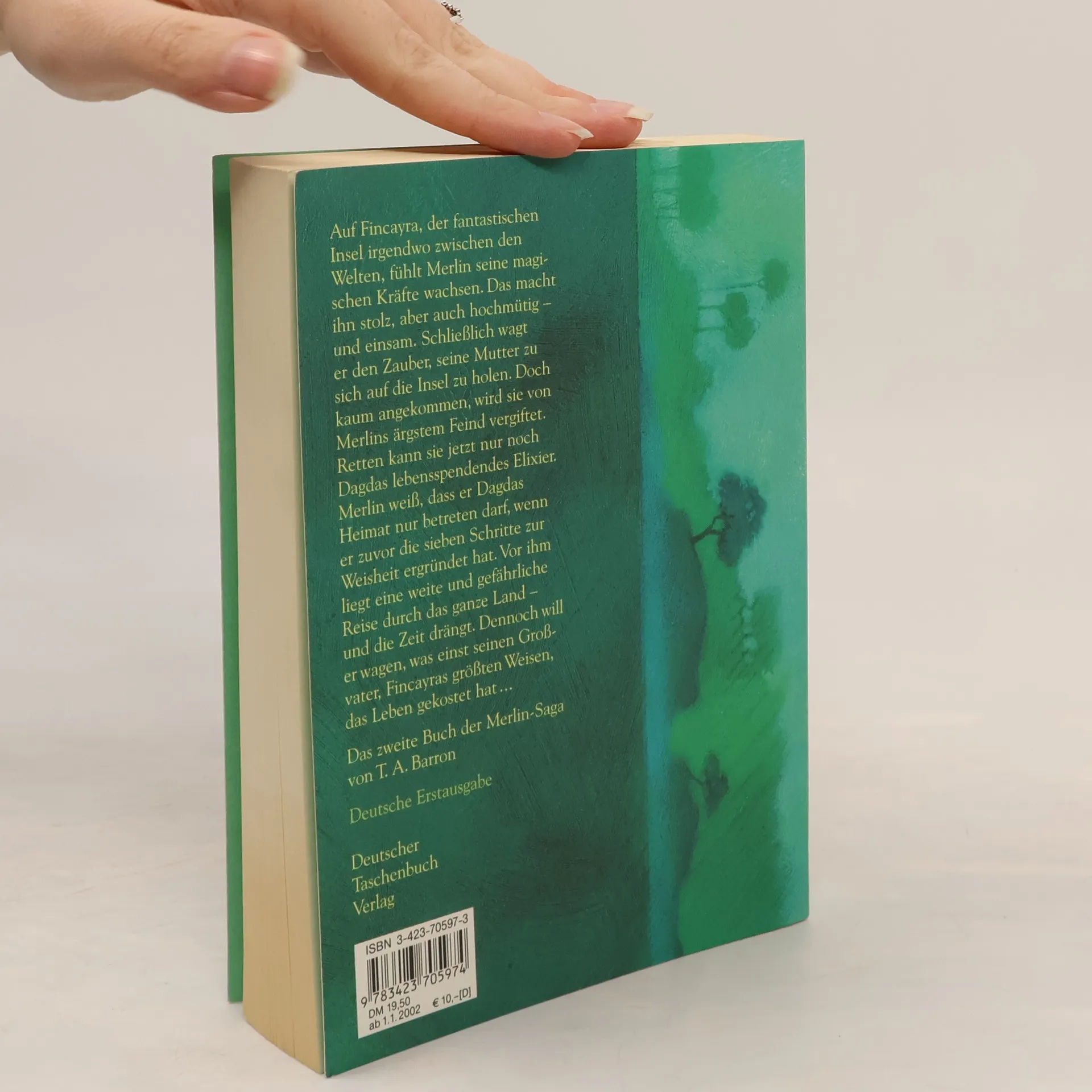 Auf Fincayra, der fantastischen Insel irgendwo zwischen den Welten, fühlt Merlin seine magischen Kräfte wachsen. Das macht ihn stolz, aber auch hochmütig – und einsam. Schließlich wagt er den Zauber, seine Mutter zu sich auf die Insel zu holen. Doch kaum angekommen, wird sie von Merlins ärgstem Feind vergiftet. Retten kann sie jetzt nur noch Dagdas lebensspendendes Elexier. Merlin weiß, dass er Dagdas Heimat nur betreten darf, wenn er zuvor die sieben Schritte zur Weisheit ergründet hat. Vor ihm liegt eine weite und gefährliche Reise durch das ganze Land - und die Zeit drängt. Dennoch will er wagen, was einst seinem Großvater, Fincayras größtem Weisen, das Leben gekostet hatte... Das 2. Buch der Merlin-Saga von T. A. Barron Deutsche Erstausgabe Die Merlin-Welt des Autors T. A. Barron könnt ihr übrigens auch auf dessen homepage www. tabarron. com kennen lernen.