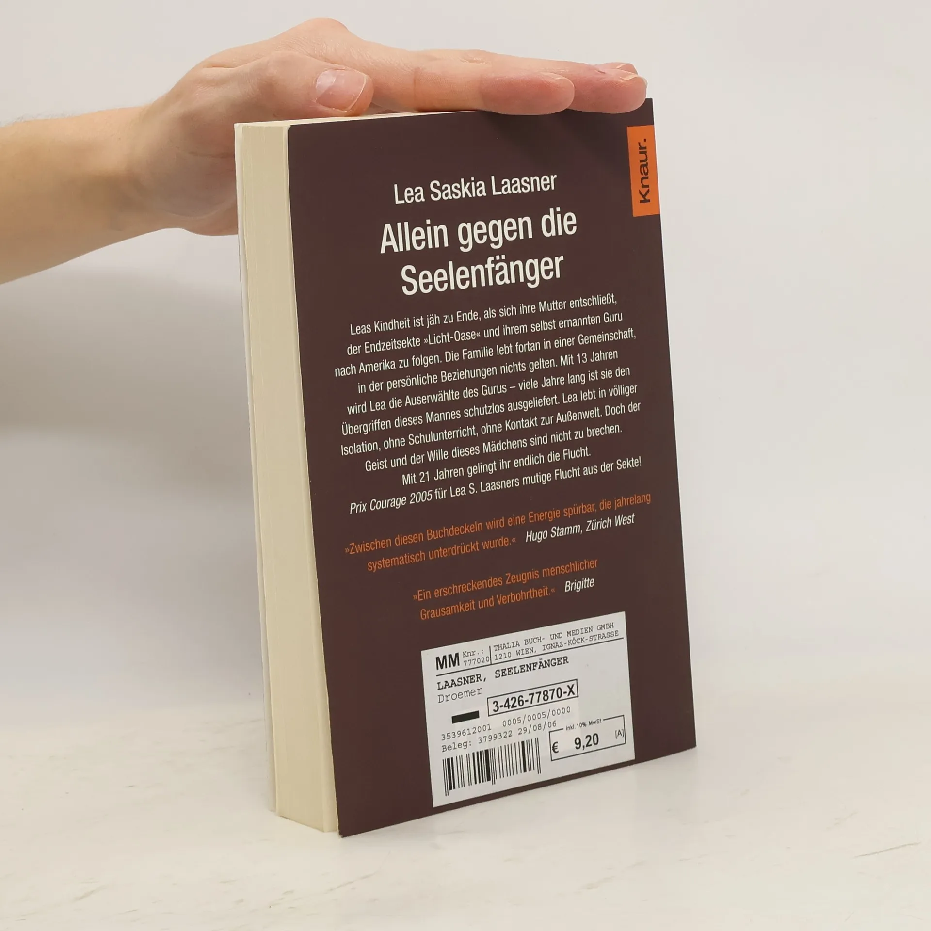 Leas Kindheit ist jäh zu Ende, als sich ihre Mutter entschließt, der Endzeitsekte ›Licht-Oase‹ und ihrem selbst ernannten Guru nach Amerika zu folgen. Die Familie lebt fortan in einer Gemeinschaft, in der persönliche Beziehungen nichts gelten. Mit dreizehn Jahren wird Lea die Auserwählte des Gurus – fast zehn Jahre lang ist sie den Übergriffen dieses Mannes schutzlos ausgeliefert. Lea lebt in völliger Isolation, ohne Schulunterricht, ohne Kontakt zur Außenwelt. Doch der Geist und der Wille dieses Mädchens sind nicht zu brechen. Mit 21 Jahren gelingt ihr endlich die Flucht.