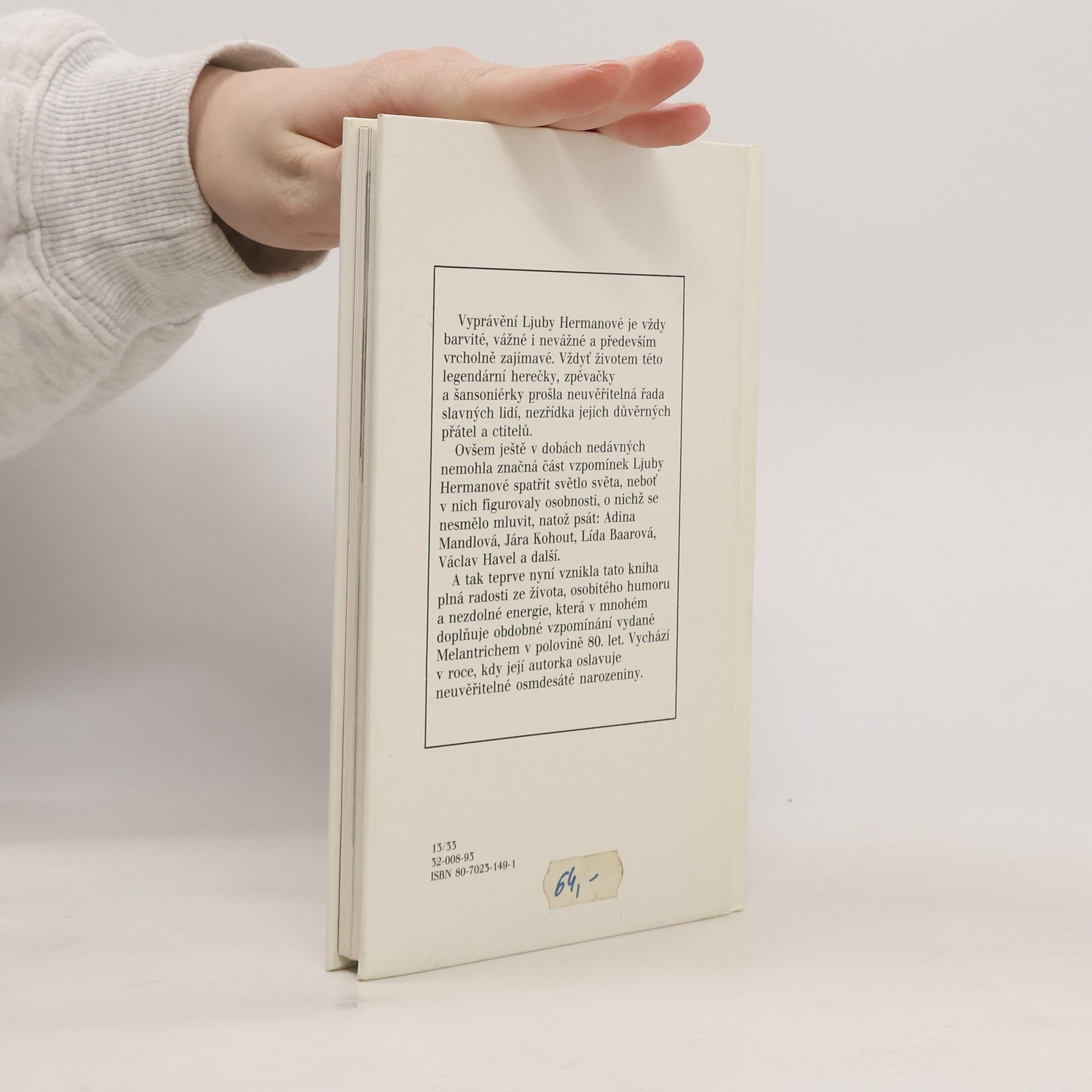 Uspořádal Ondřej Suchý Vyprávění Ljuby Hermanové je barvité, vážné i nevážné a především vrcholně zajímavé. Vždyť životem této legendární herečky, zpěvačky a šansoniérky prošla neuvěřitelná řada slavných lidí, nezřídka jejích důvěrných přátel a ctitelů. 160 stran + 40 stran obr. příloh. 1. vydání.... celý text