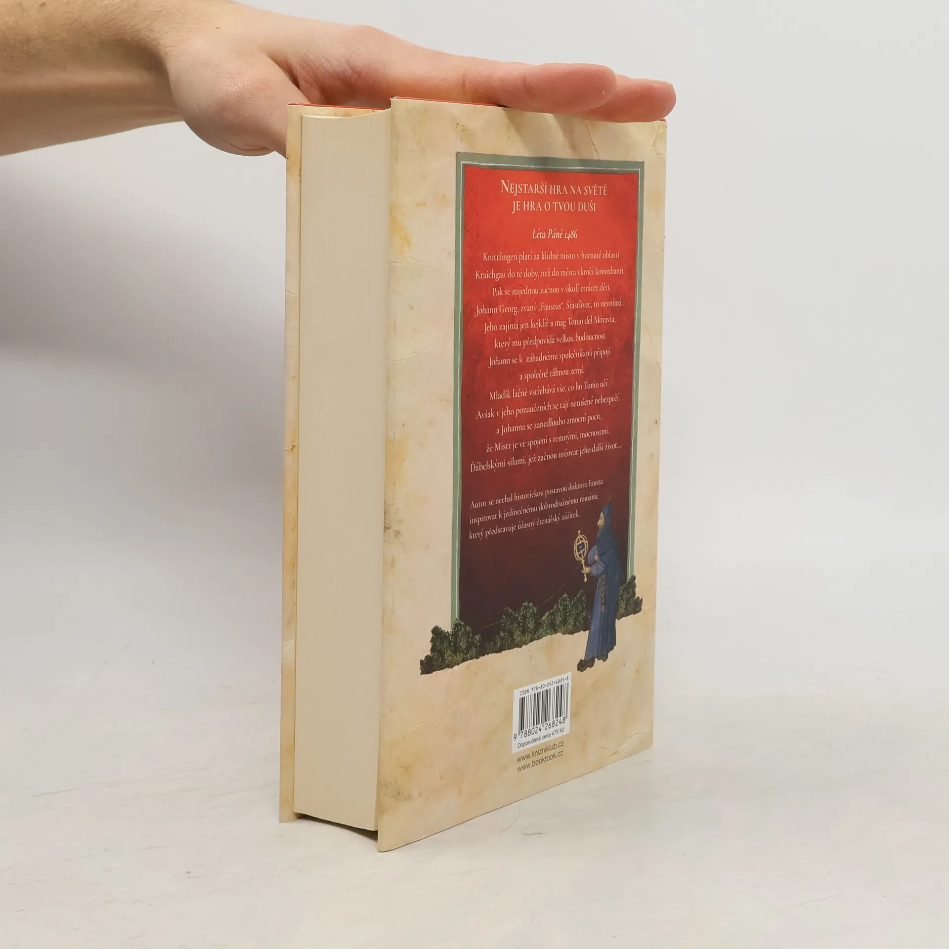 1486: Knittlingen platí za klidné místo v hornaté oblasti Kraichgau do té doby, než do města vkročí komedianti. Najednou se v okolí začnou ztrácet děti. Johann Georg, zvaný „Faustus“, Šťastlivec, to nevnímá. Jeho zajímá jen kejklíř a mág Tonio del Moravia, který mu předpovídá velkou budoucnost. Johann se připojí k záhadnému společníkovi a společně táhnou zemí. Mladík lačně vstřebává vše, co ho Tonio učí. Avšak v Toniových ponaučeních se tají netušené nebezpečí a Johanna se brzy zmocní pocit, že jeho Mistr je ve spojení s temnými mocnostmi. Silami, které začnou určovat jeho další život… Oliver Pötzsch, autor bestsellerové série o Katově dceři, se nechal historickou postavou doktora Fausta inspirovat k jedinečnému dobrodružnému románu, který představuje úžasný čtenářský zážitek.